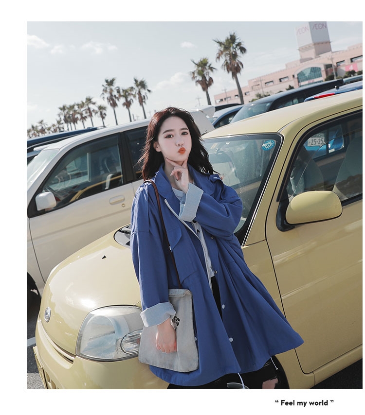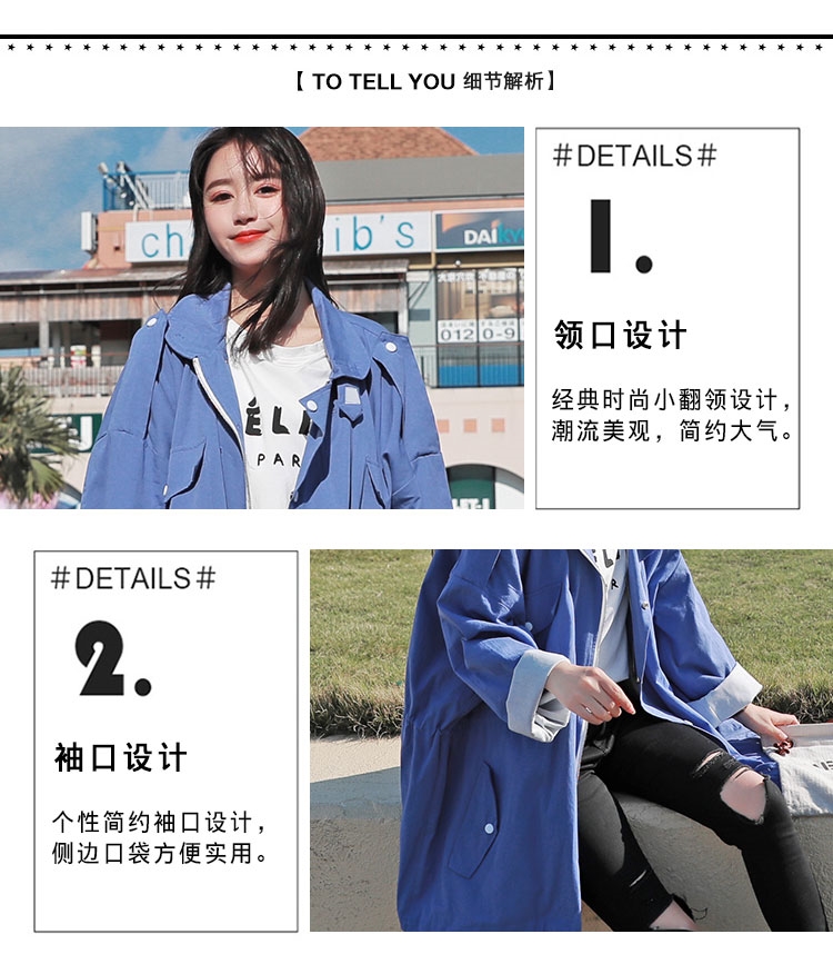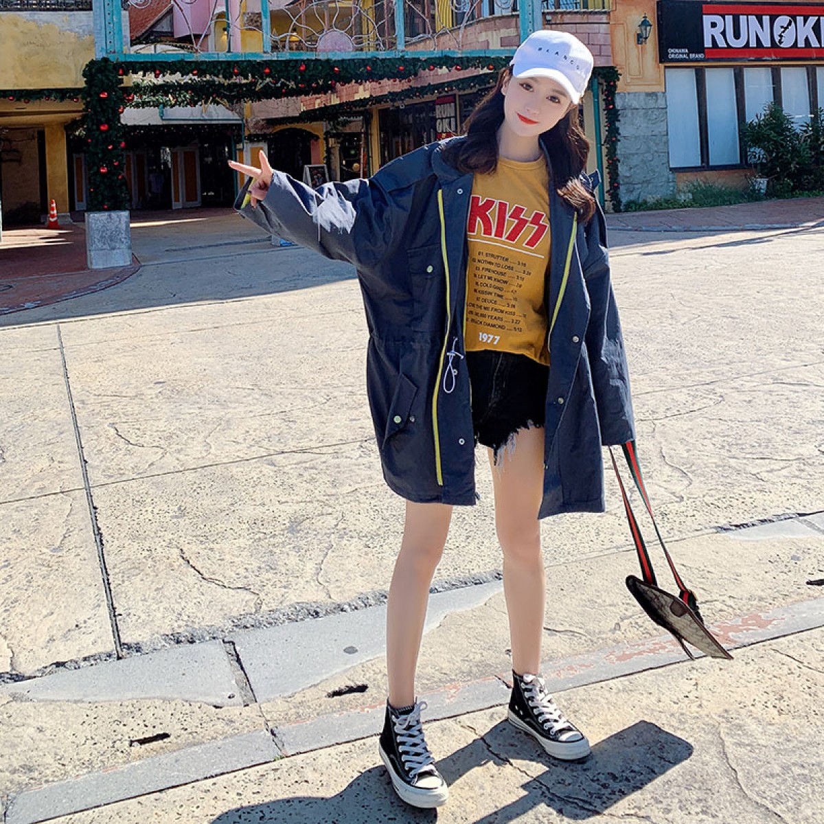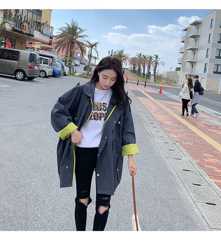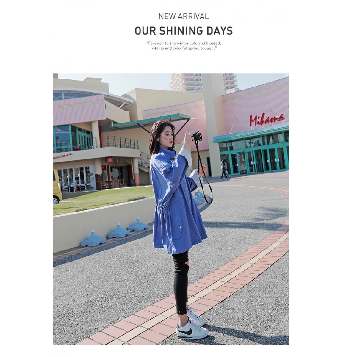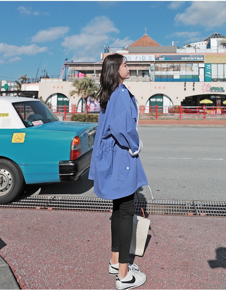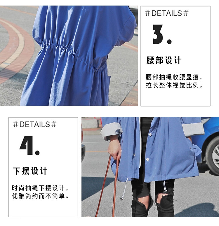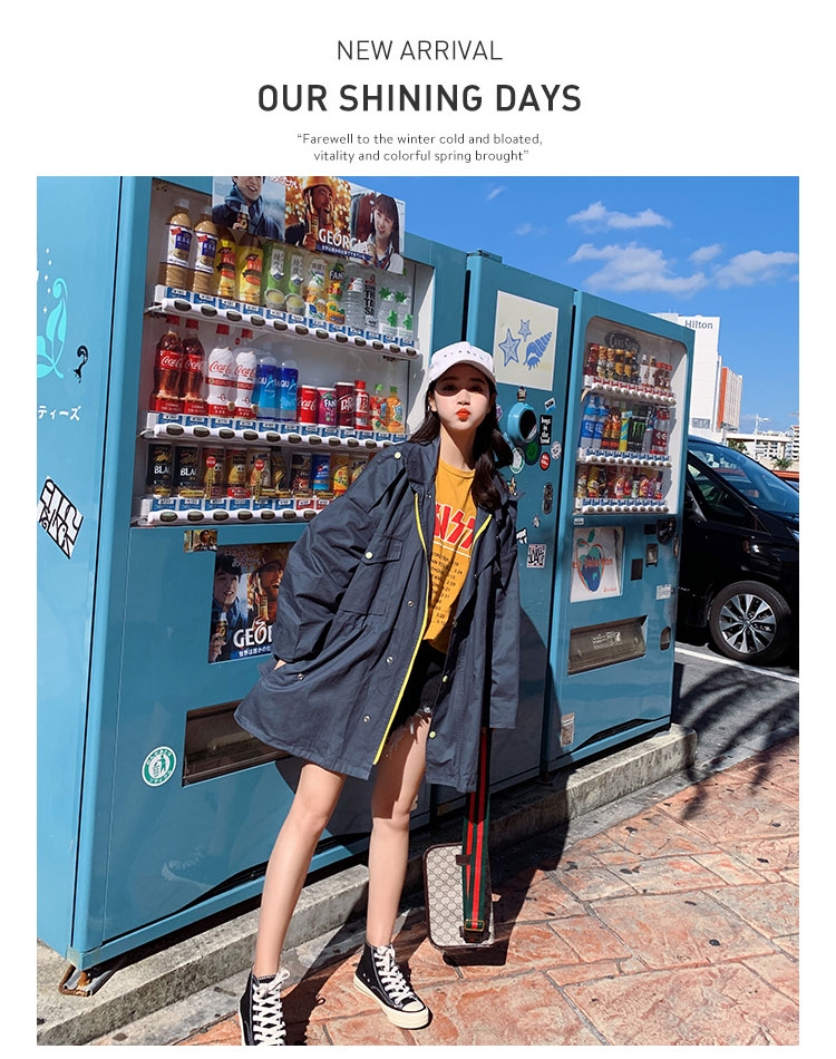 商品名稱:外套女春秋新款韓版學生中長款寬松流行工裝收腰waitmore風衣