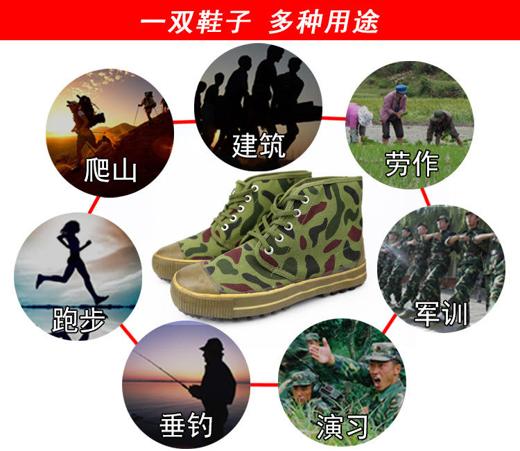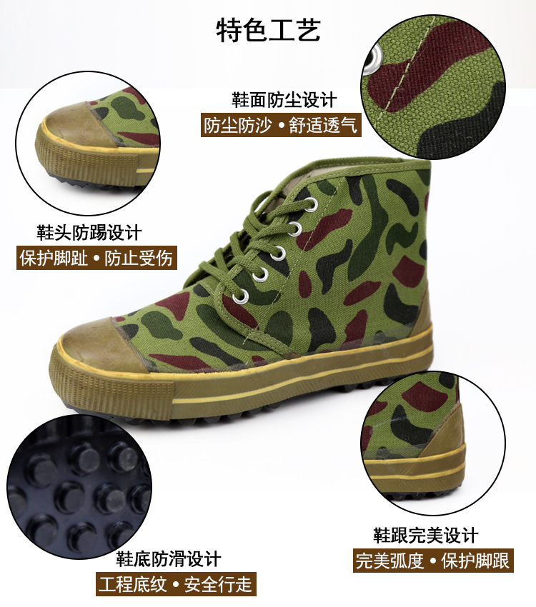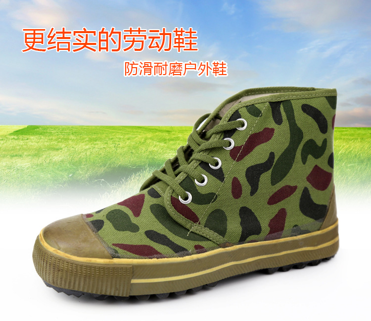 商品名稱:高筒解放鞋 男高幫叢林迷彩色耐磨防滑野戰(zhàn)專用膠鞋 作訓鞋帆布鞋