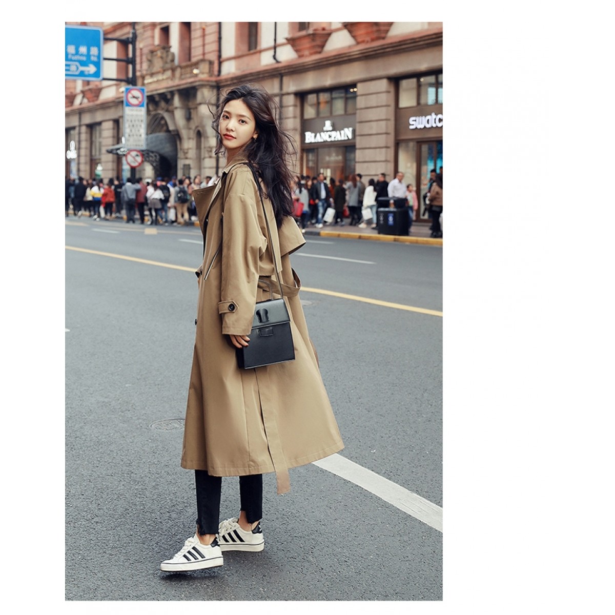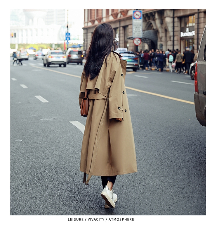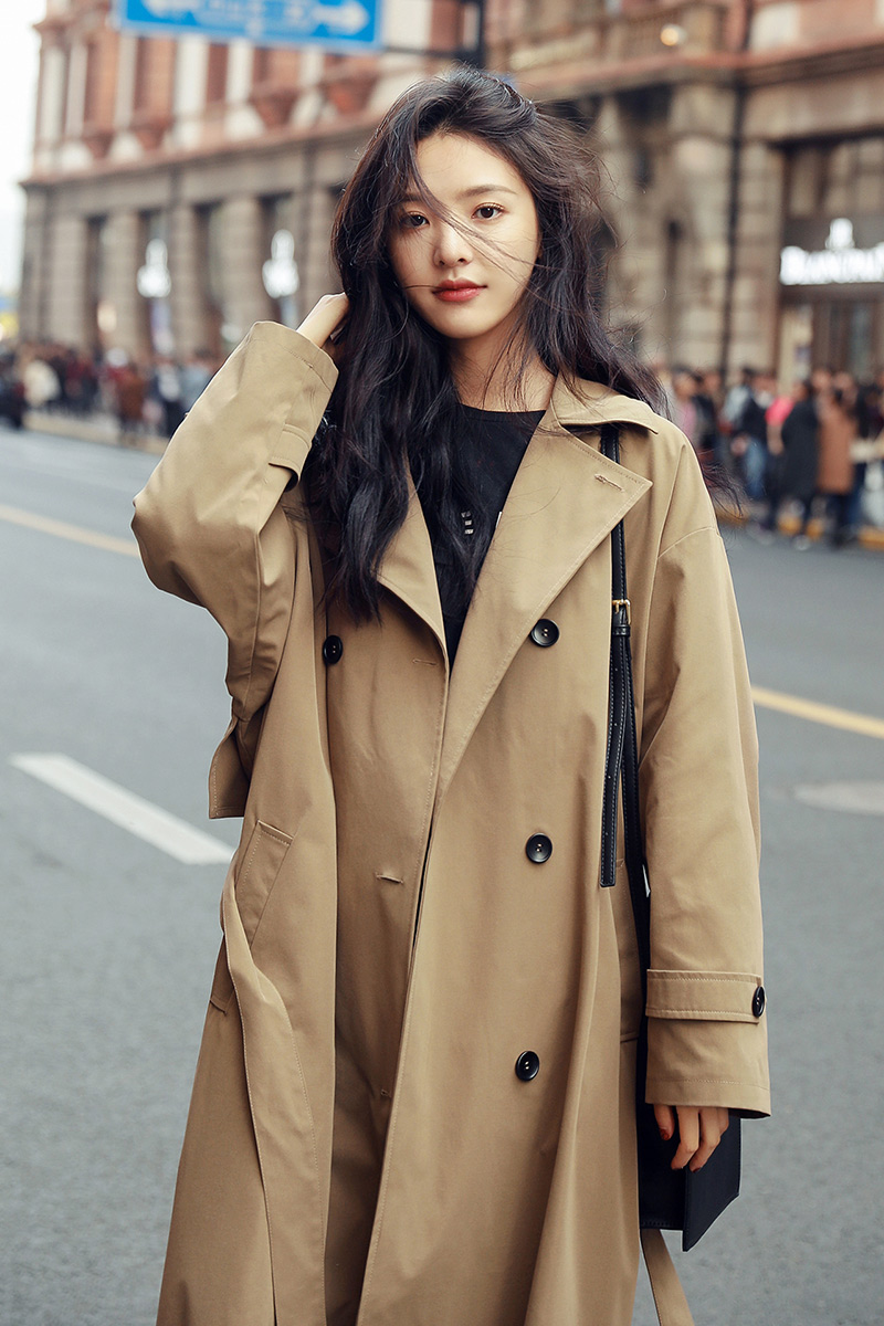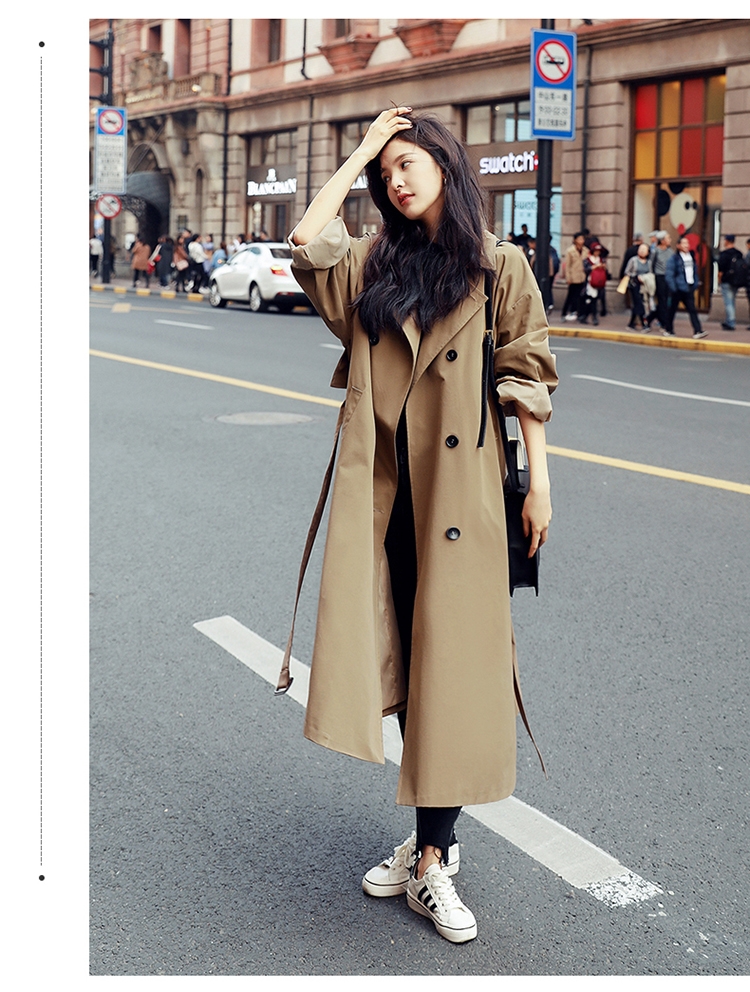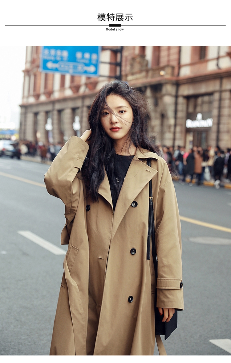 商品名稱:卡其色風衣女中長款韓版新款春過膝流行風衣外套學生waitmore