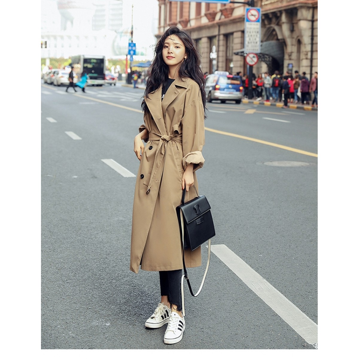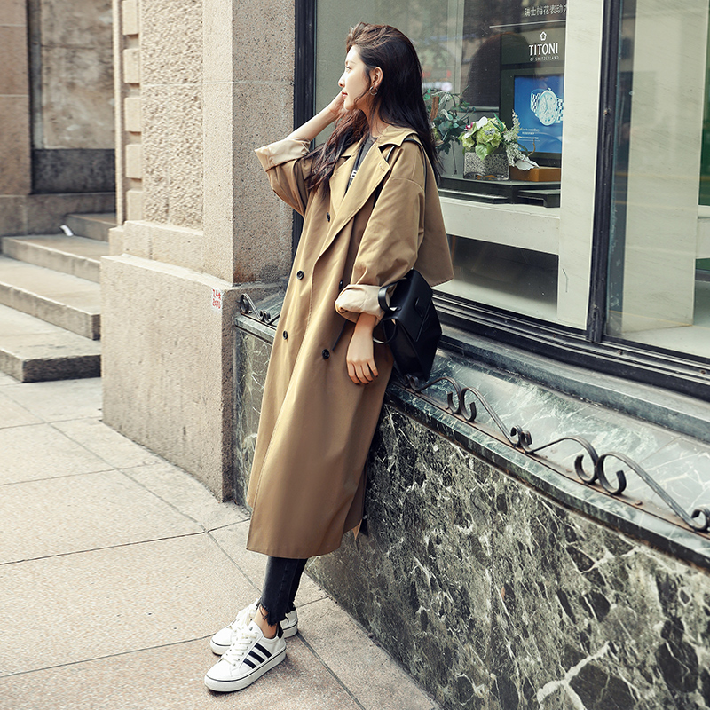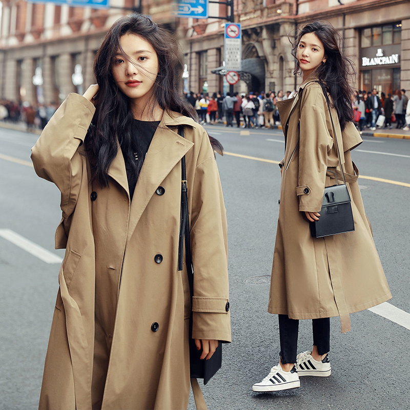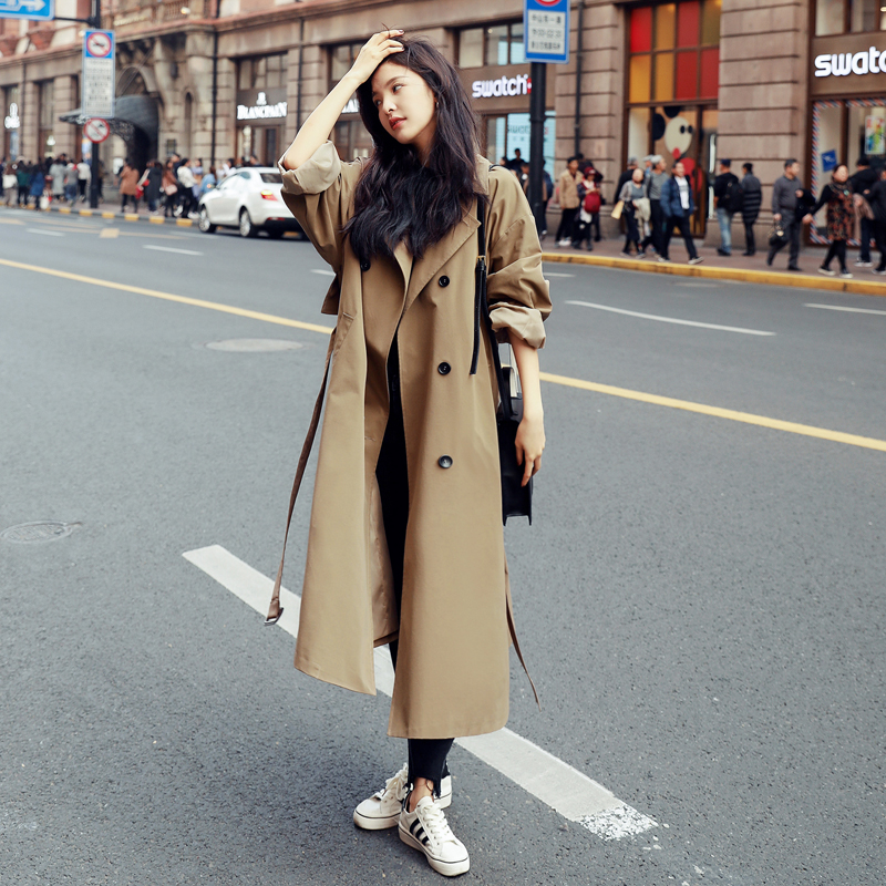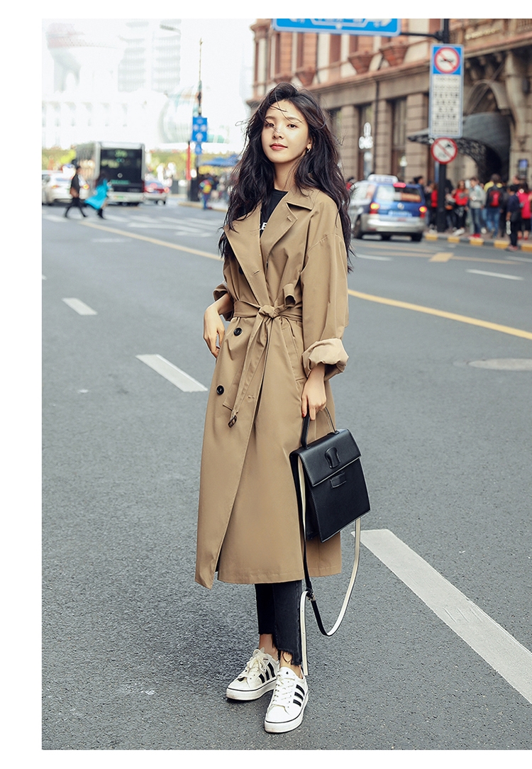 卡其色風衣女中長款韓版新款春過膝流行風衣外套學生waitmore