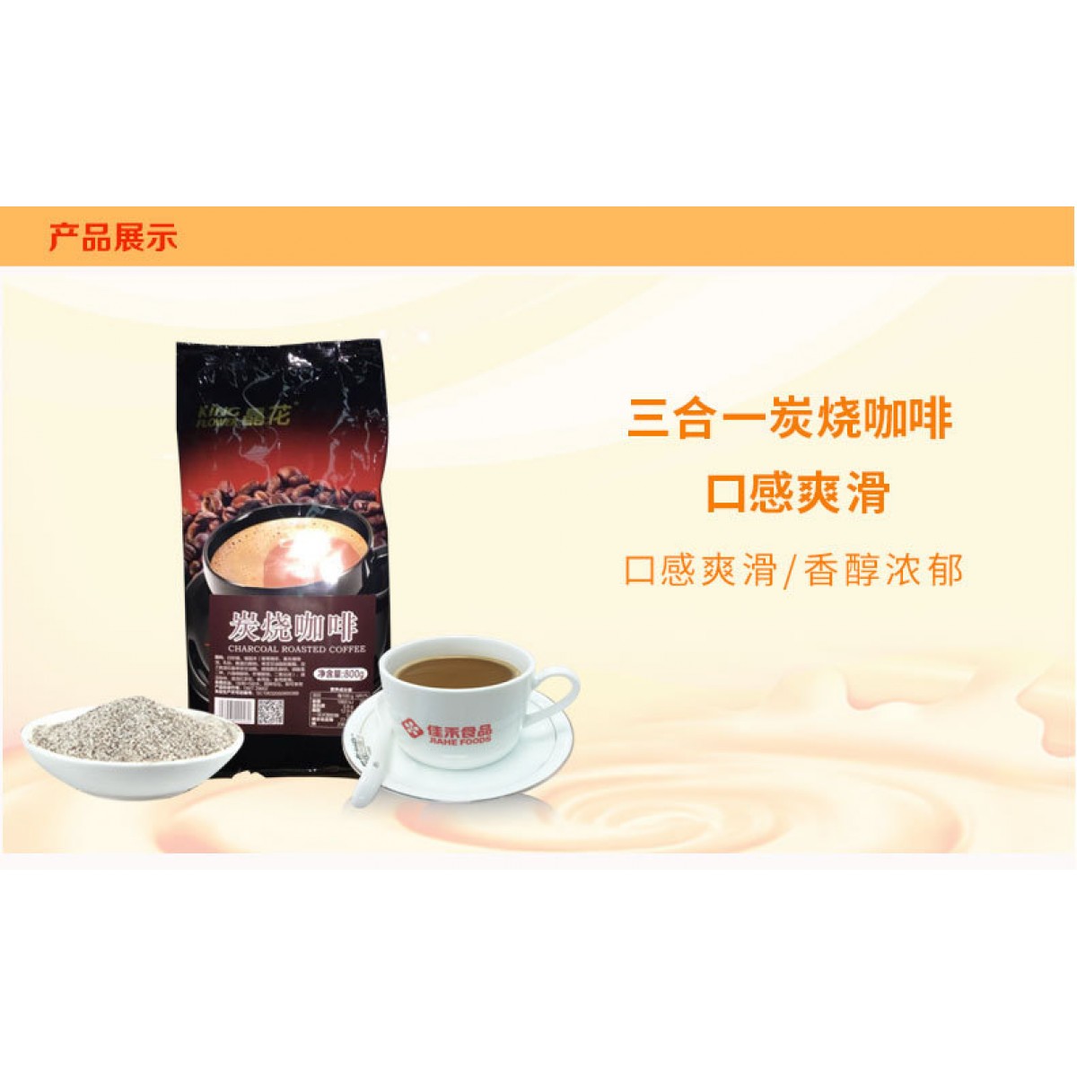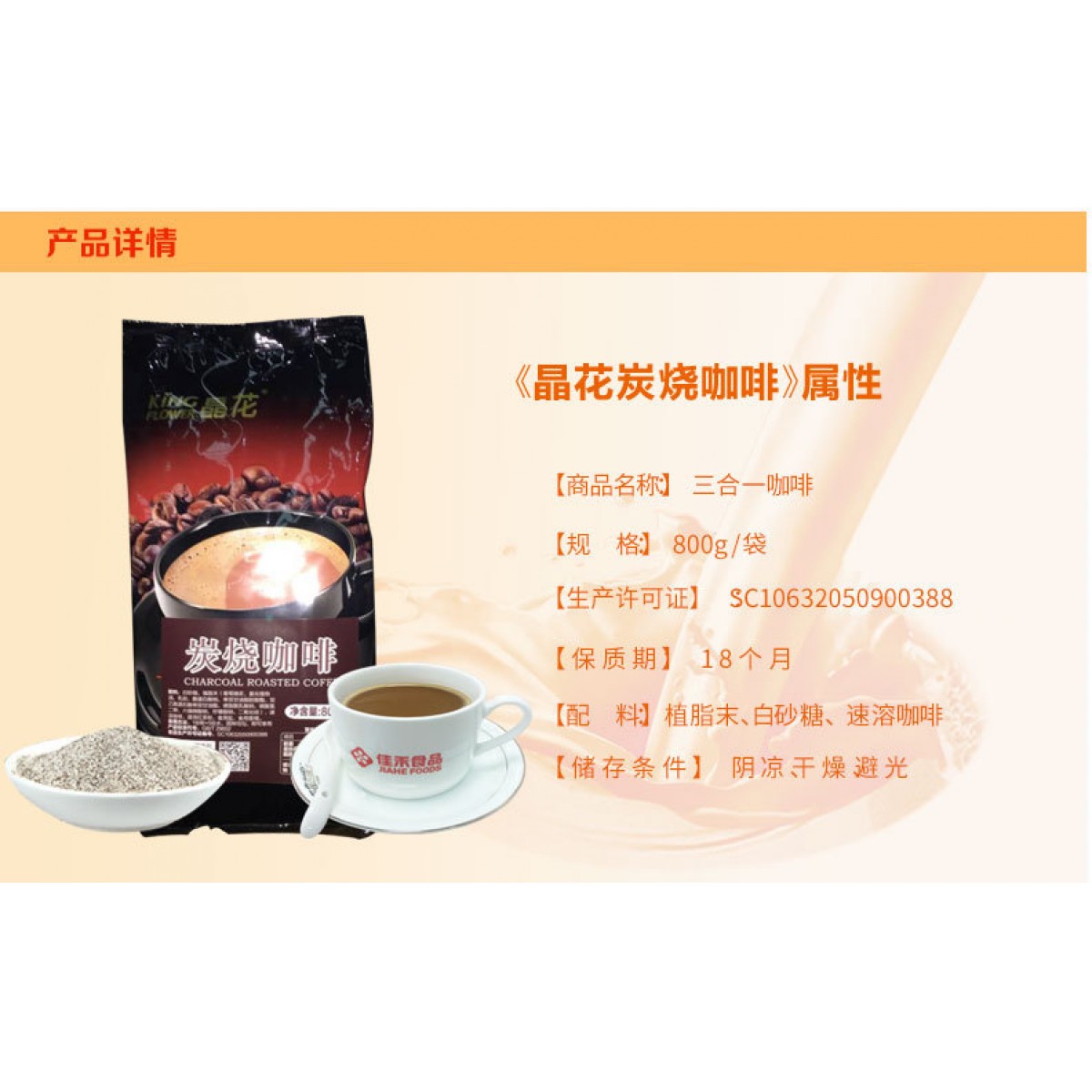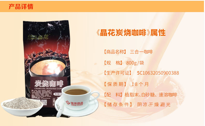 商品名稱:廠家直銷晶花咖啡批發(fā)800G小包裝三合一炭燒咖啡奶茶店一件代發(fā)