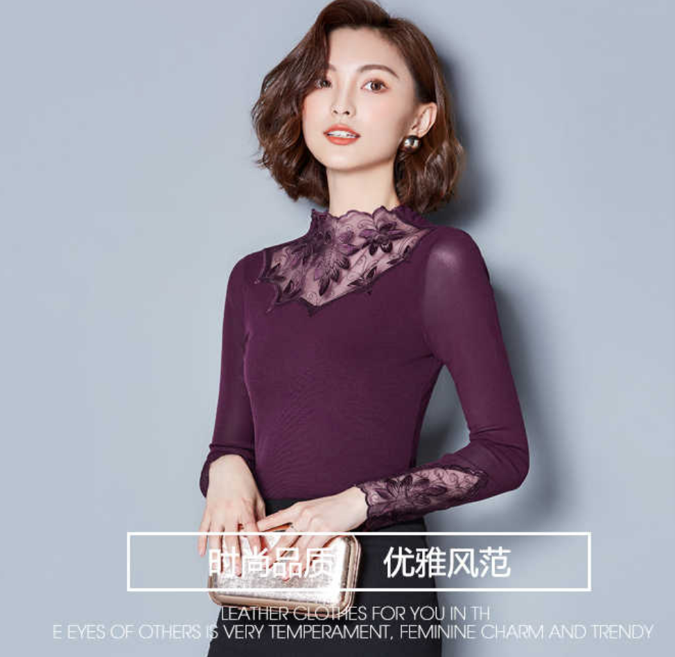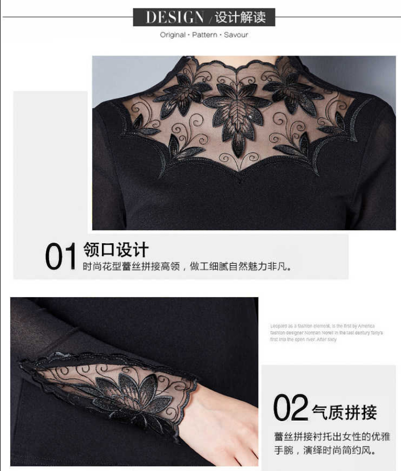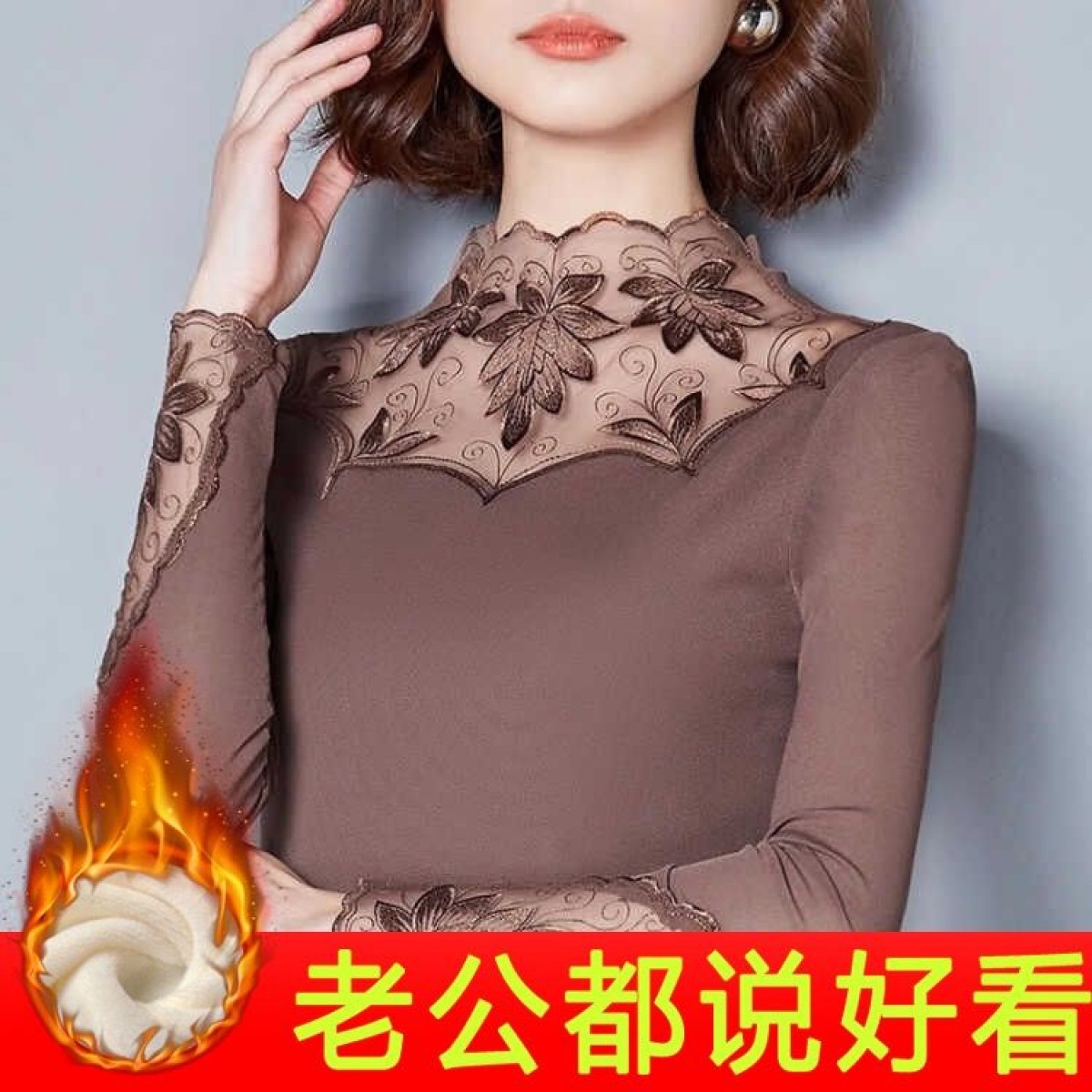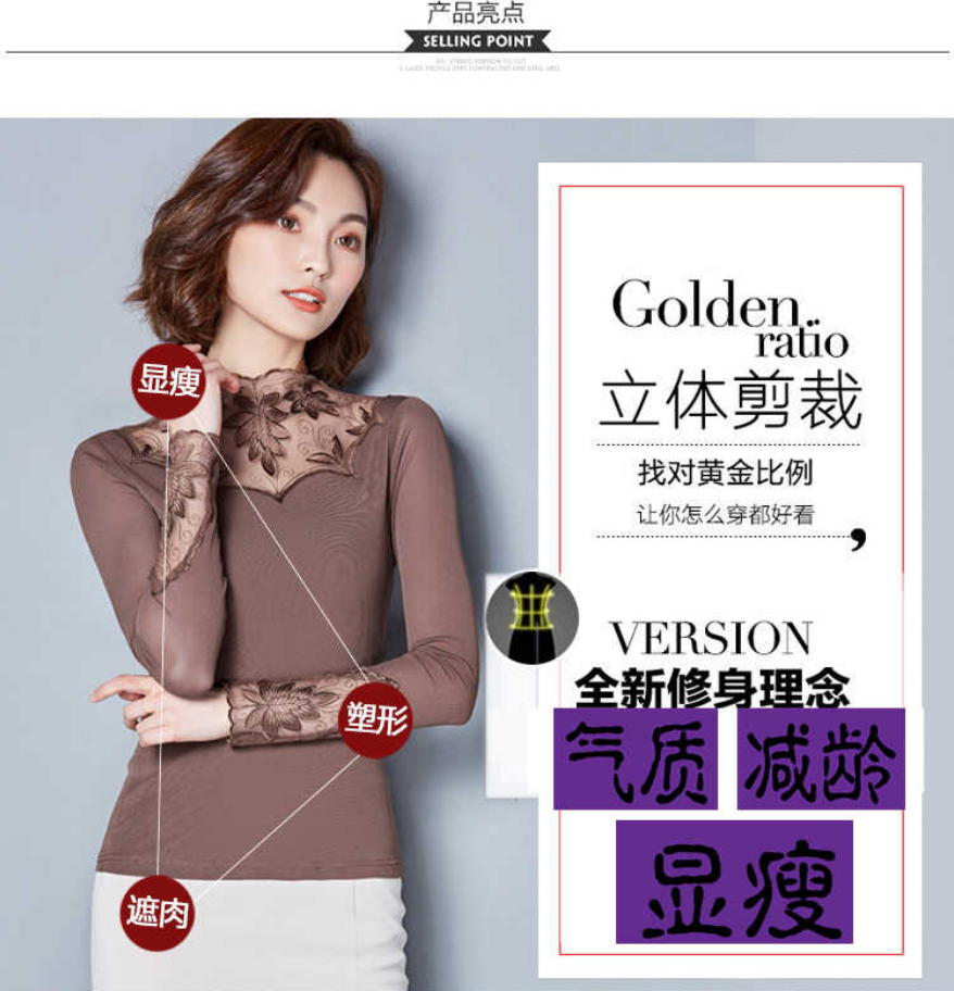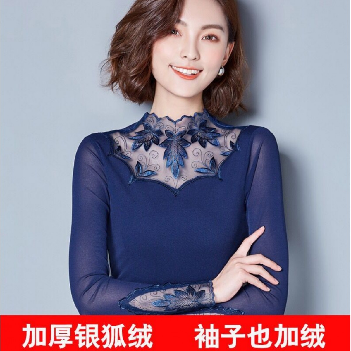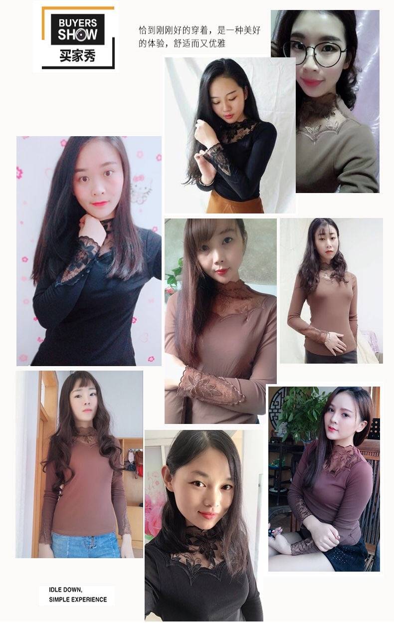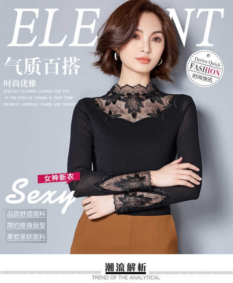 商品名稱:2019秋冬新款網(wǎng)紗打底衫女長袖t恤加絨保暖蕾絲上衣小衫大碼紗衣