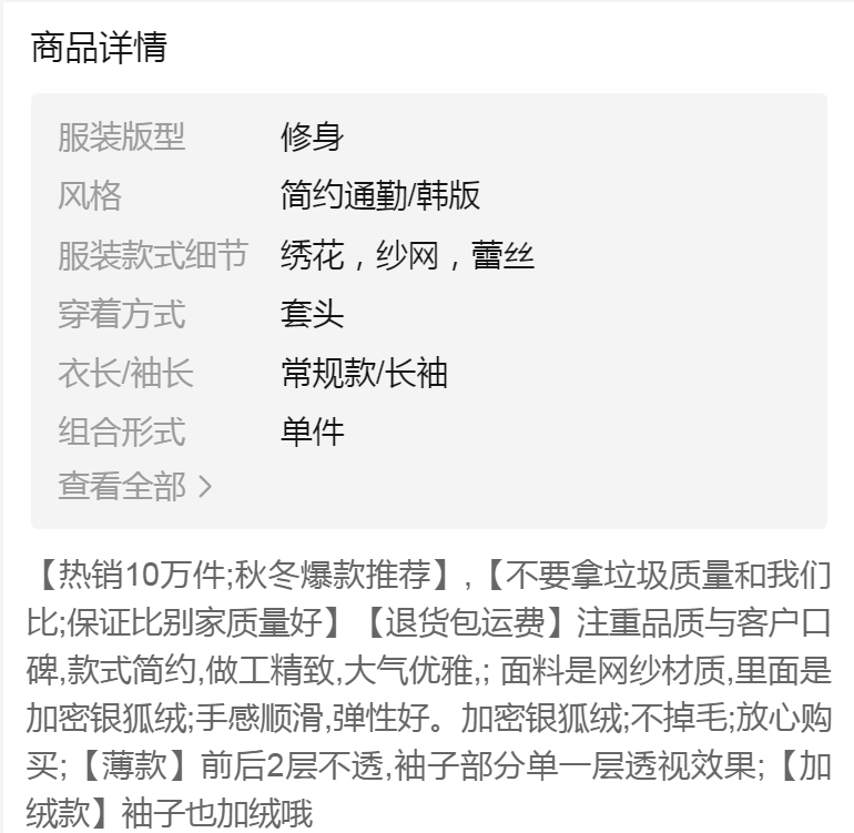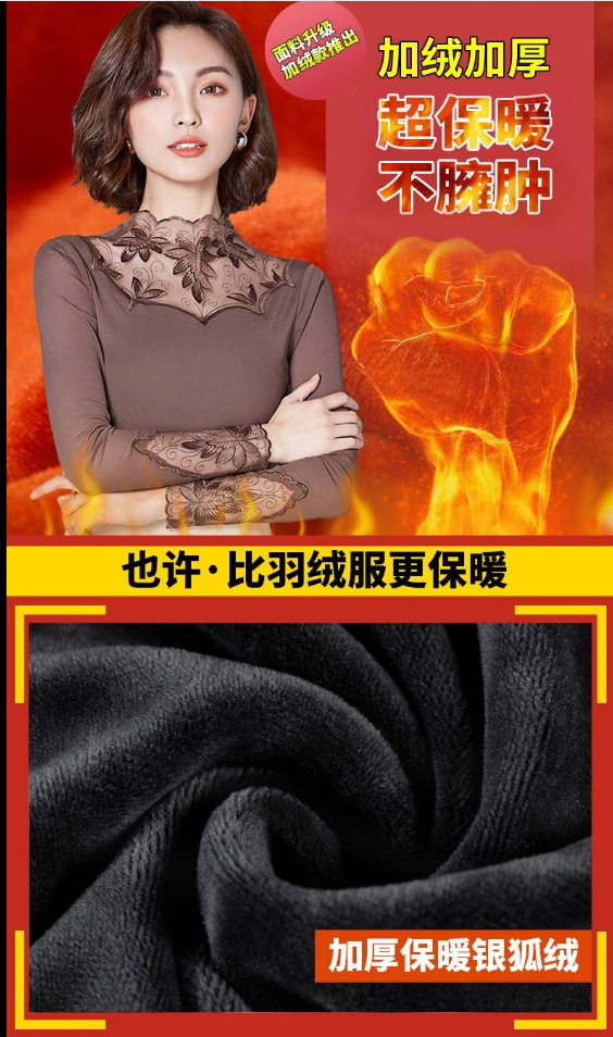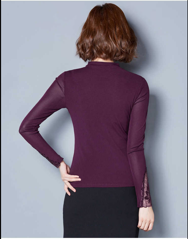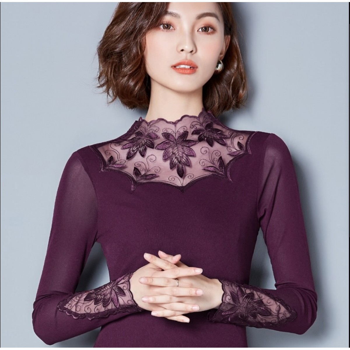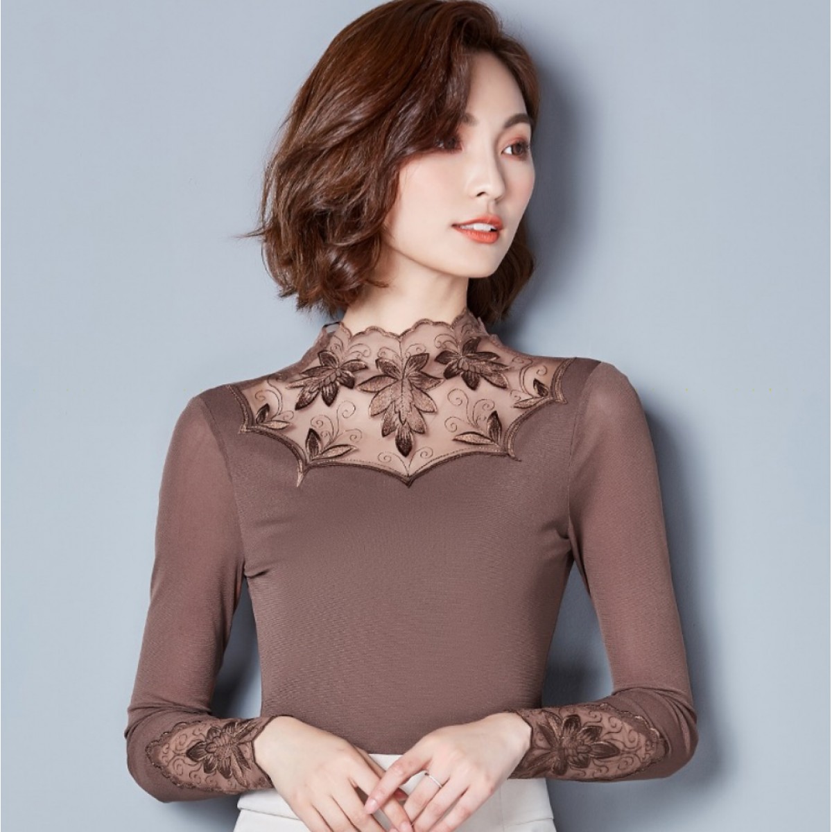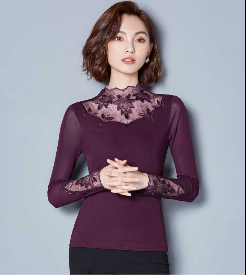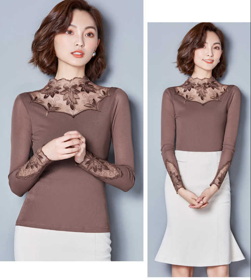 商品名稱:2019秋冬新款網(wǎng)紗打底衫女長袖t恤加絨保暖蕾絲上衣小衫大碼紗衣