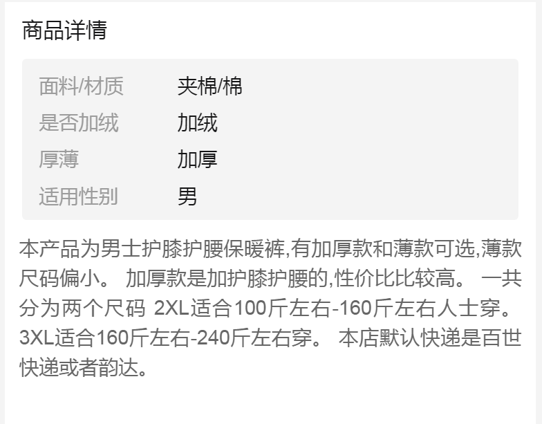 商品名稱:冬季加肥加大男士保暖褲護膝護腰棉褲加絨加厚寬松高腰超彈打底褲