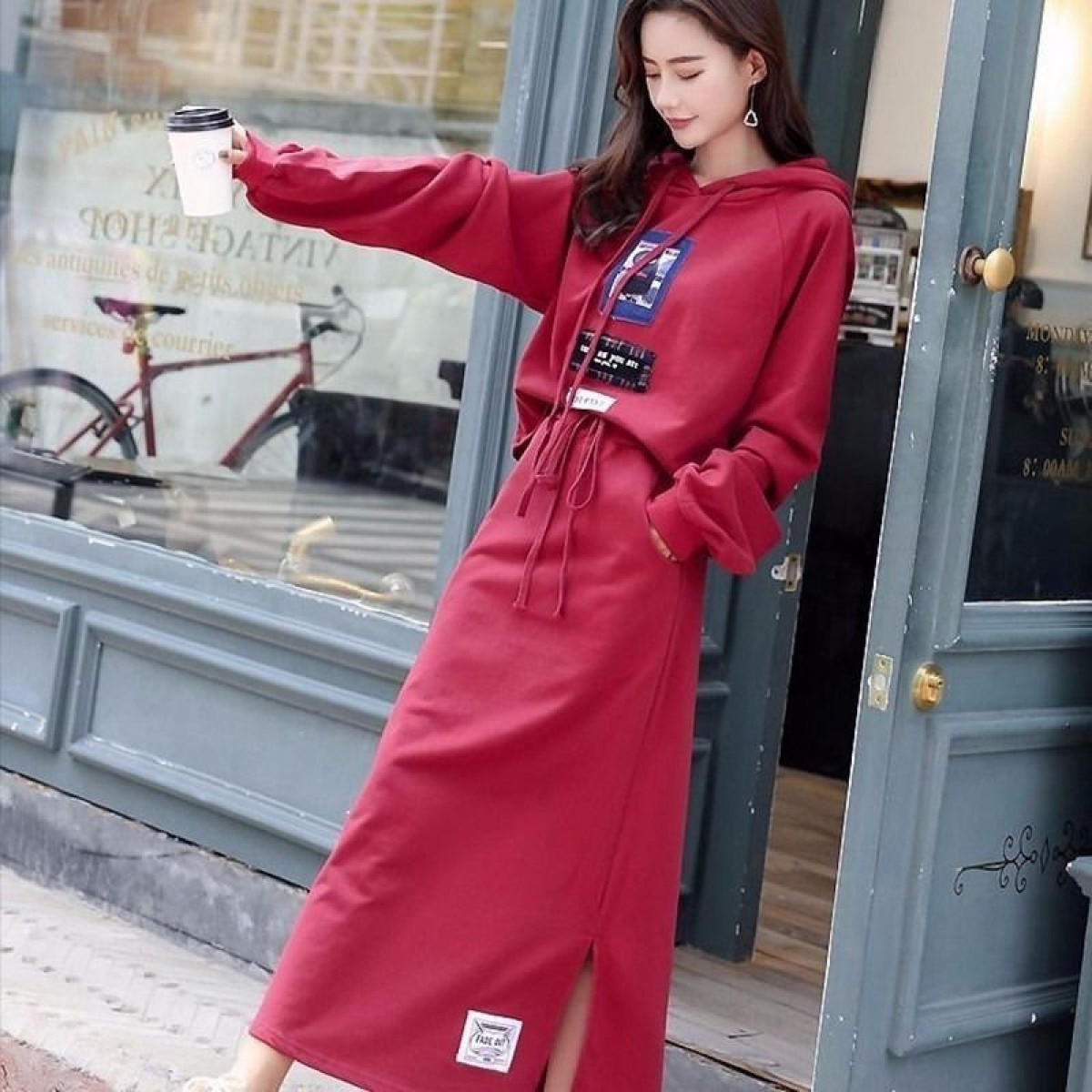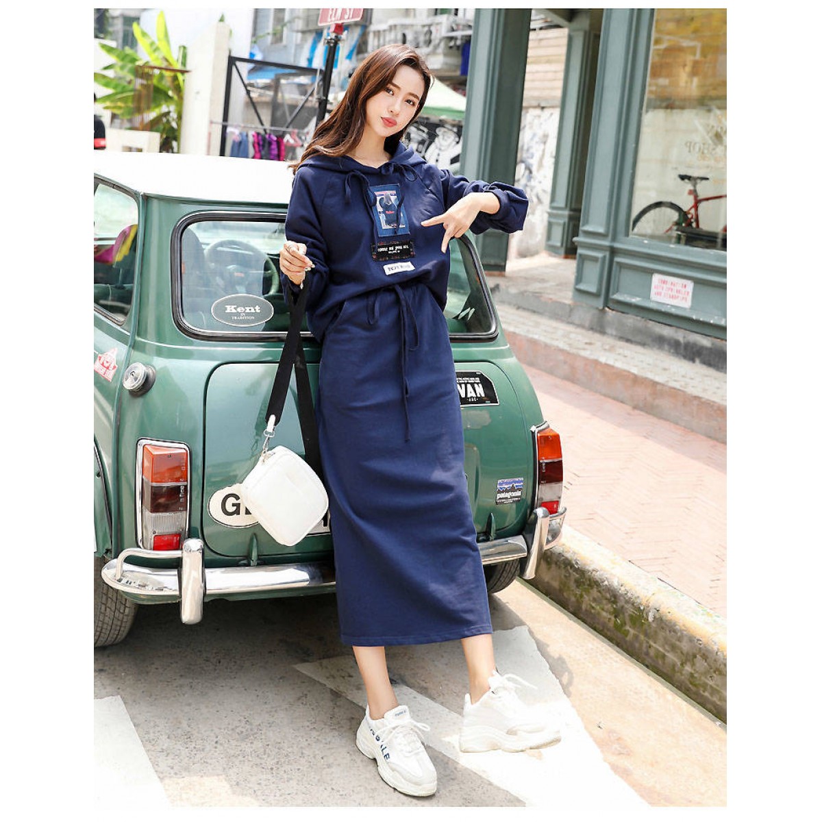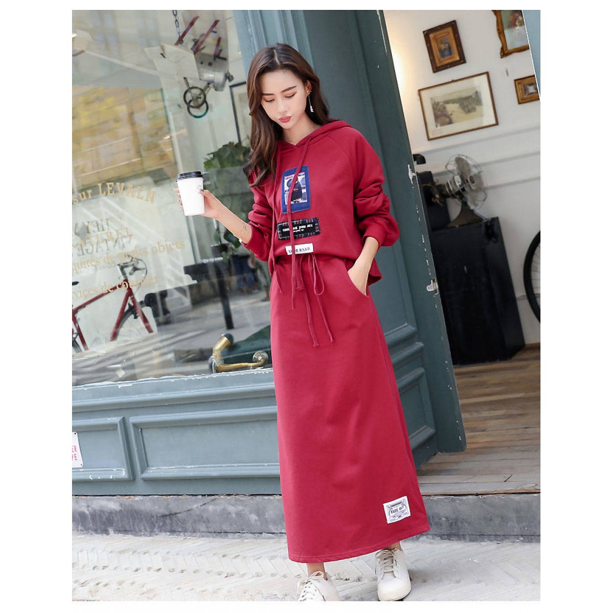 衛(wèi)衣2019新款女春秋裝寬松韓版長袖套頭連帽半身裙兩件套套裝裙