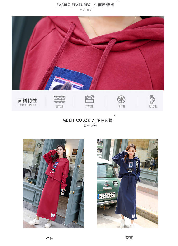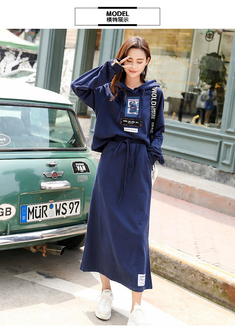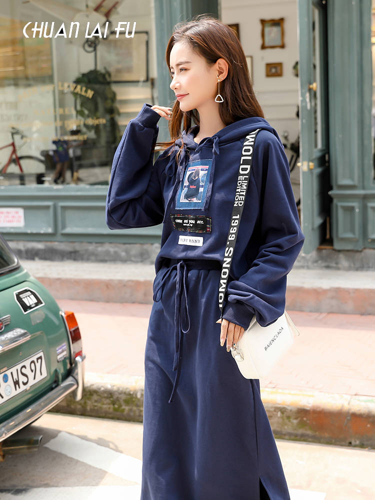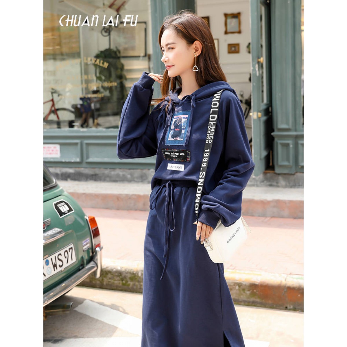 商品名稱:衛(wèi)衣2019新款女春秋裝寬松韓版長袖套頭連帽半身裙兩件套套裝裙