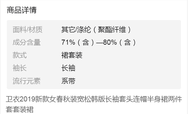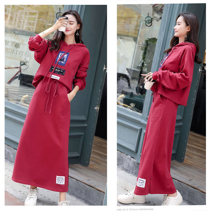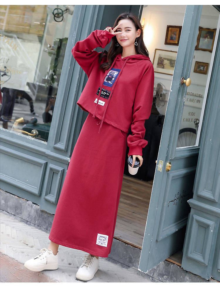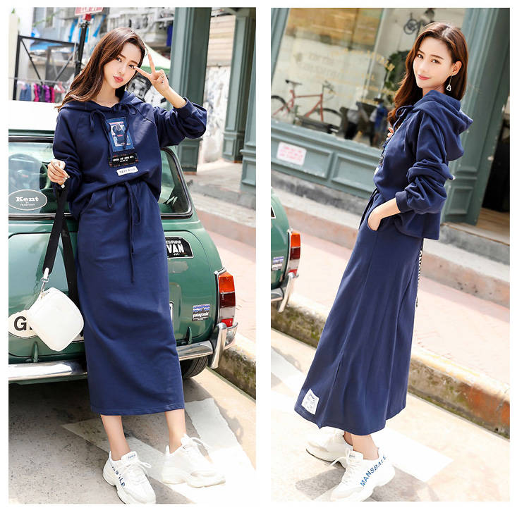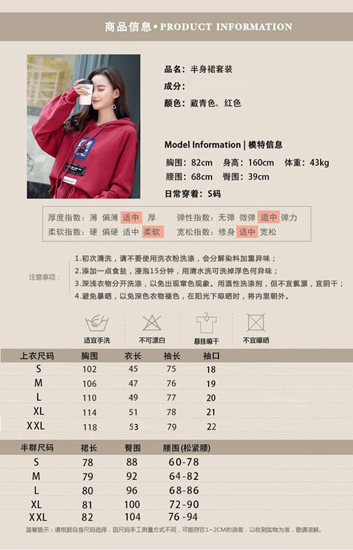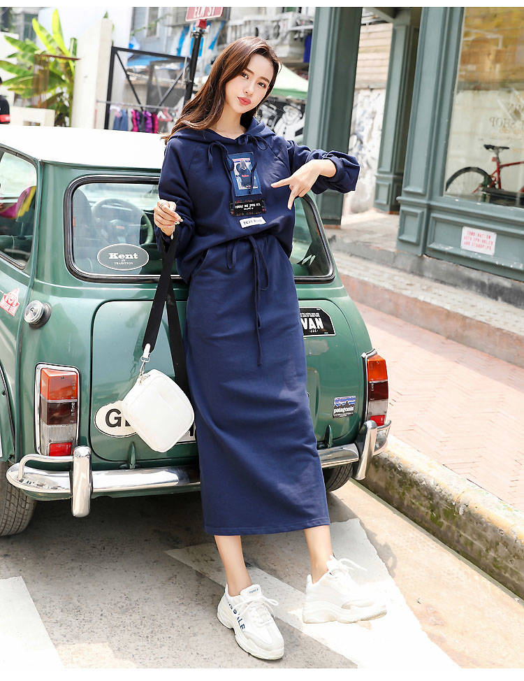 商品名稱:衛(wèi)衣2019新款女春秋裝寬松韓版長袖套頭連帽半身裙兩件套套裝裙