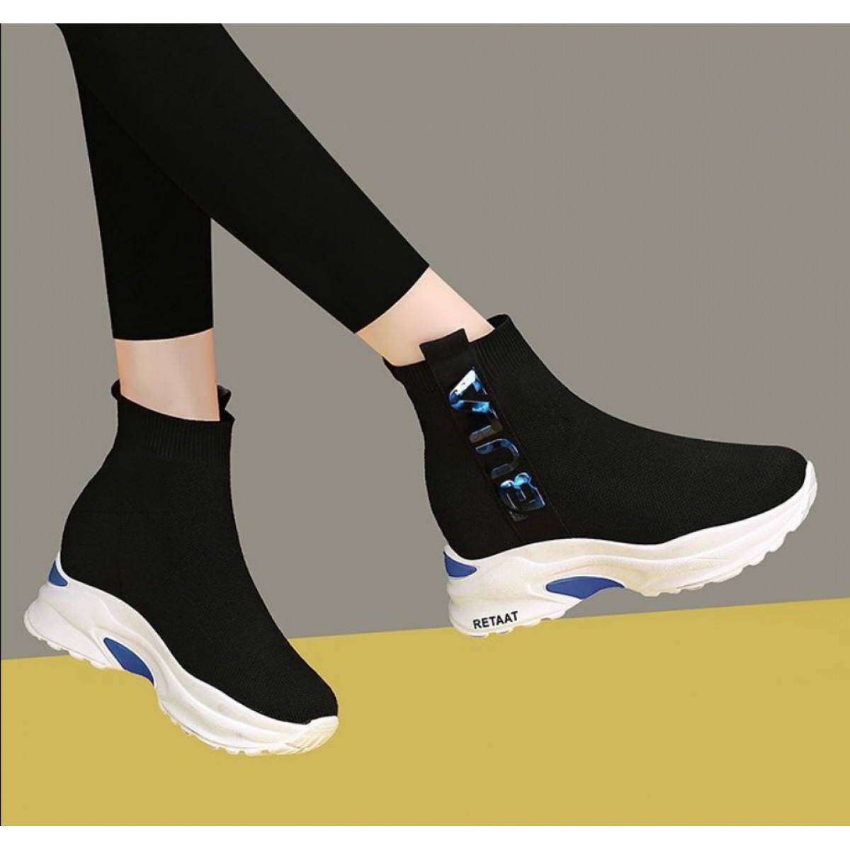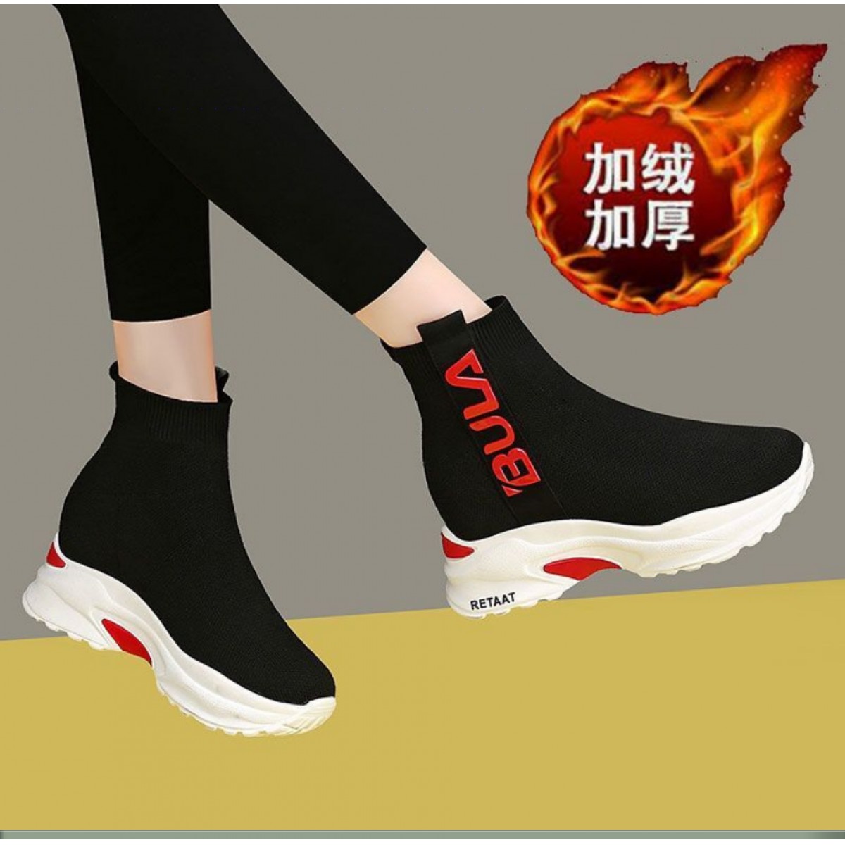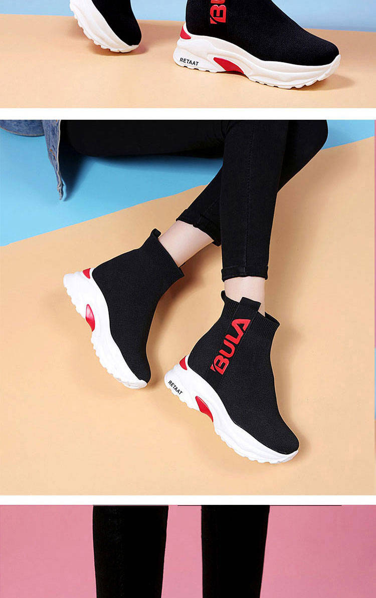 2019秋季高幫運動襪子鞋女學(xué)生彈力韓版厚底內(nèi)增高休閑鞋