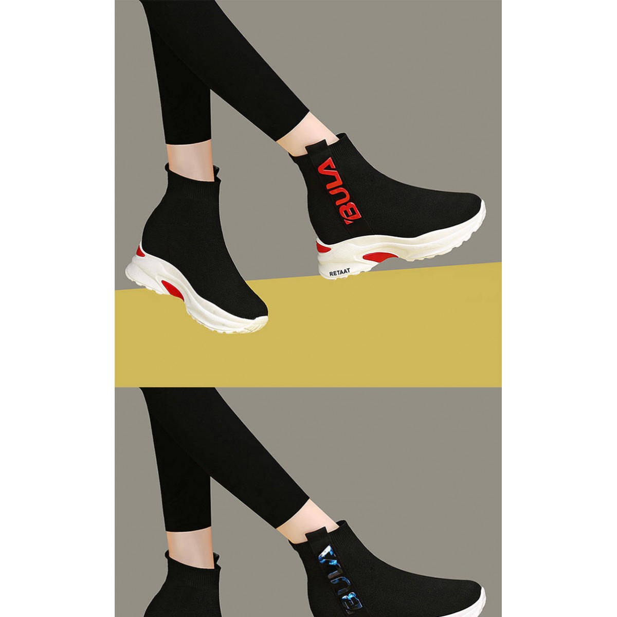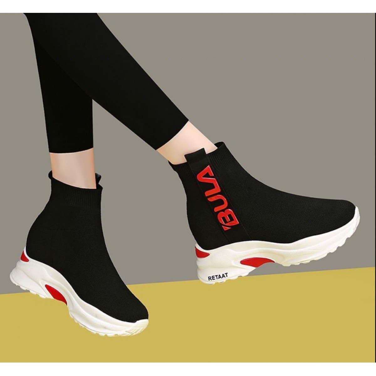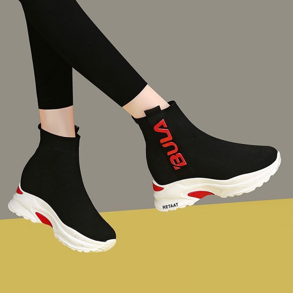 2019秋季高幫運動襪子鞋女學(xué)生彈力韓版厚底內(nèi)增高休閑鞋