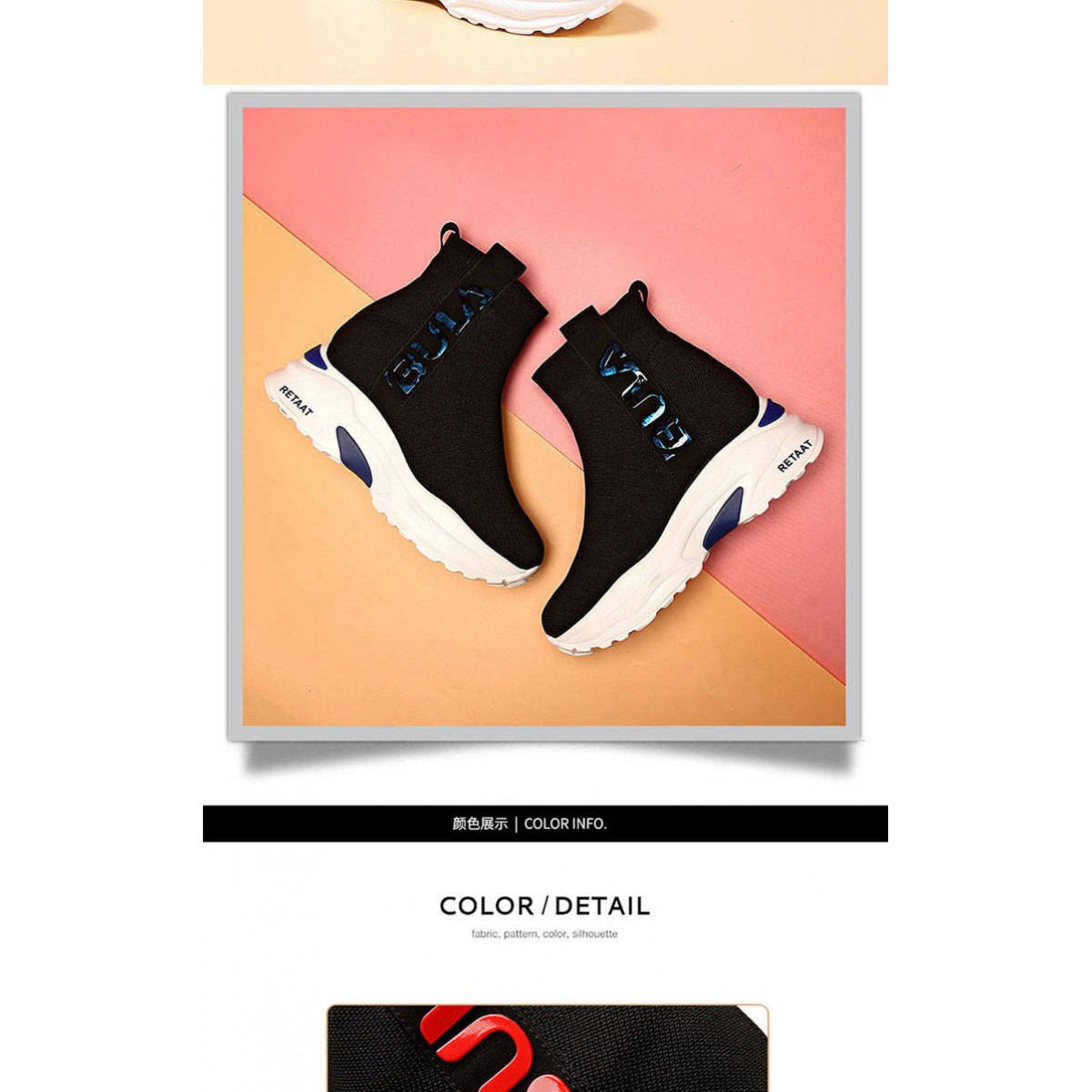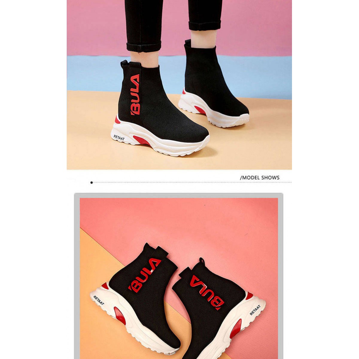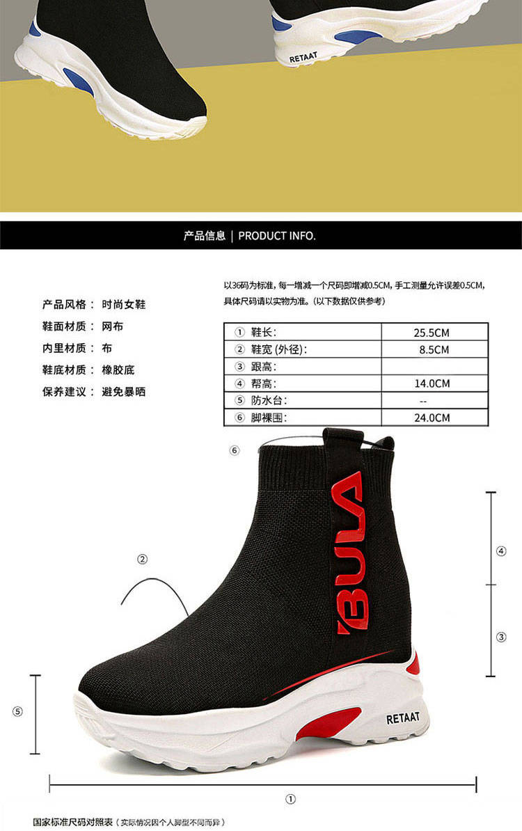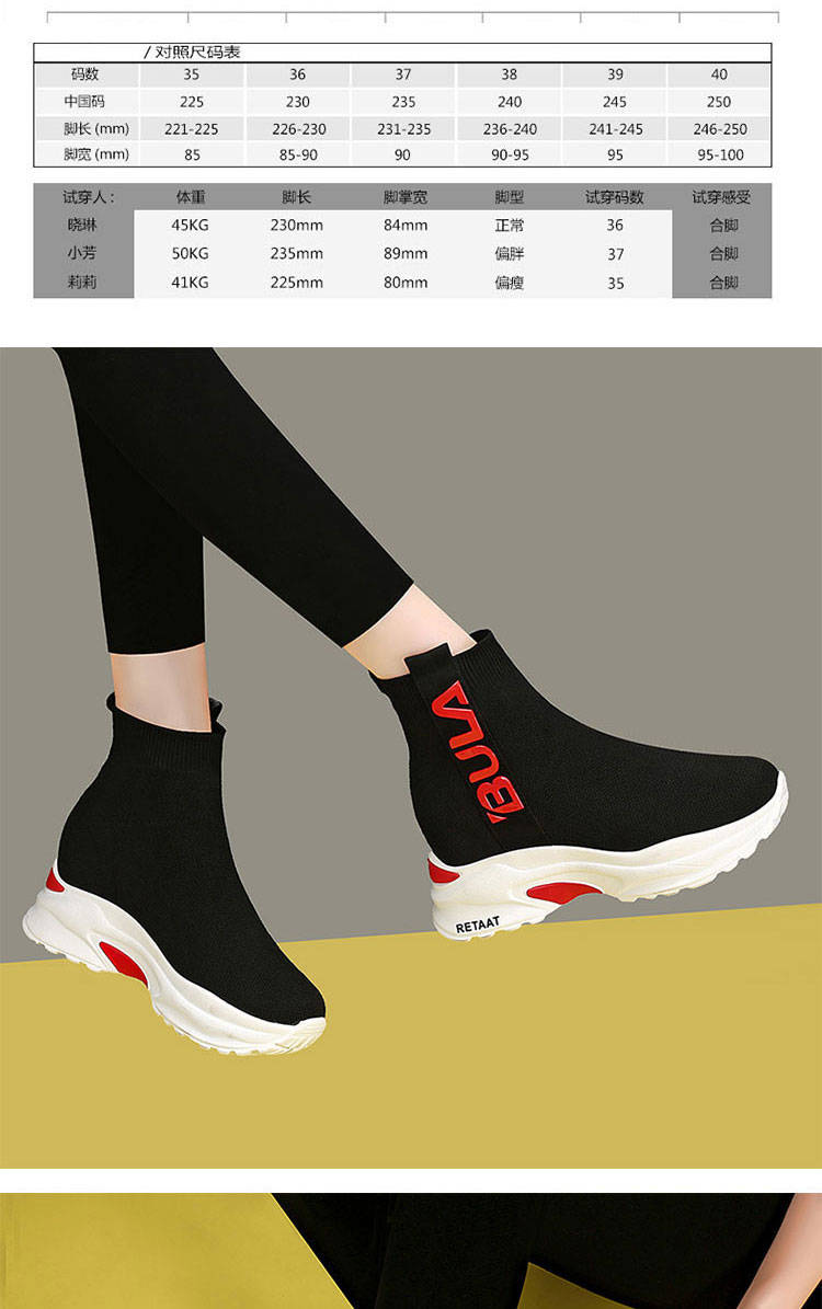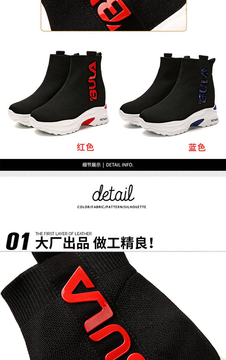 商品名稱:2019秋季高幫運動襪子鞋女學(xué)生彈力韓版厚底內(nèi)增高休閑鞋