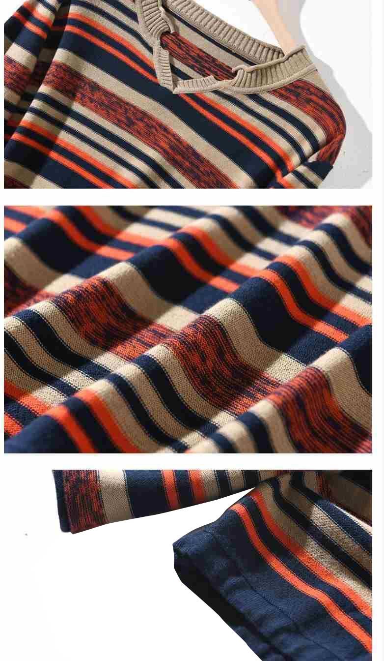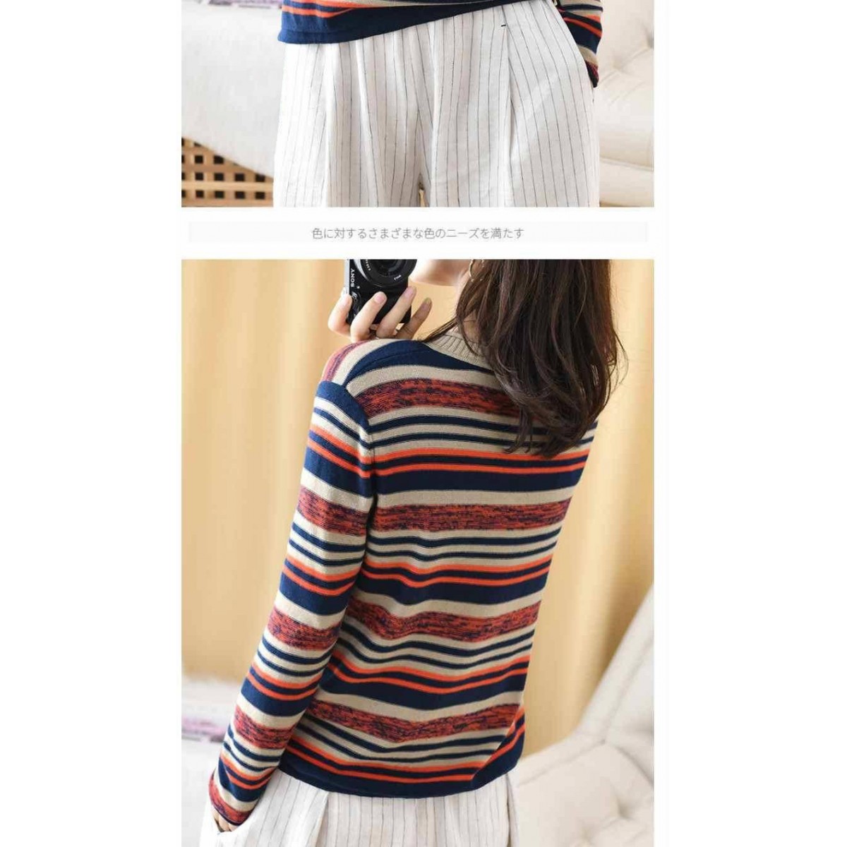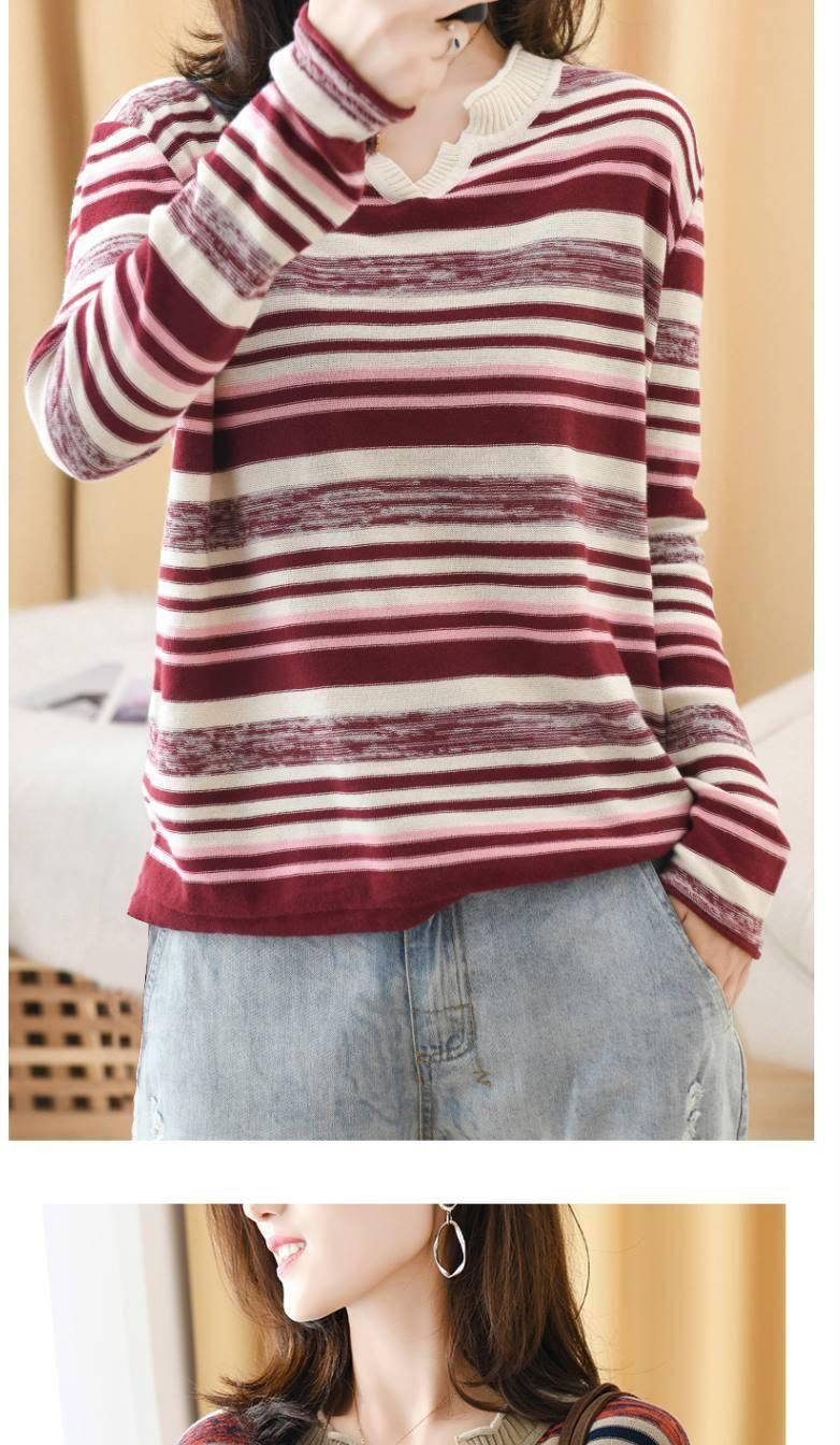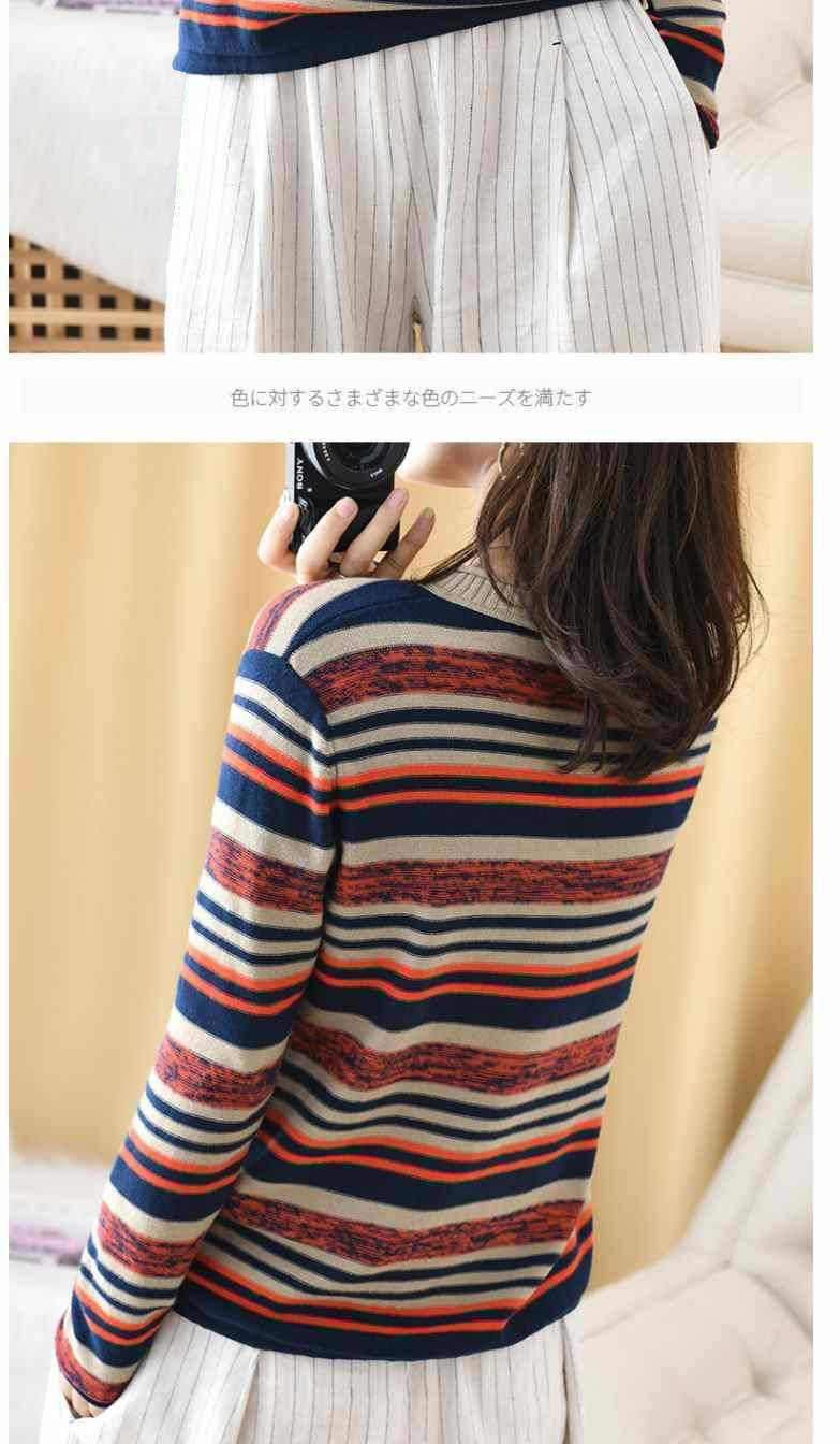 商品名稱:新款2019秋v領針織長袖女裝寬松毛衣上衣條紋針織衫薄款打底衫