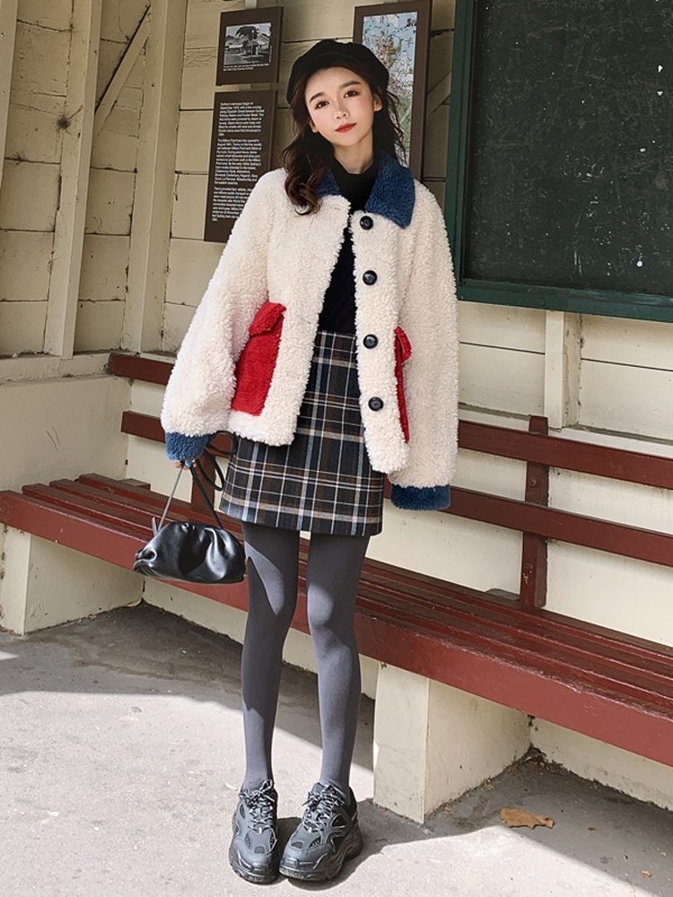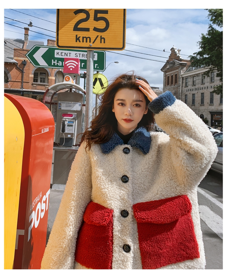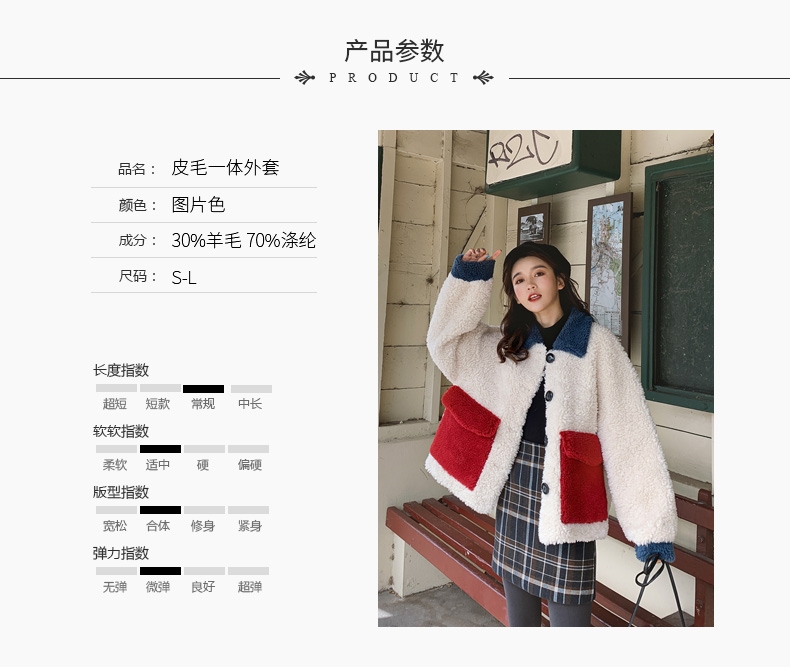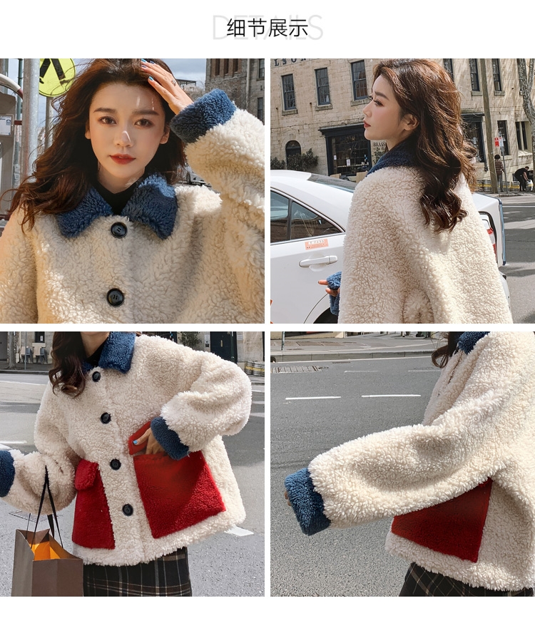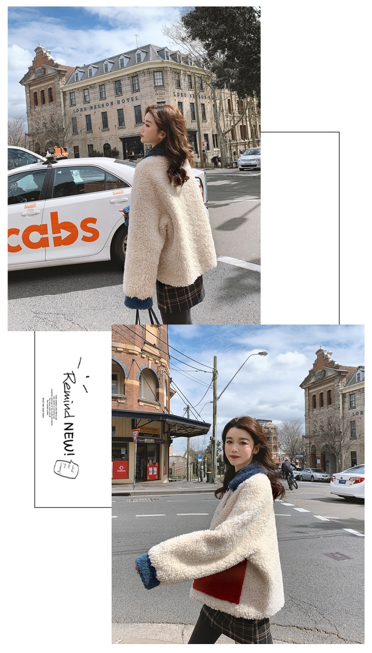 商品名稱:新款撞色拼接羊羔毛外套女港風(fēng)學(xué)生流行仿皮毛一體上衣潮