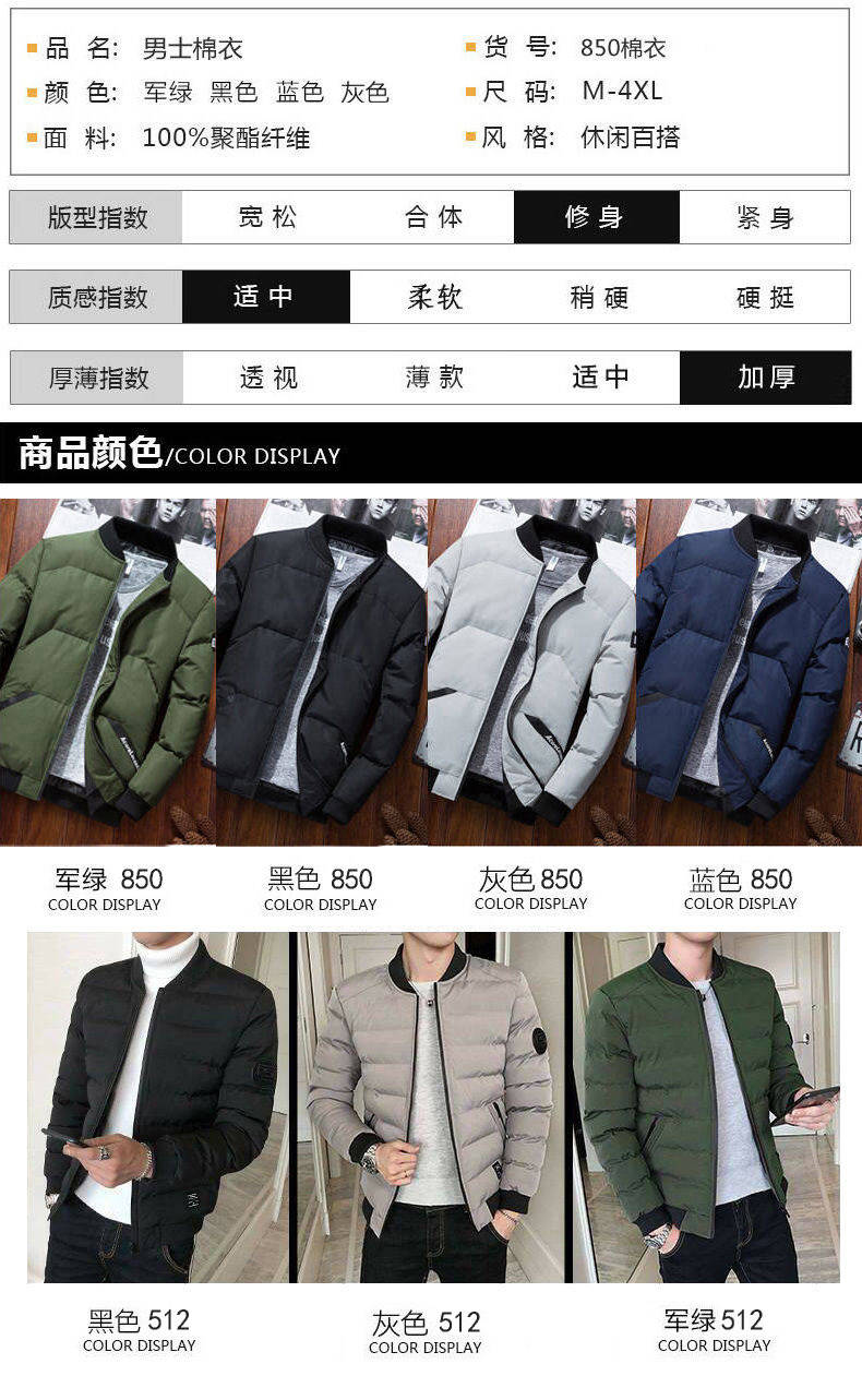 商品名稱:加厚冬季棒球領(lǐng)棉衣男韓版羽絨棉外套冬天男裝棉服襖
