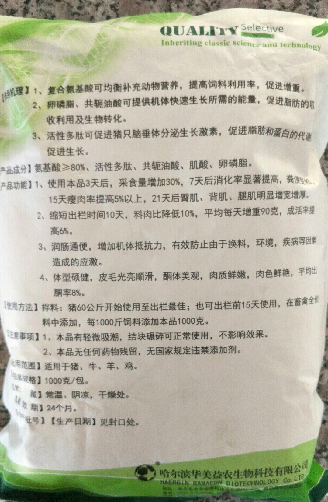 使用機(jī)理:1.復(fù)合氨基酸克均衡補(bǔ)充動(dòng)物營(yíng)養(yǎng),提高飼料使用率,促進(jìn)增重。