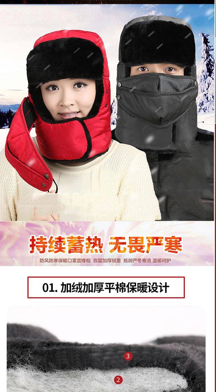 商品名稱:冬季帽子女韓版雷鋒帽男東北護(hù)耳棉帽冬天戶外騎車防風(fēng)保暖防寒帽