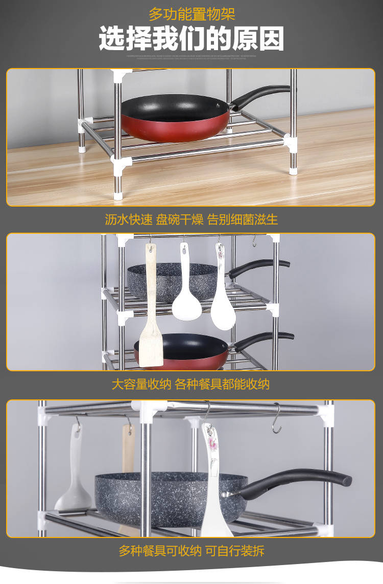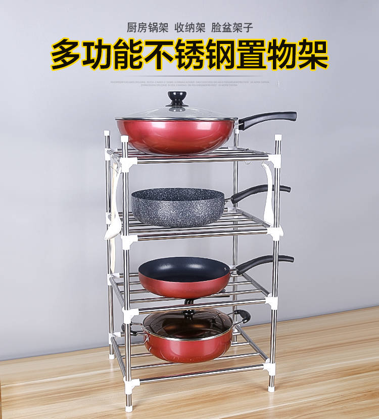 商品名稱:加高加厚不銹鋼臉盆架 廚房置物架 多層廚房鍋架收納架