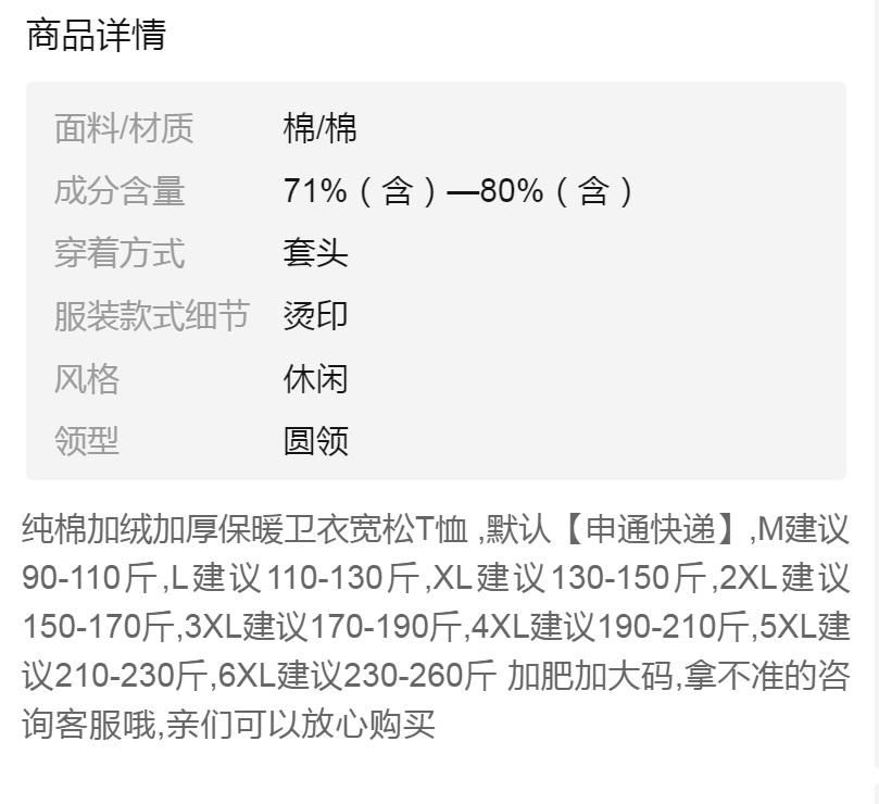 商品名稱:男士純棉超柔加絨保暖衛(wèi)衣上衣肥加大碼寬松保暖T恤