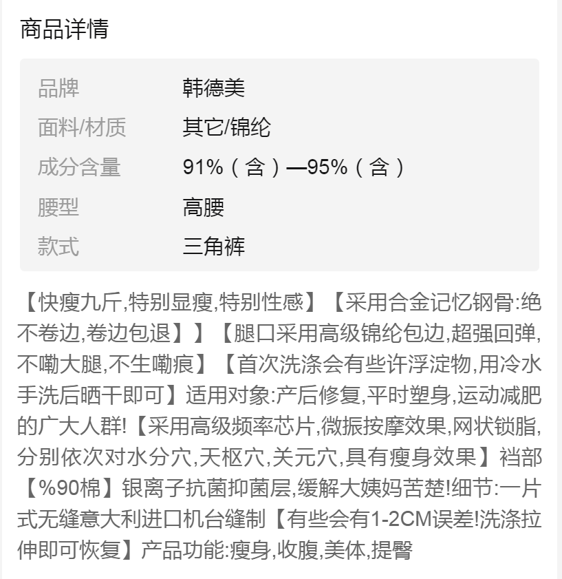 商品名稱:收腹內褲高腰女燃脂瘦身束腰提臀瘦身收腹褲減肥內褲