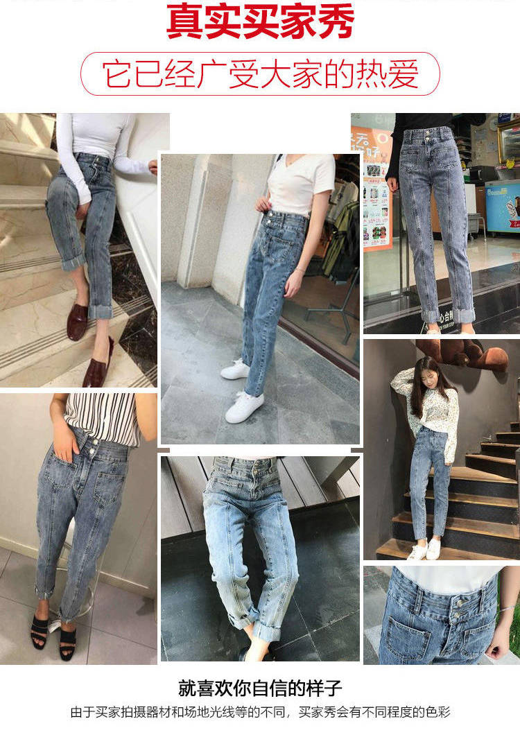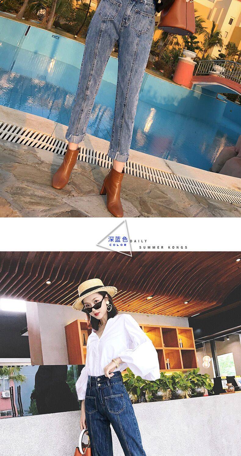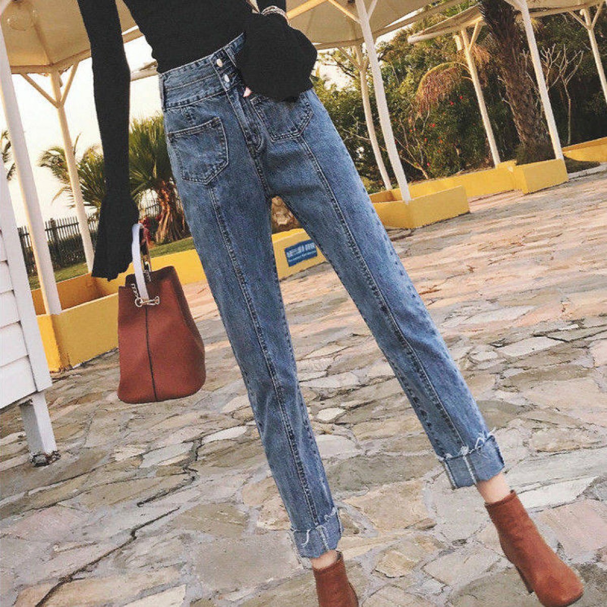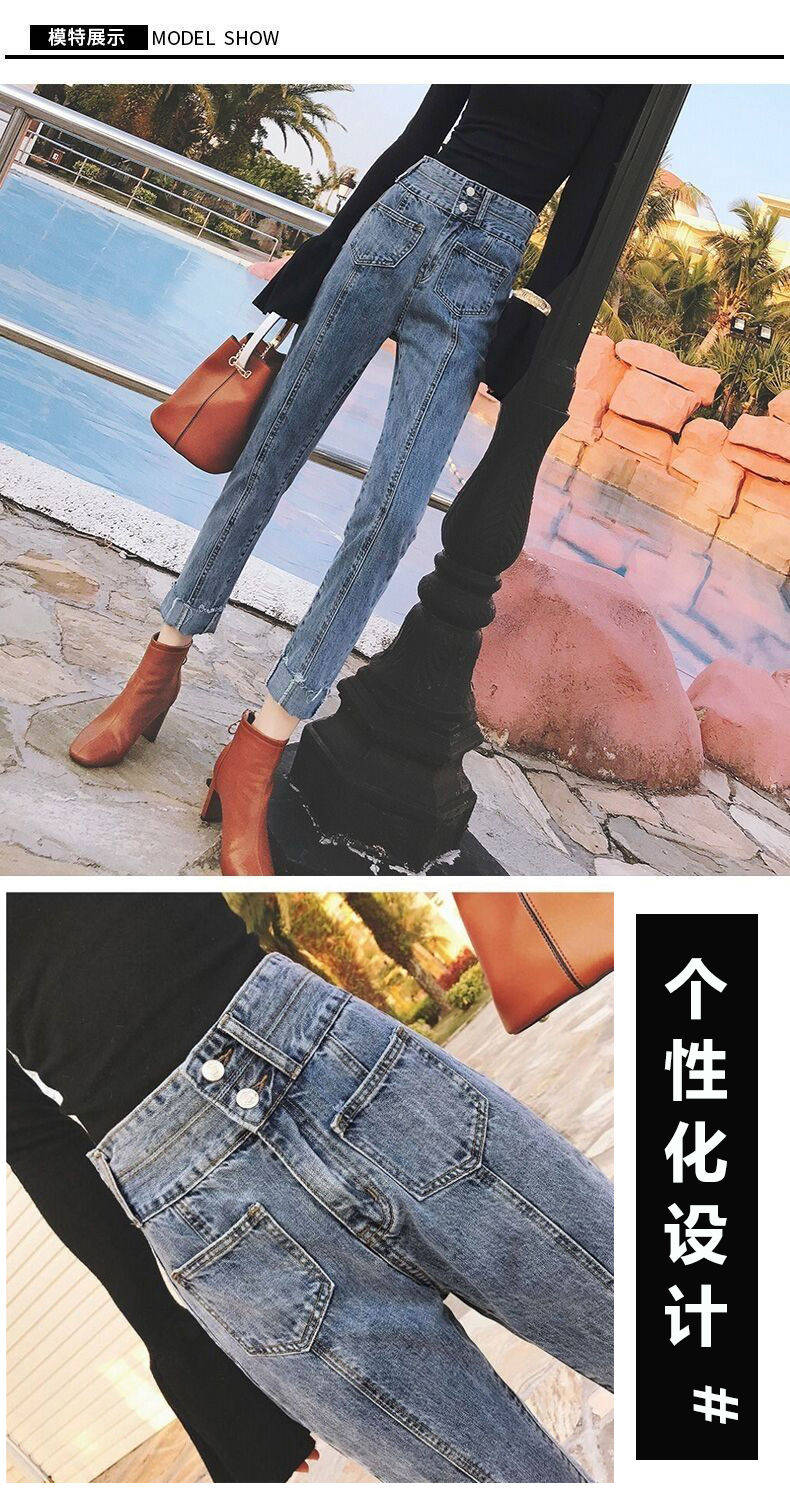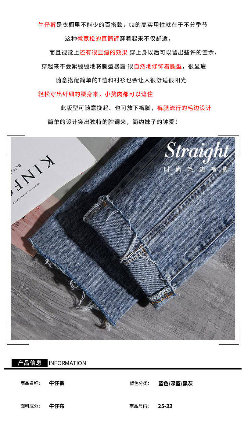 商品名稱:女新款直筒牛仔褲韓版女士高腰顯瘦修身長褲卷毛邊九分褲