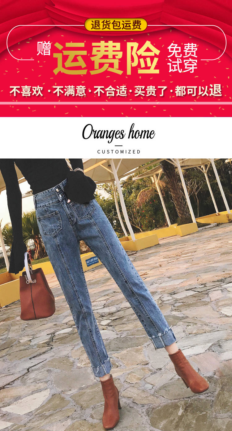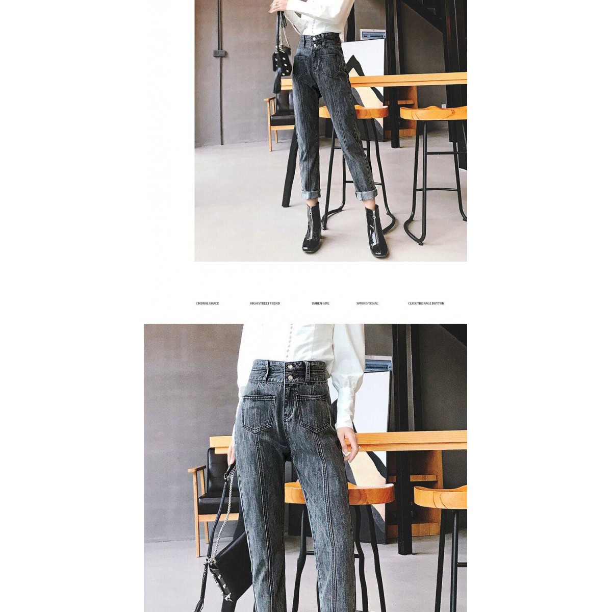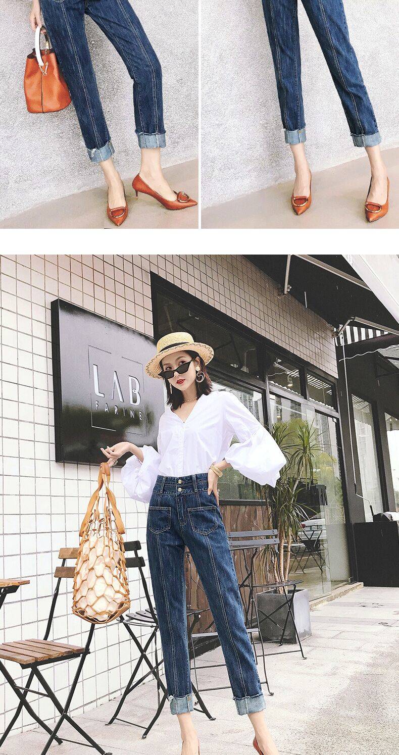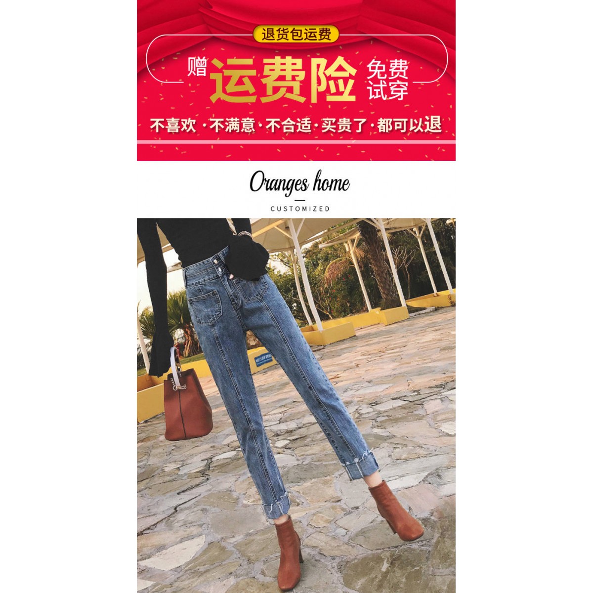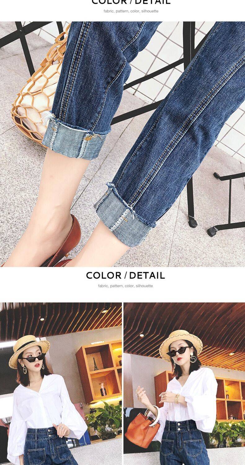 商品名稱:女新款直筒牛仔褲韓版女士高腰顯瘦修身長褲卷毛邊九分褲