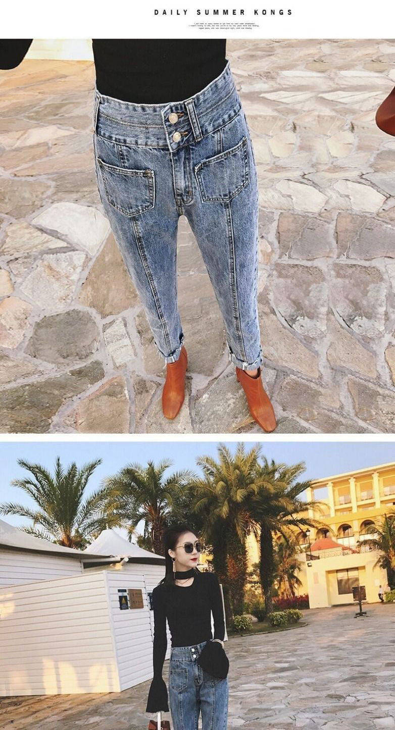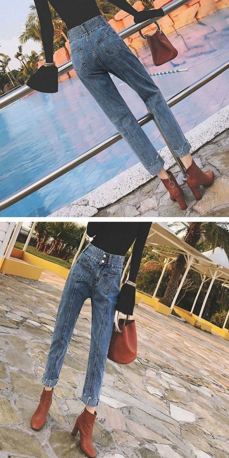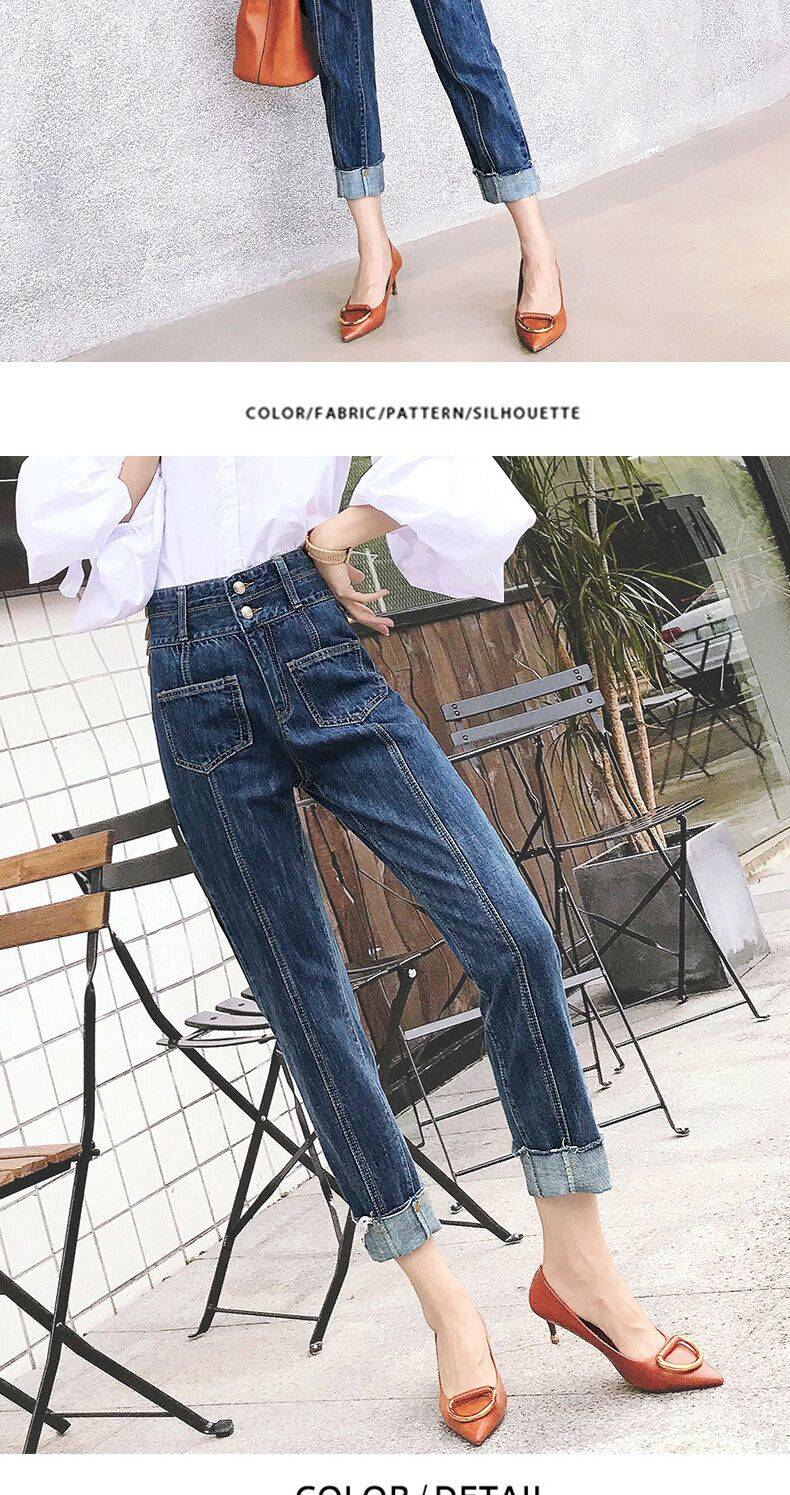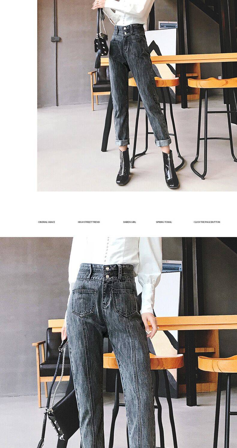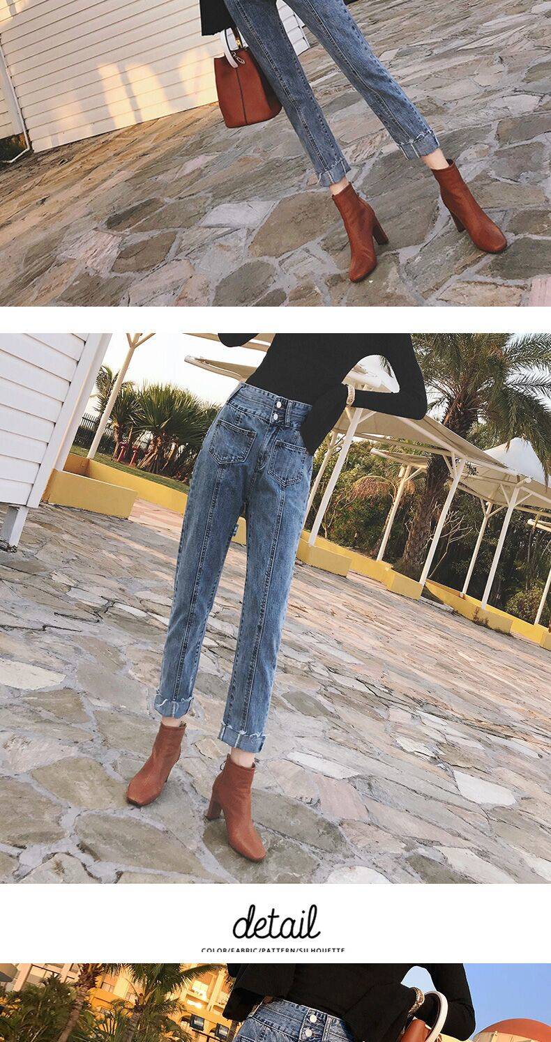 商品名稱:女新款直筒牛仔褲韓版女士高腰顯瘦修身長褲卷毛邊九分褲