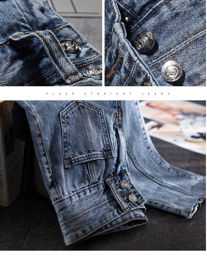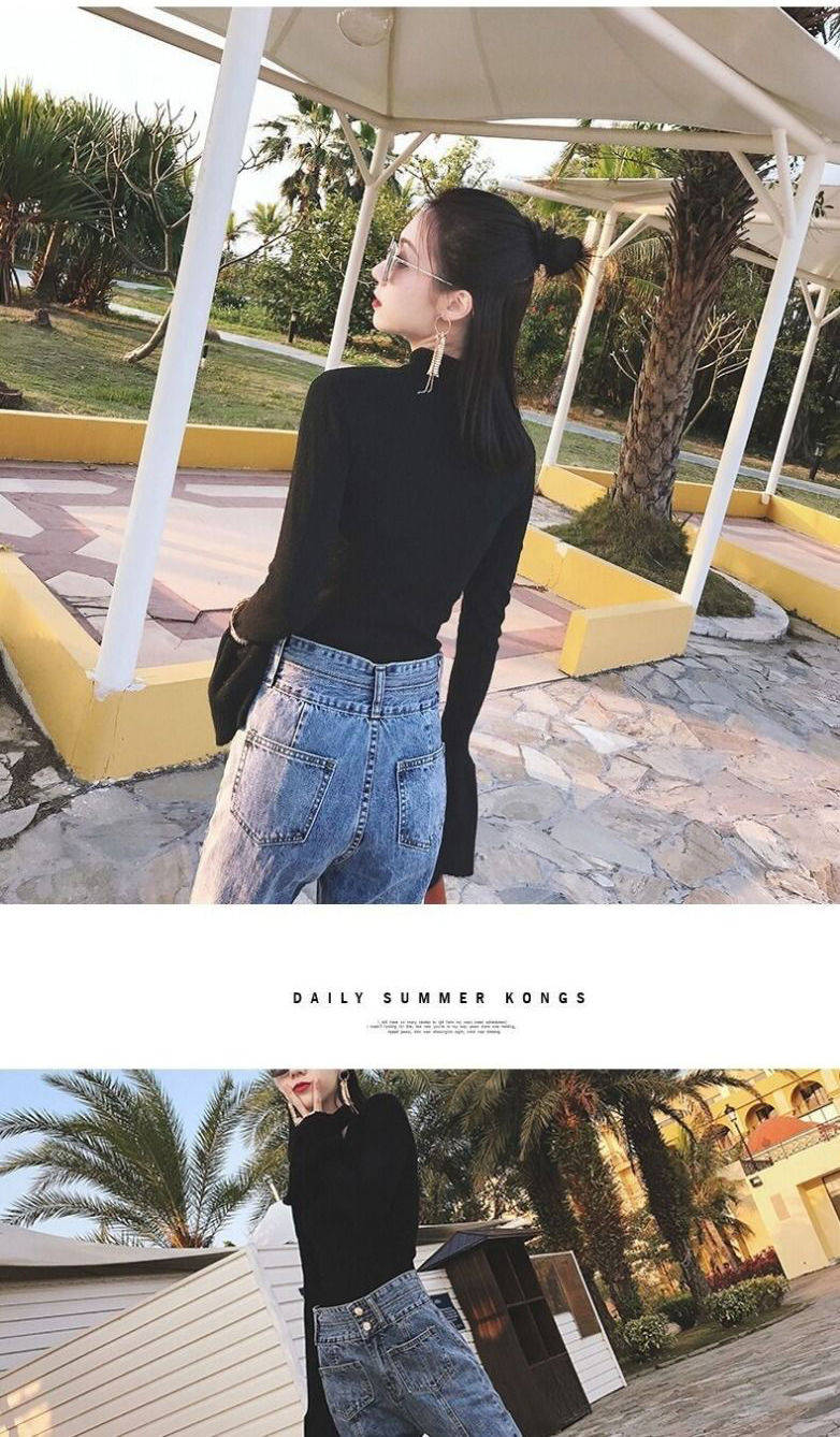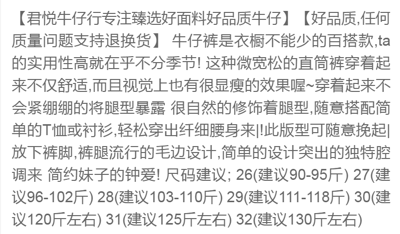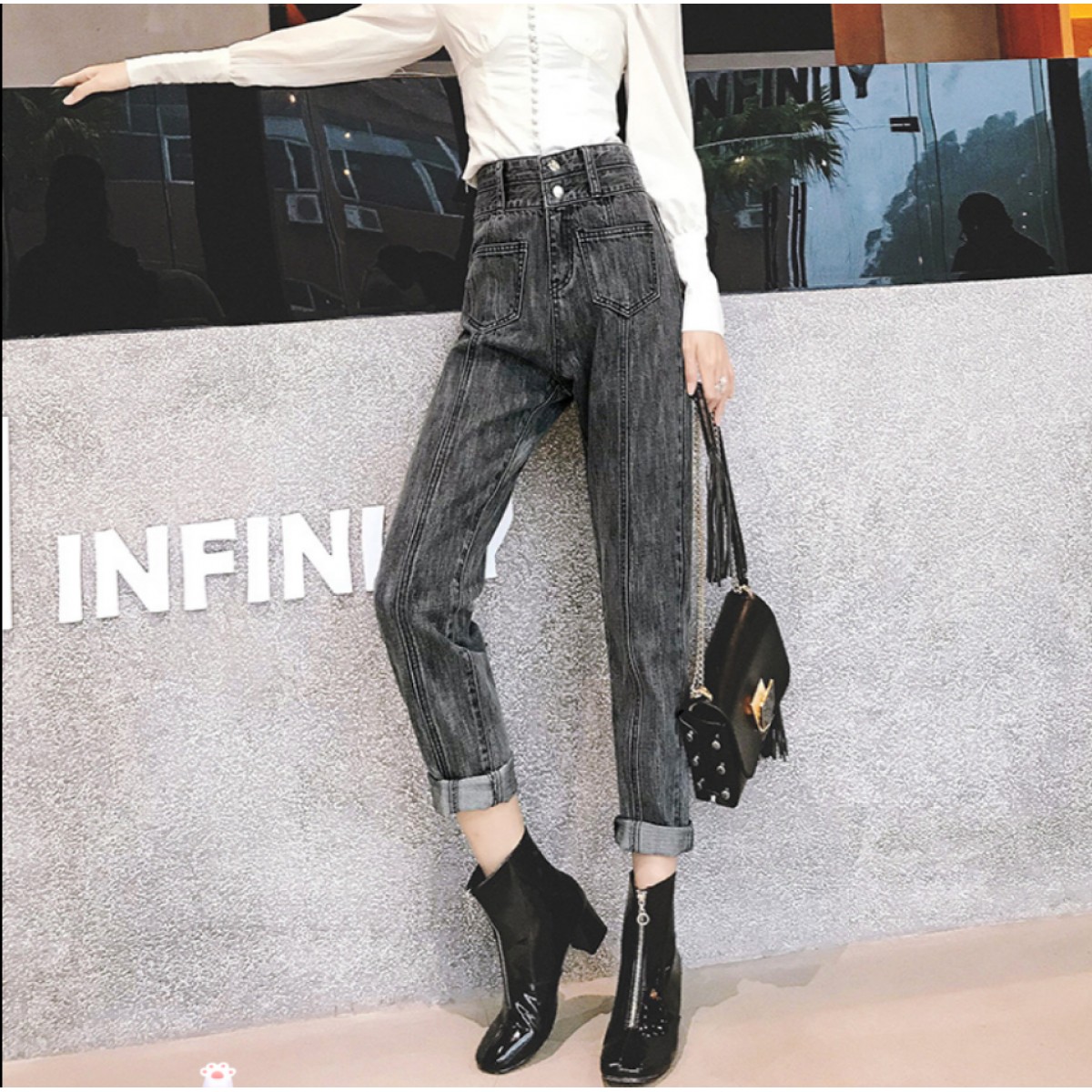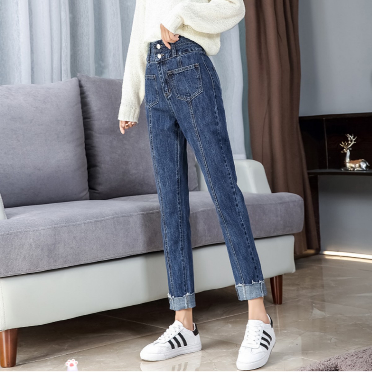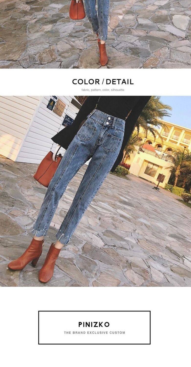 商品名稱:女新款直筒牛仔褲韓版女士高腰顯瘦修身長褲卷毛邊九分褲