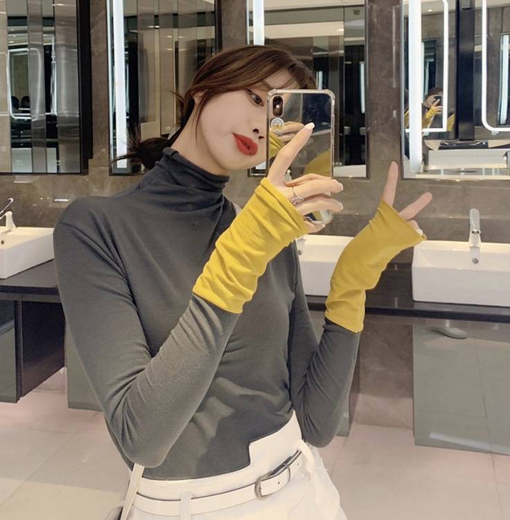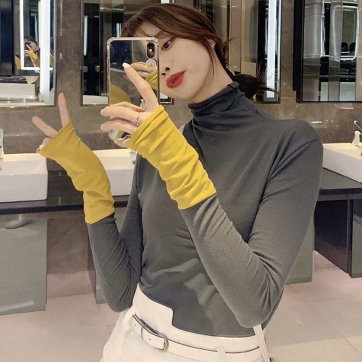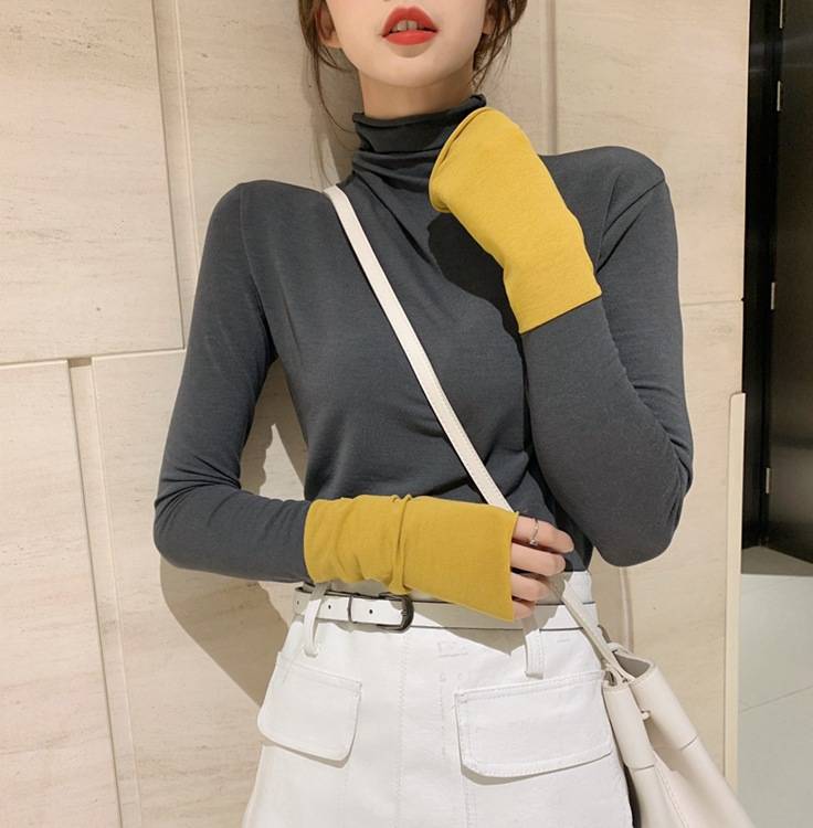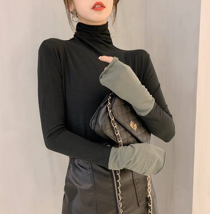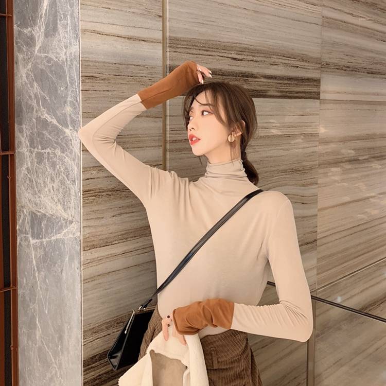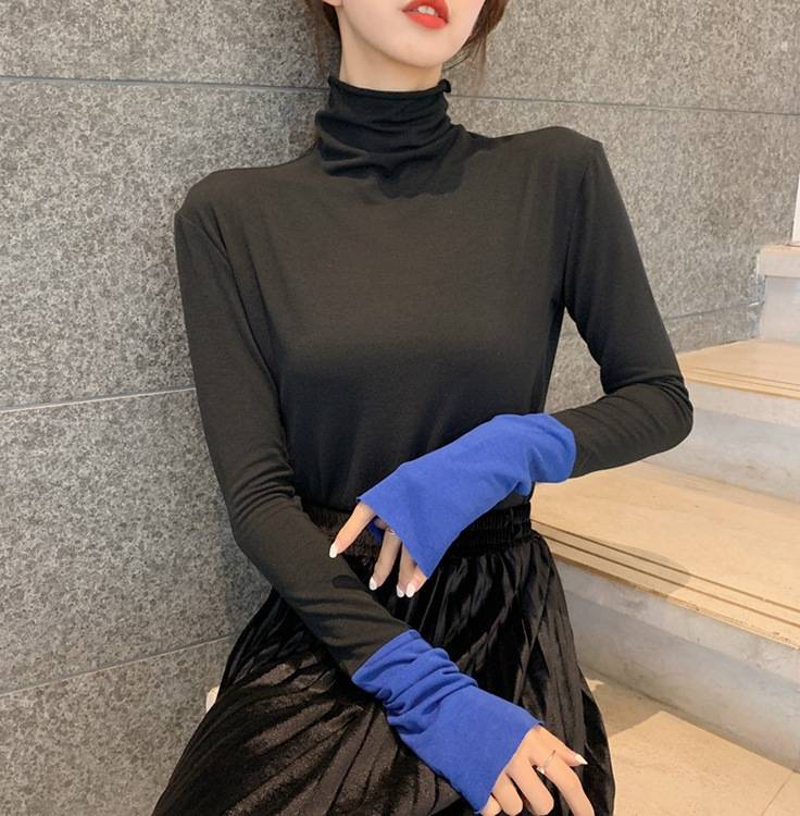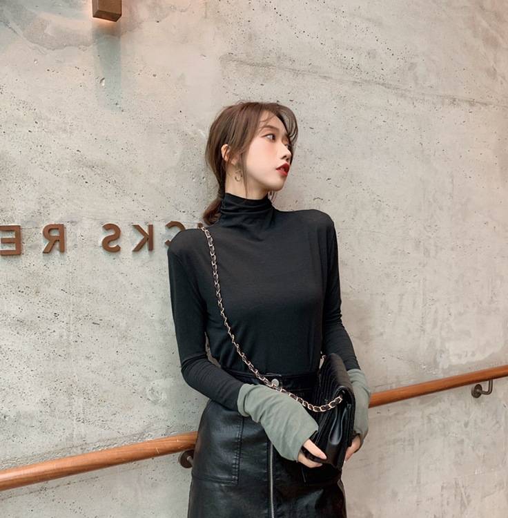 高領(lǐng)t恤女衣服學(xué)生韓版寬松秋季加絨上衣百搭緊身長袖打底衫
