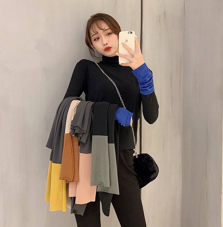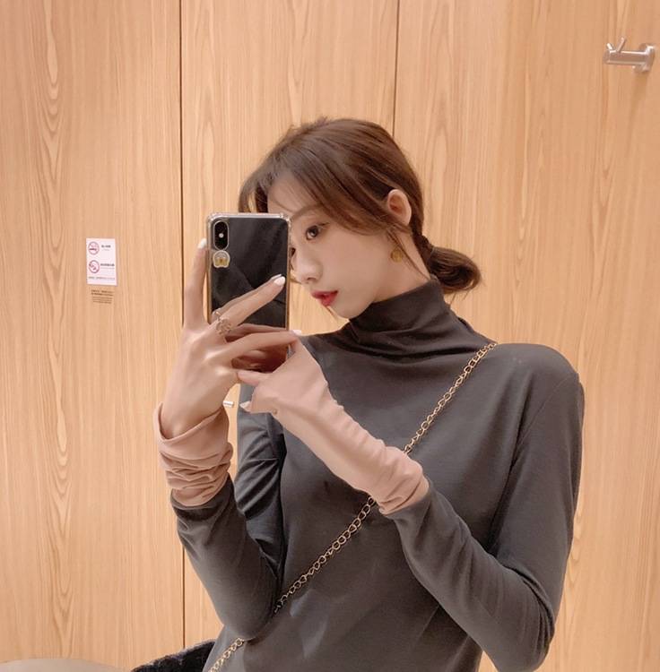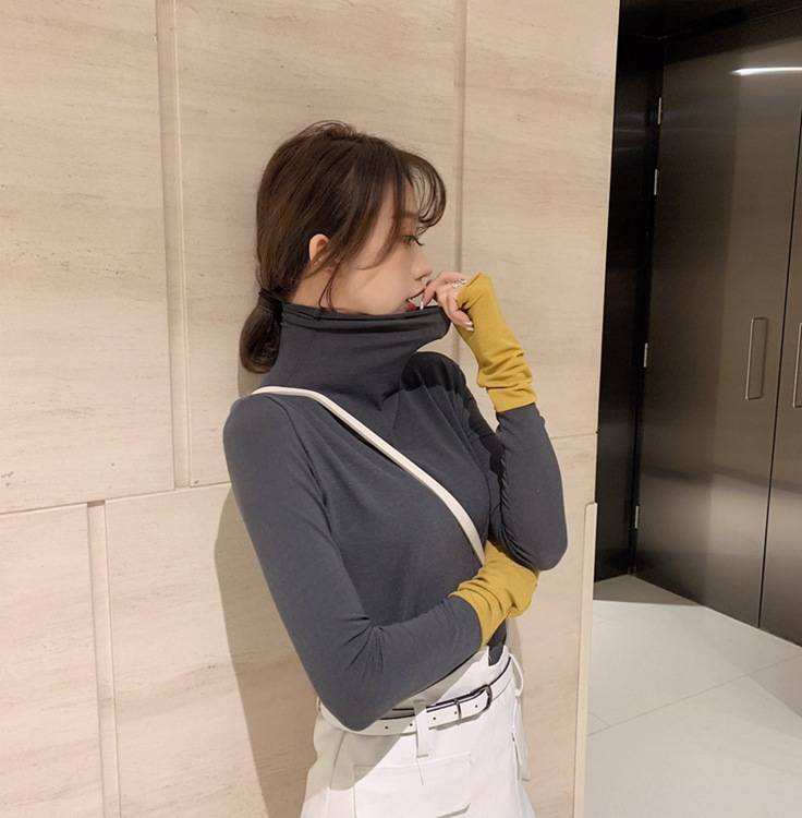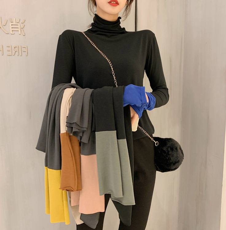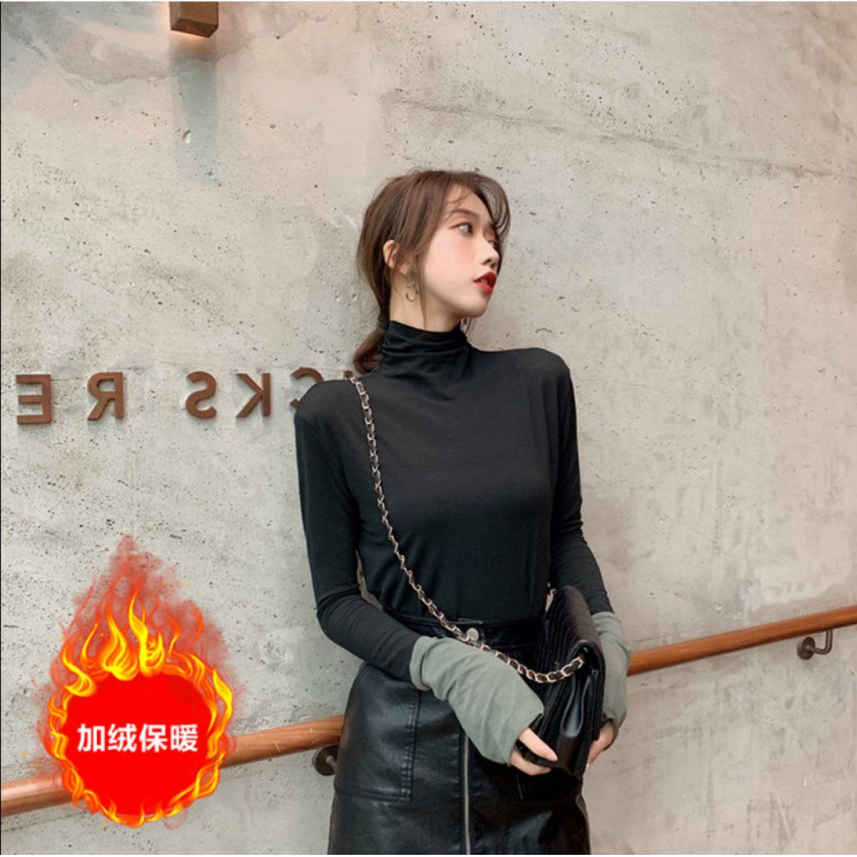 商品名稱:高領(lǐng)t恤女衣服學(xué)生韓版寬松秋季加絨上衣百搭緊身長袖打底衫