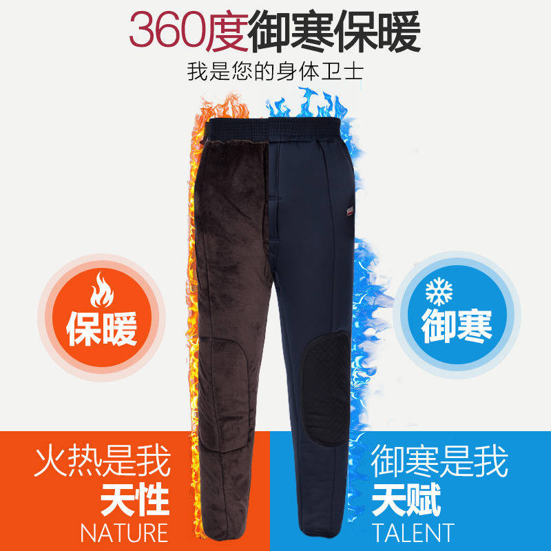 商品名稱:冬季中老年人棉褲男加絨加厚高腰深檔護(hù)膝寬松大碼老人爸爸保暖褲