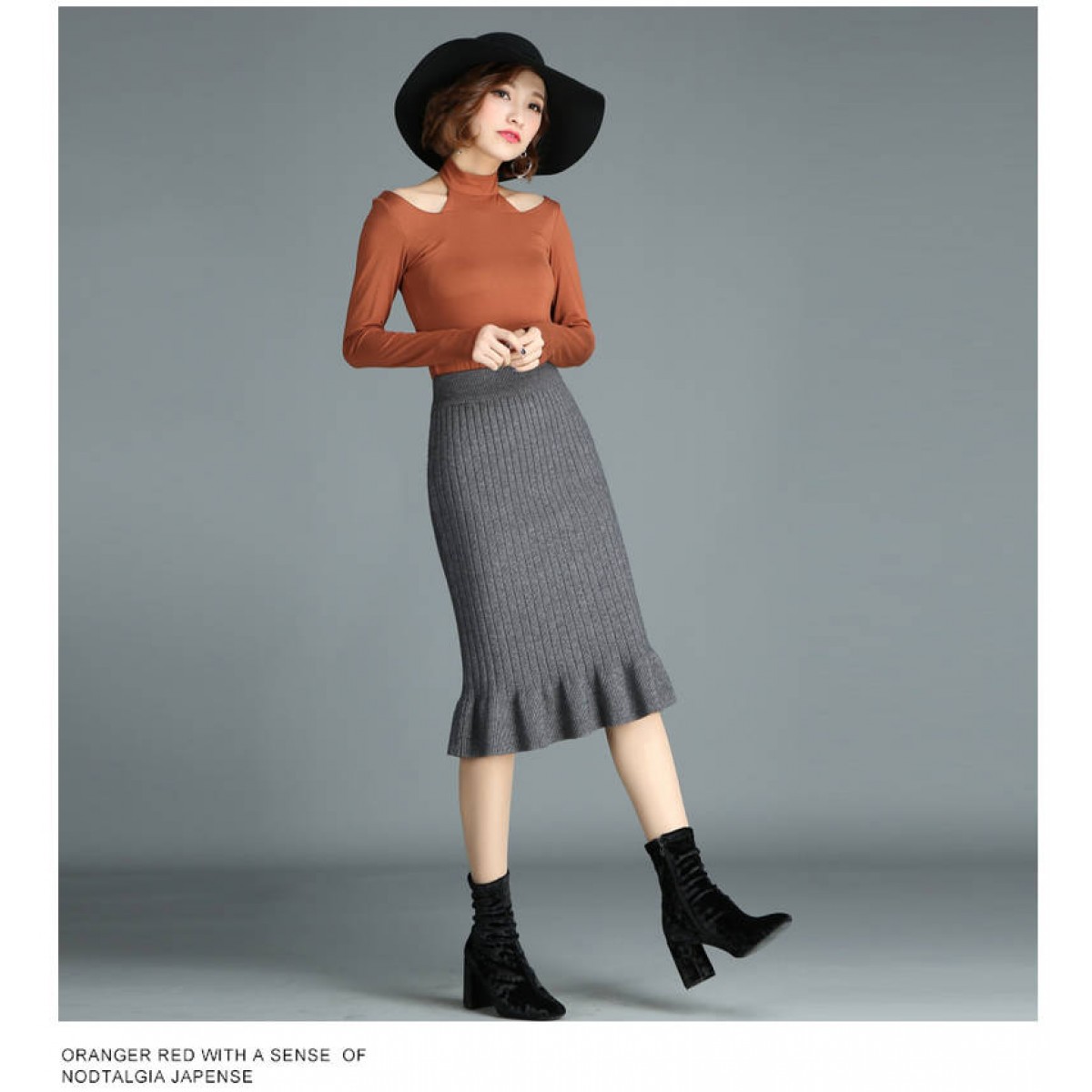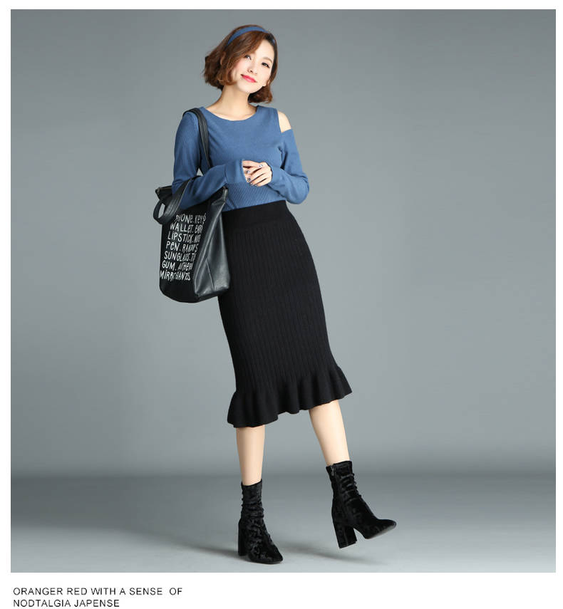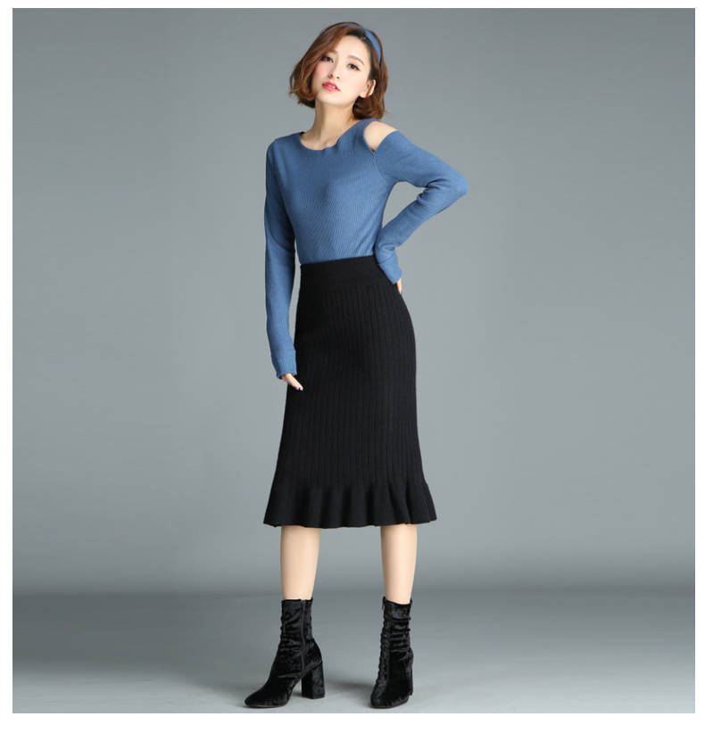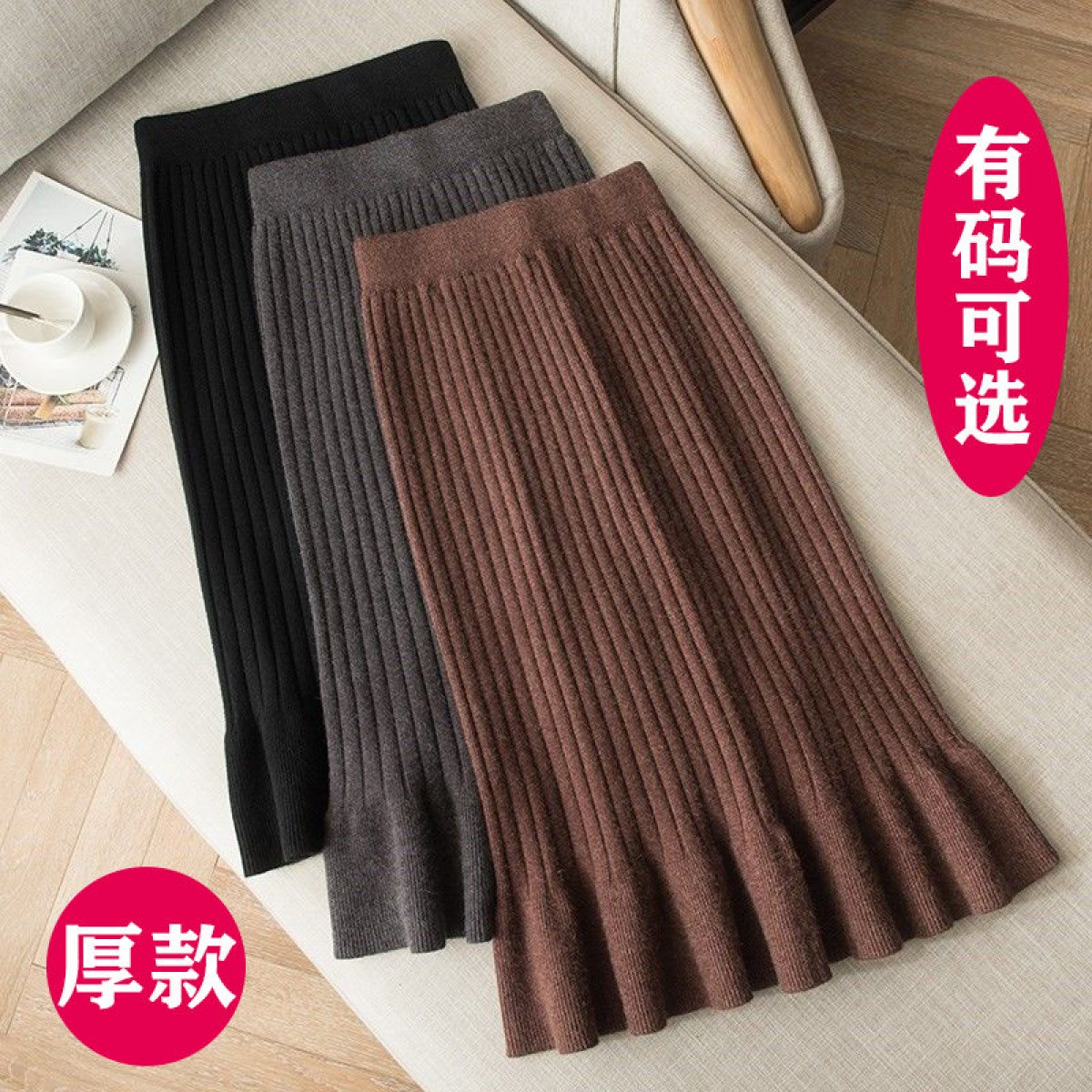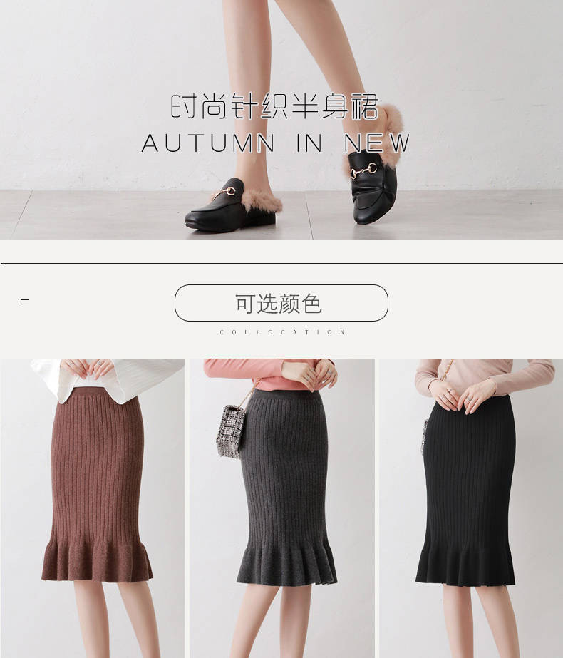 商品名稱:冬季厚款毛線魚尾一步裙高腰百搭中長款針織包臀裙半身裙女
