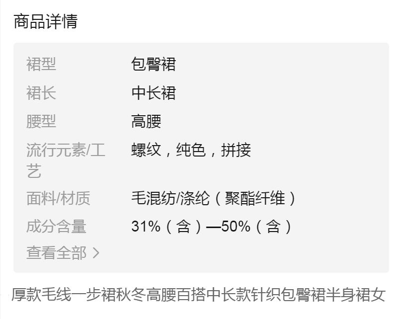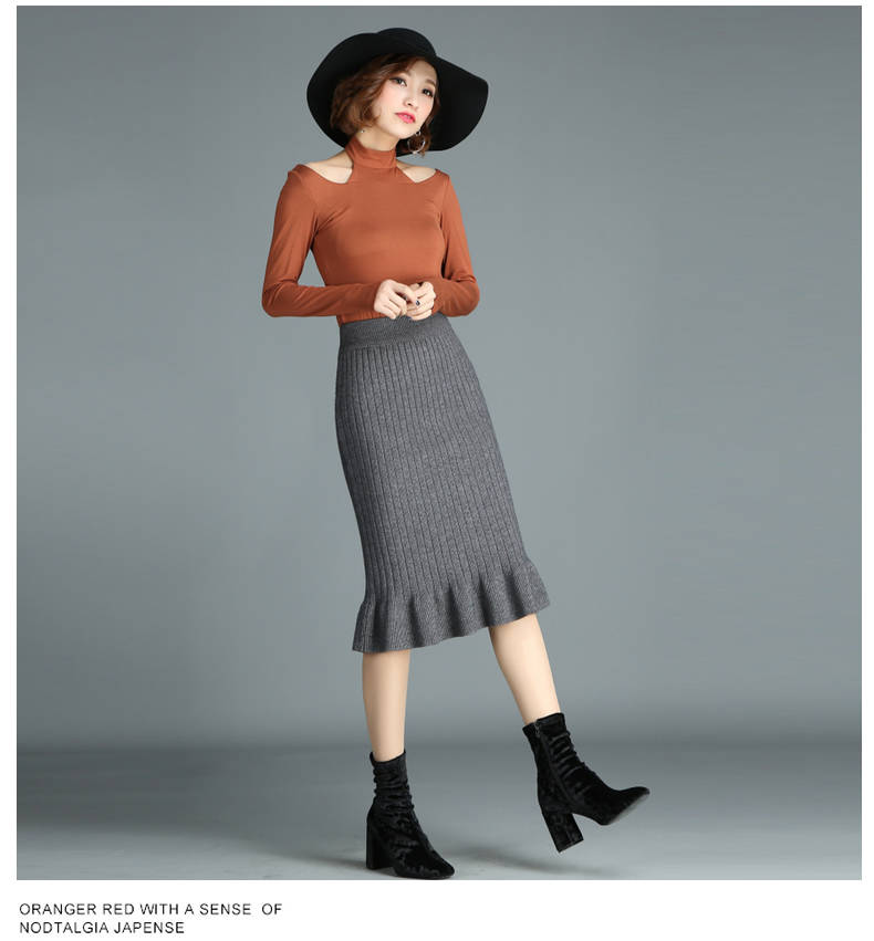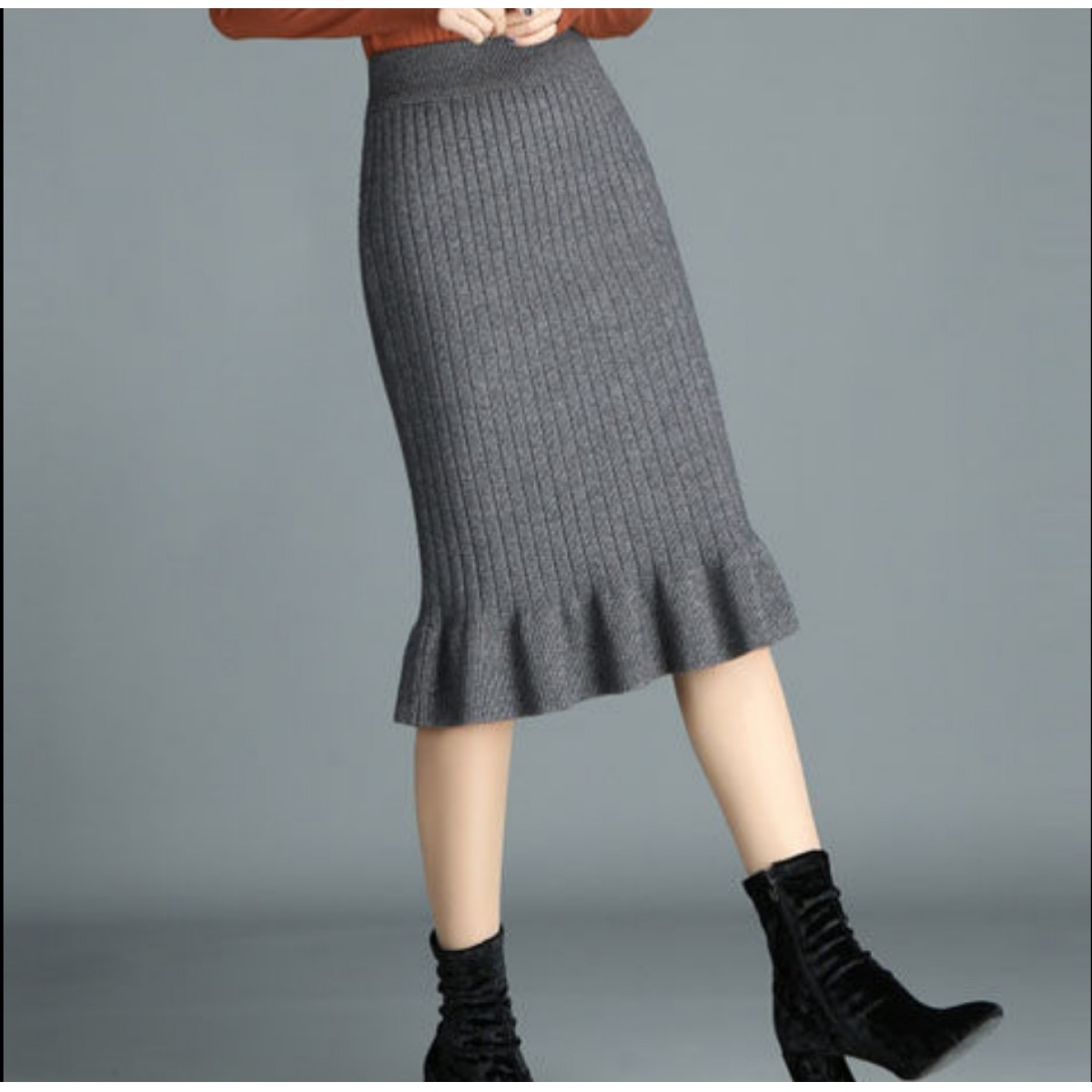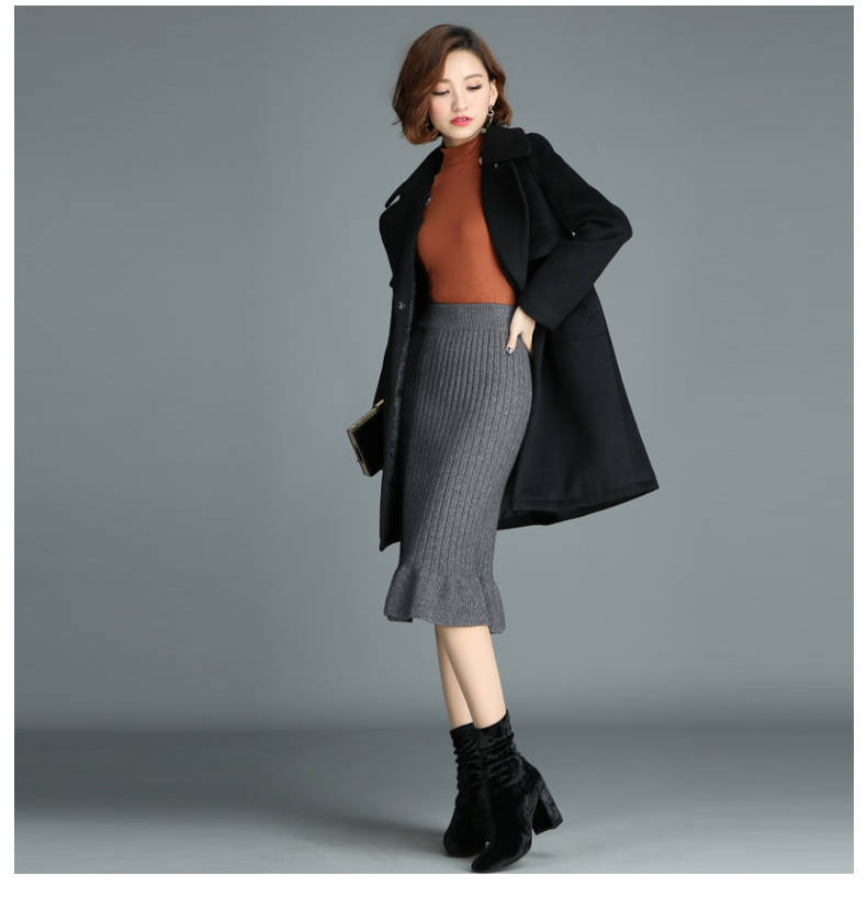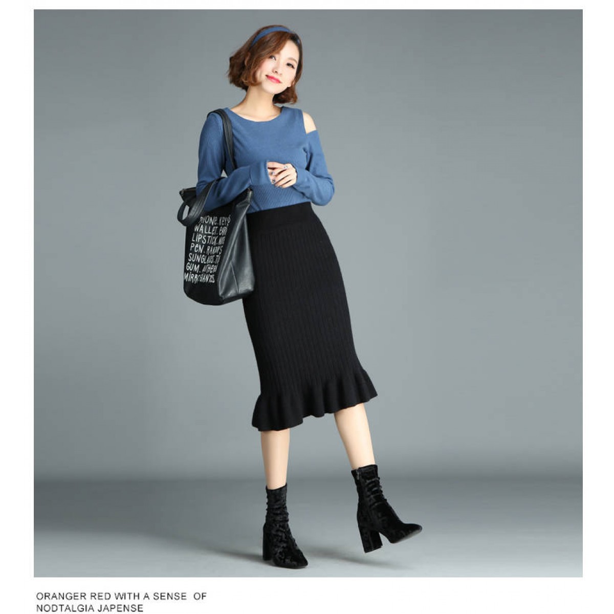 商品名稱:冬季厚款毛線魚尾一步裙高腰百搭中長款針織包臀裙半身裙女