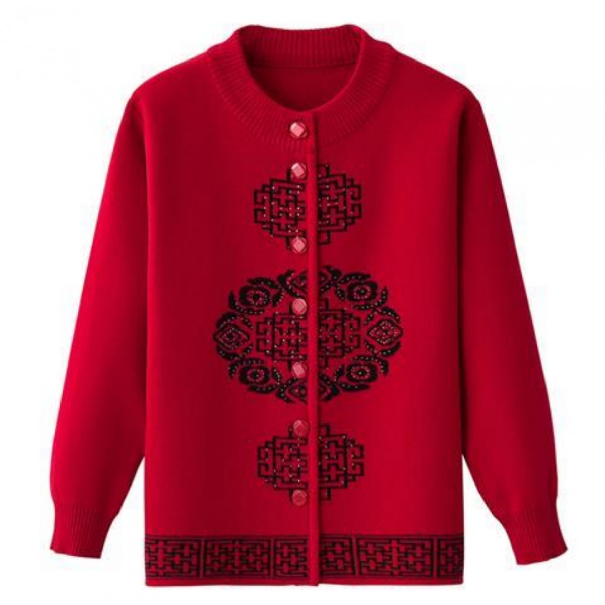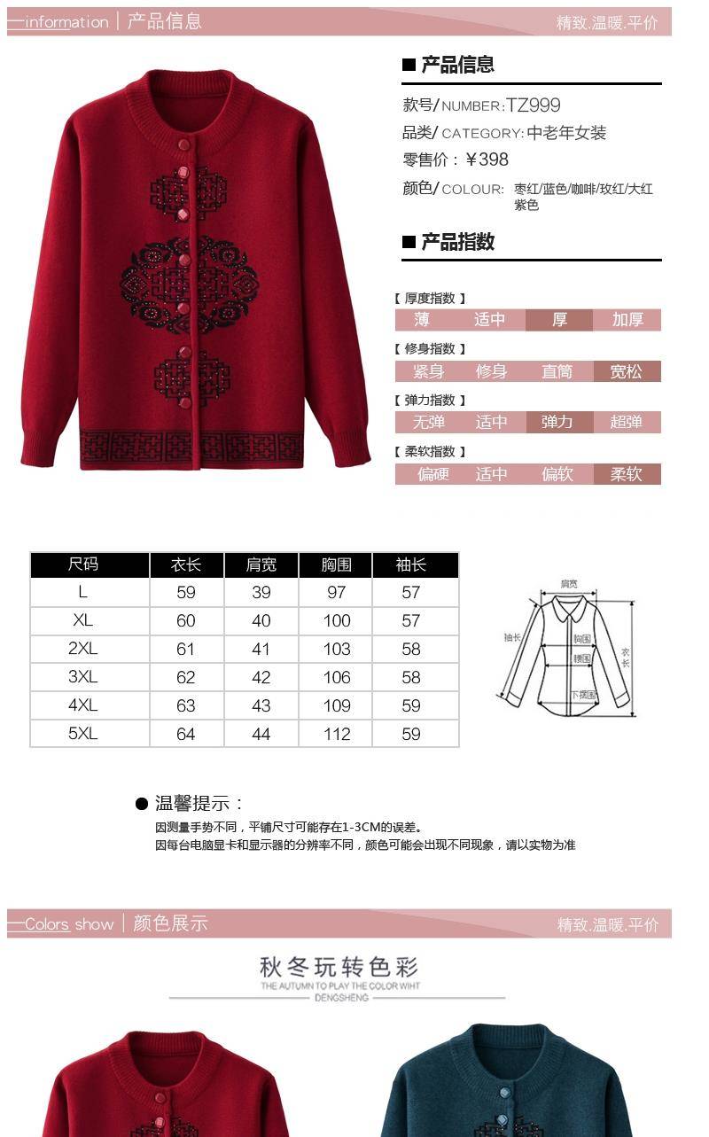 商品名稱:中老年人女裝秋冬裝針織衫毛衣媽媽裝春裝老太太奶奶唐裝開衫毛衫