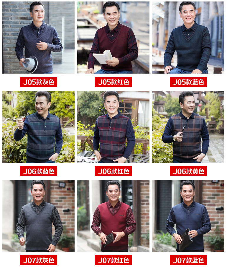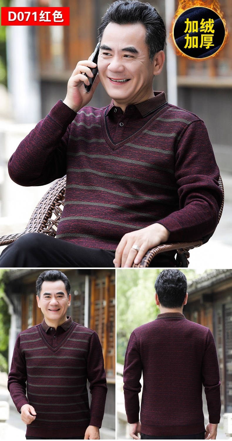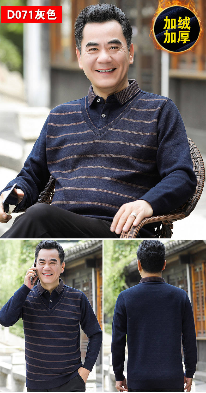 商品名稱:爸爸裝冬裝加絨加厚毛衣中年男士假兩件針織衫男裝保暖衣