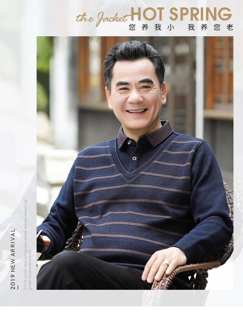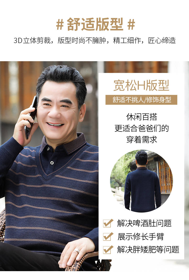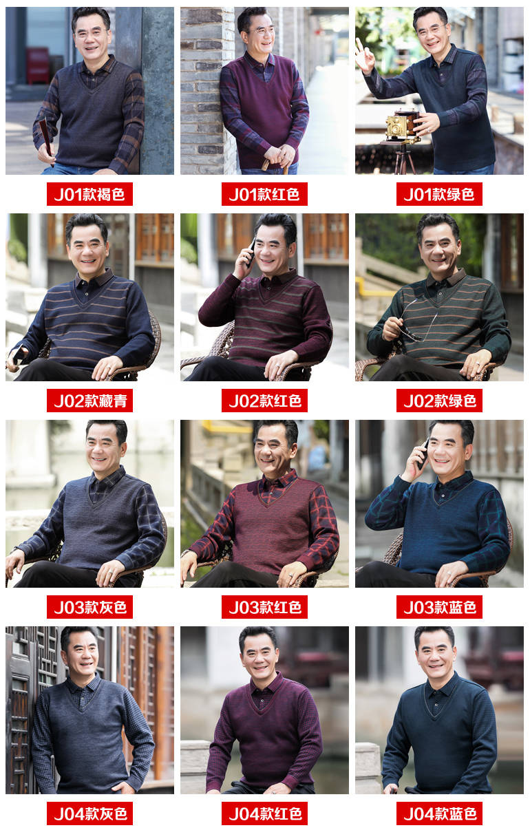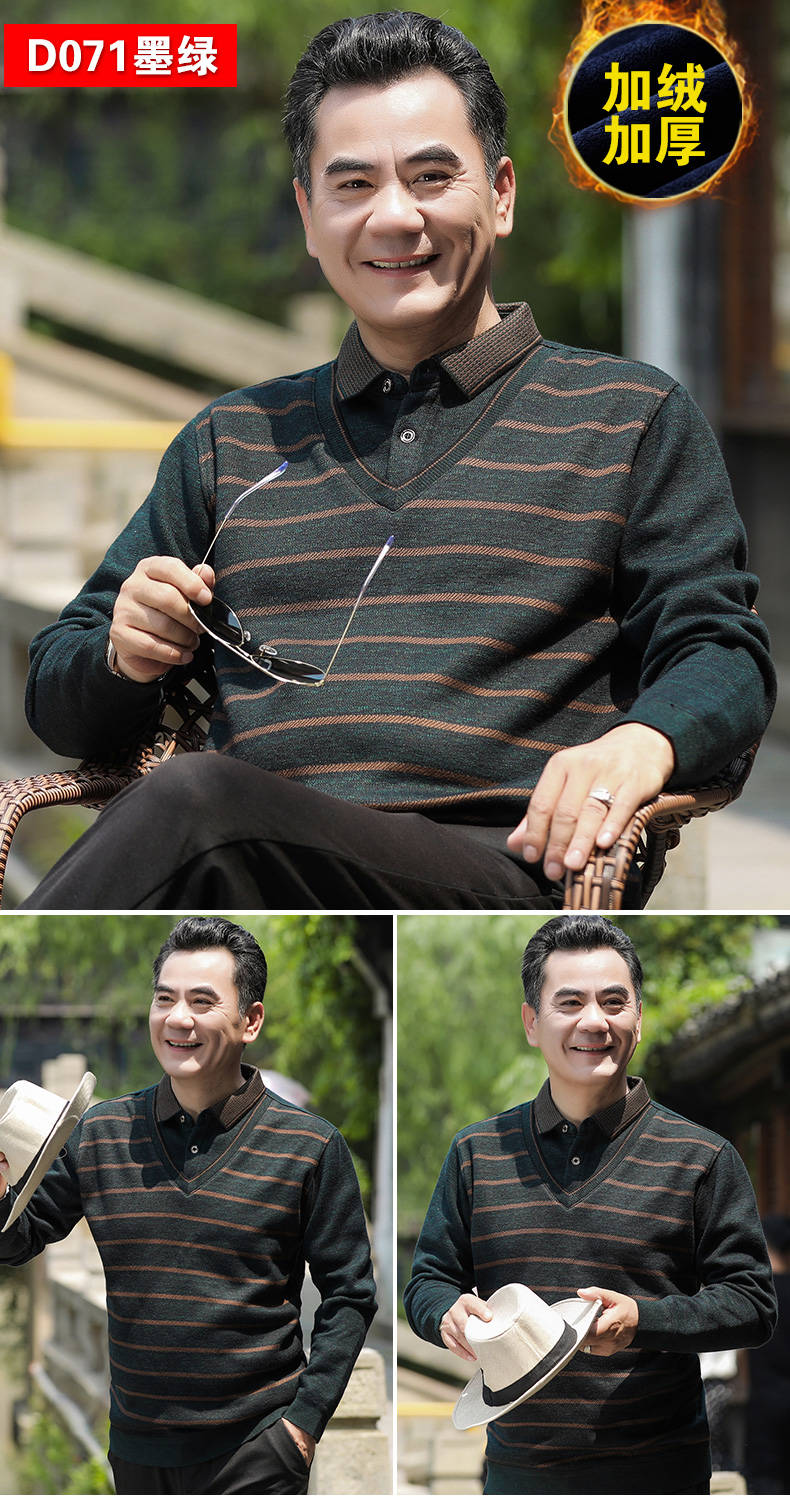 商品名稱:爸爸裝冬裝加絨加厚毛衣中年男士假兩件針織衫男裝保暖衣
