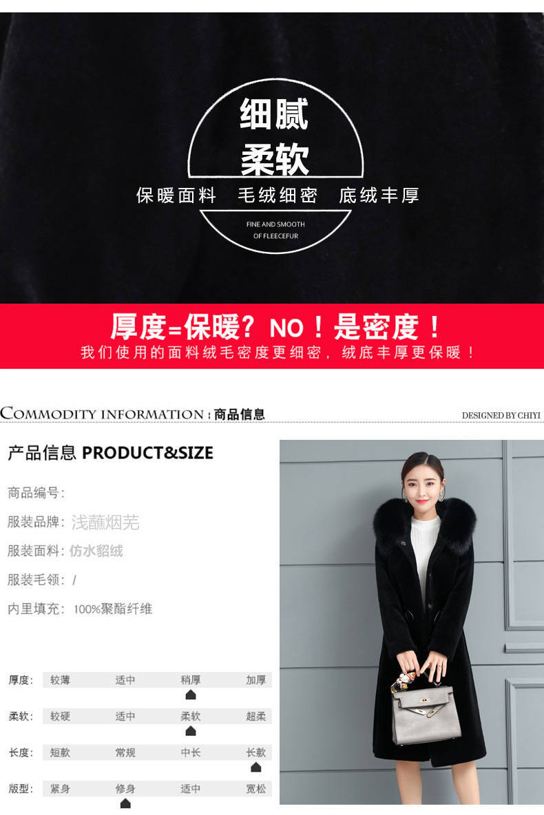 商品名稱:仿貂皮大衣女中長款秋冬季水貂絨仿皮草連帽外套女顯瘦新款大碼加厚