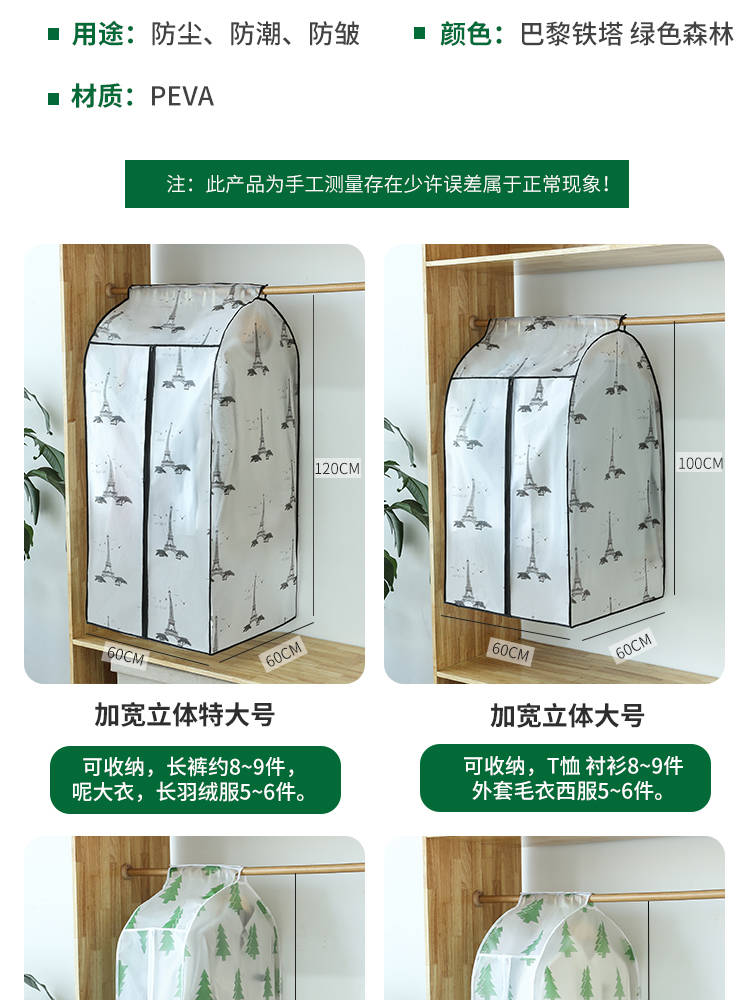 商品名稱:防塵袋衣服套掛衣袋大衣物架家用西服防塵罩透明收納的袋子加厚型