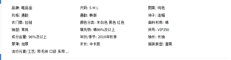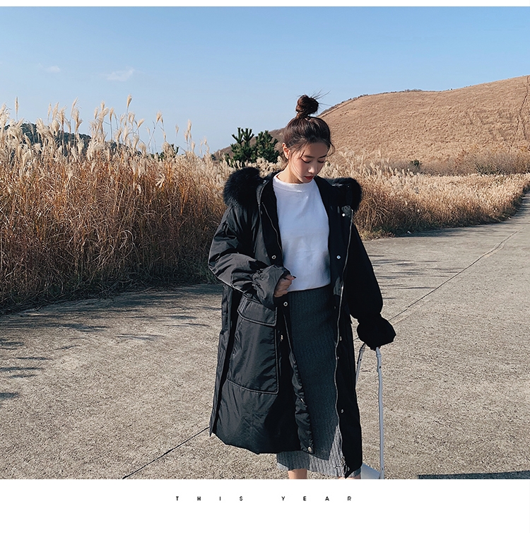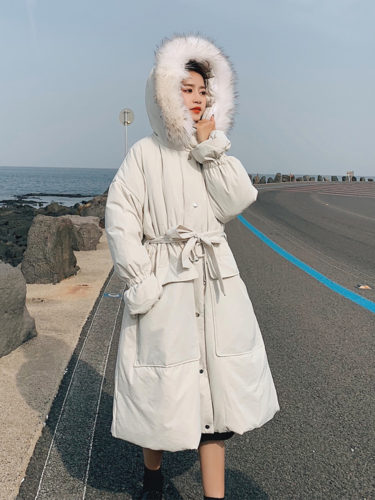 商品名稱:羽絨棉服外套女冬中長款大毛領(lǐng)收腰棉襖oversize面包服潮ins超火