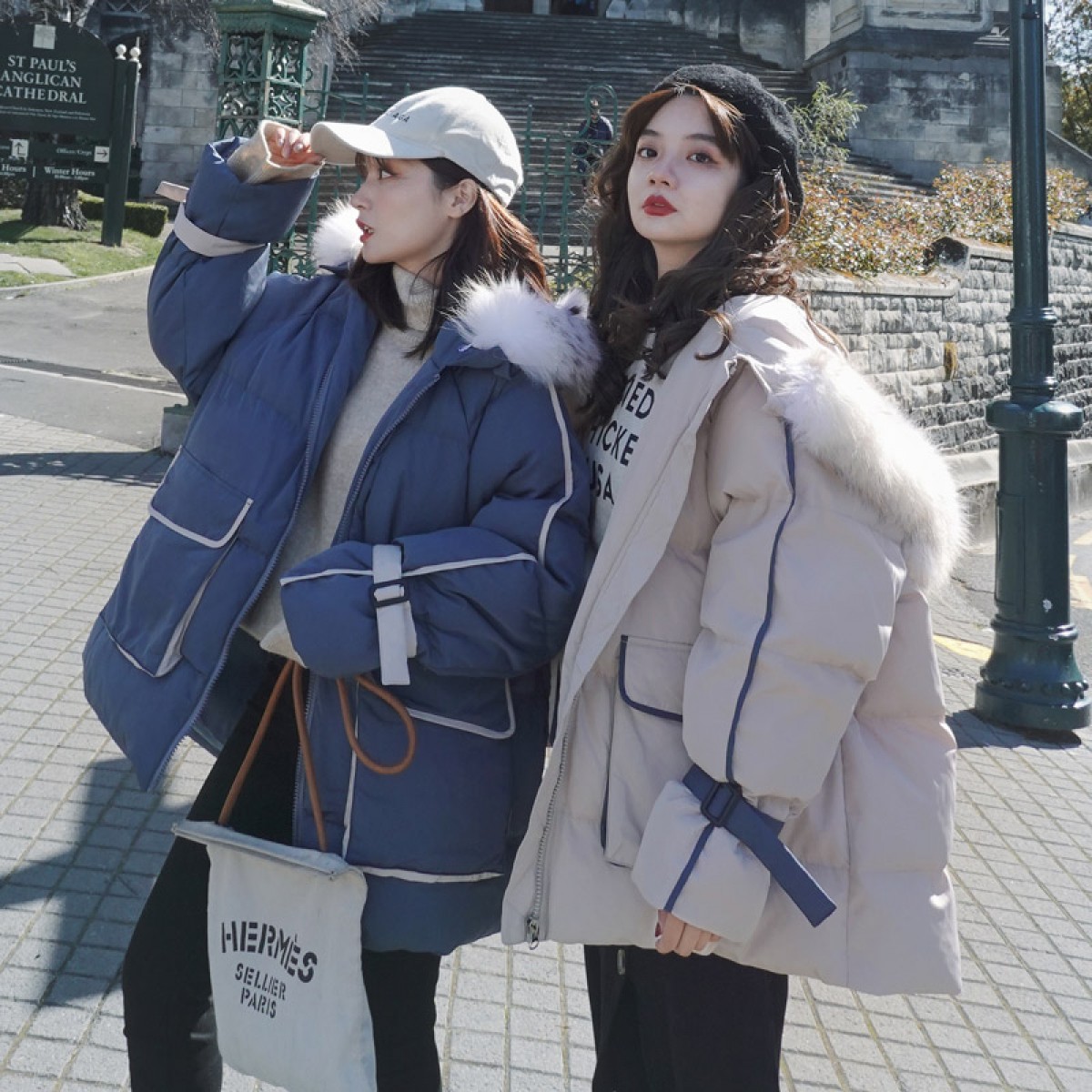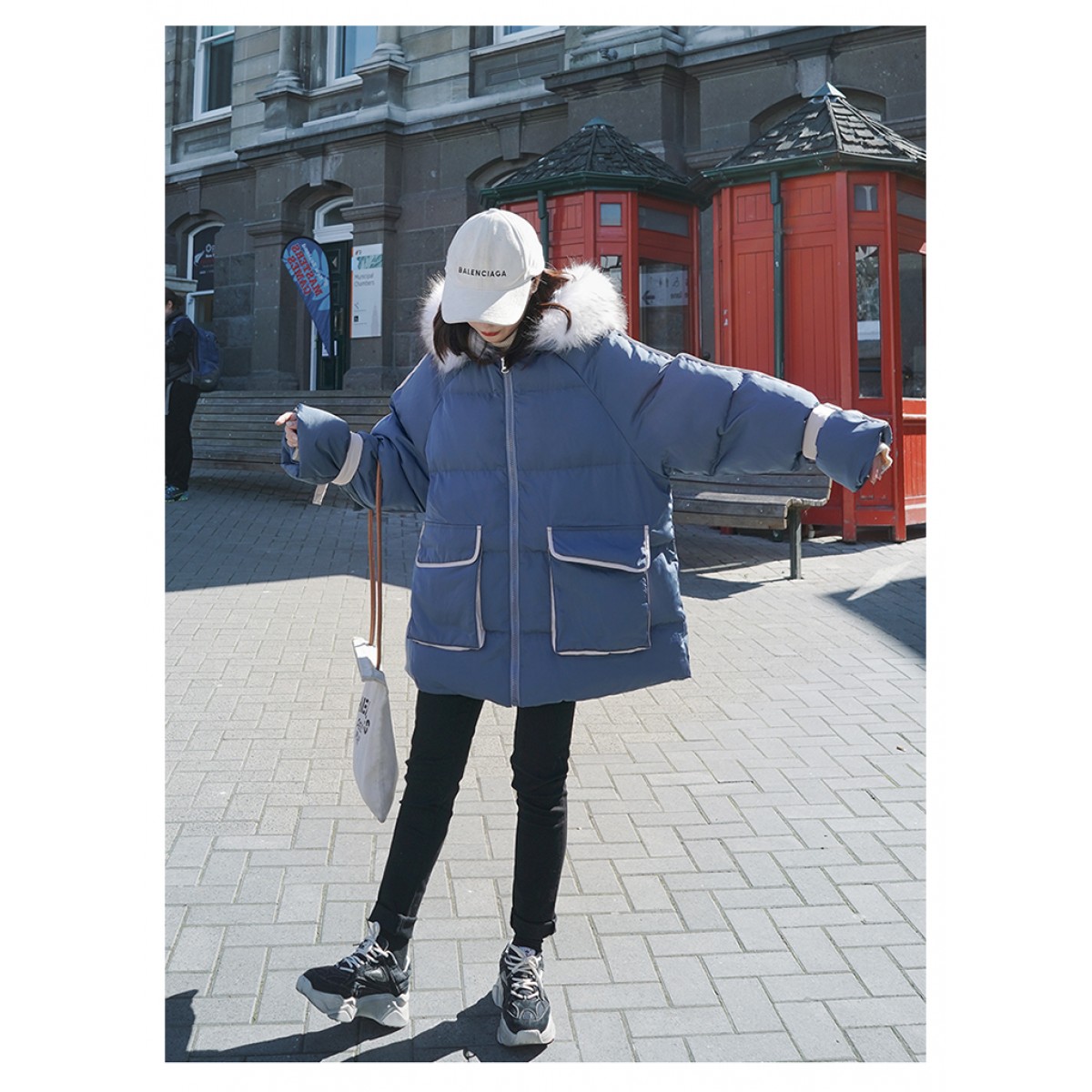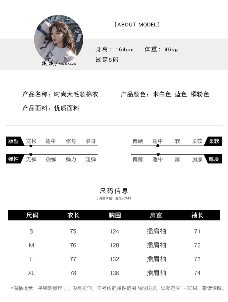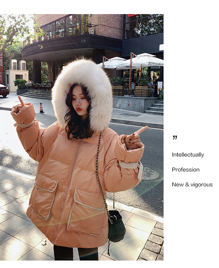 商品名稱:冬季外套新款加厚棉衣棉服毛領(lǐng)韓版寬松棉襖潮ins工裝面包服
