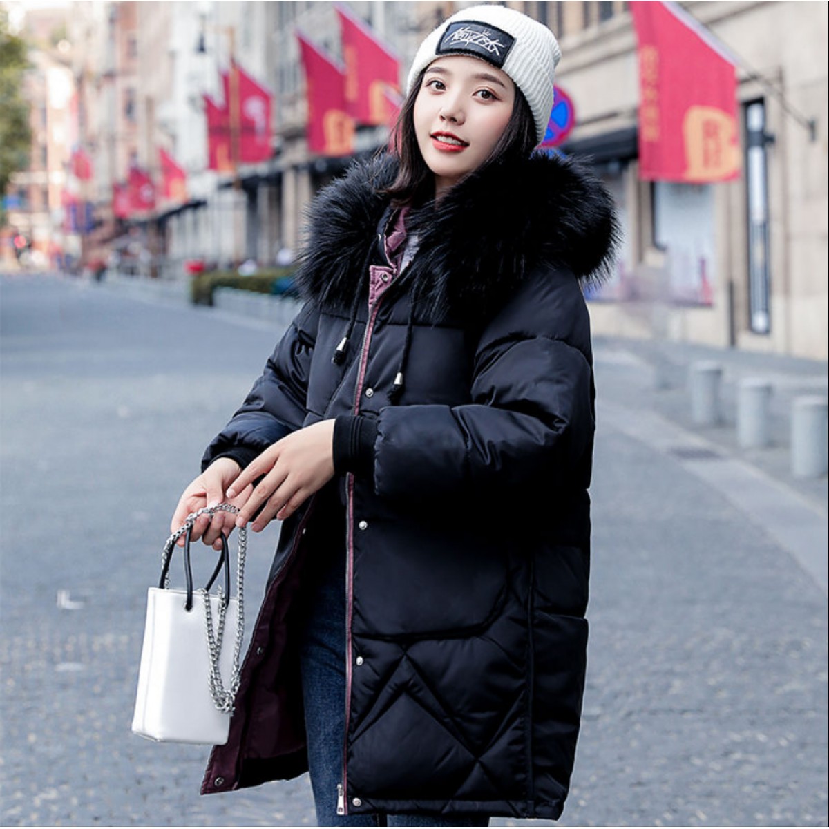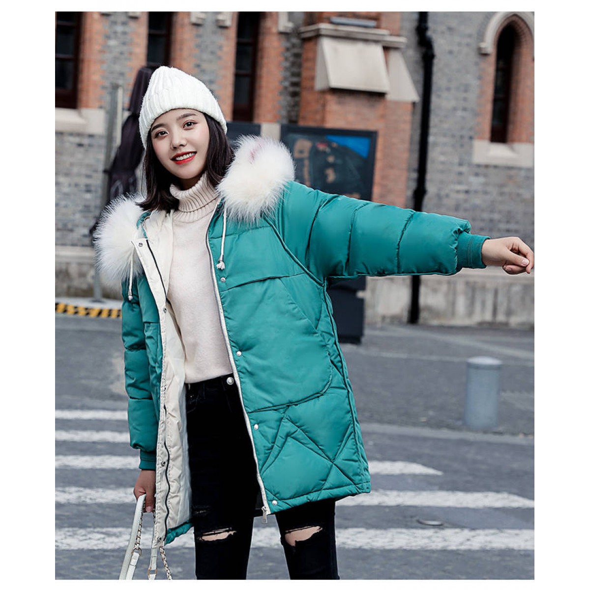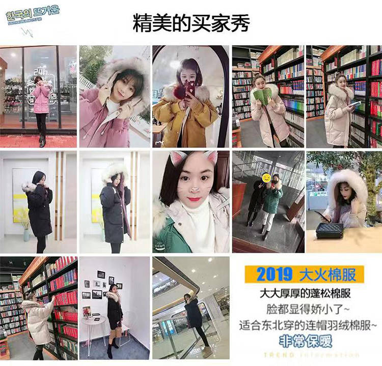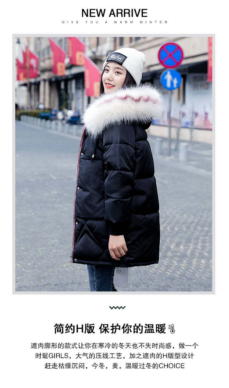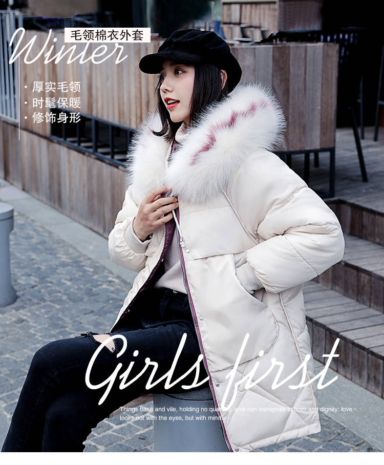 商品名稱:中長款棉服女2019新款韓版寬松顯瘦加厚ins反季羽絨棉衣外套女冬