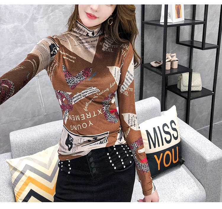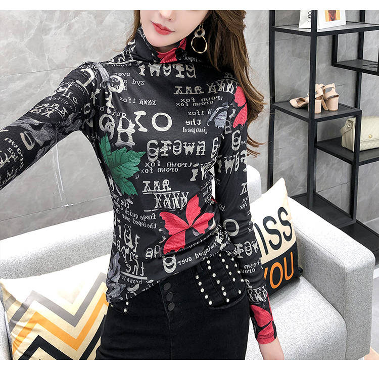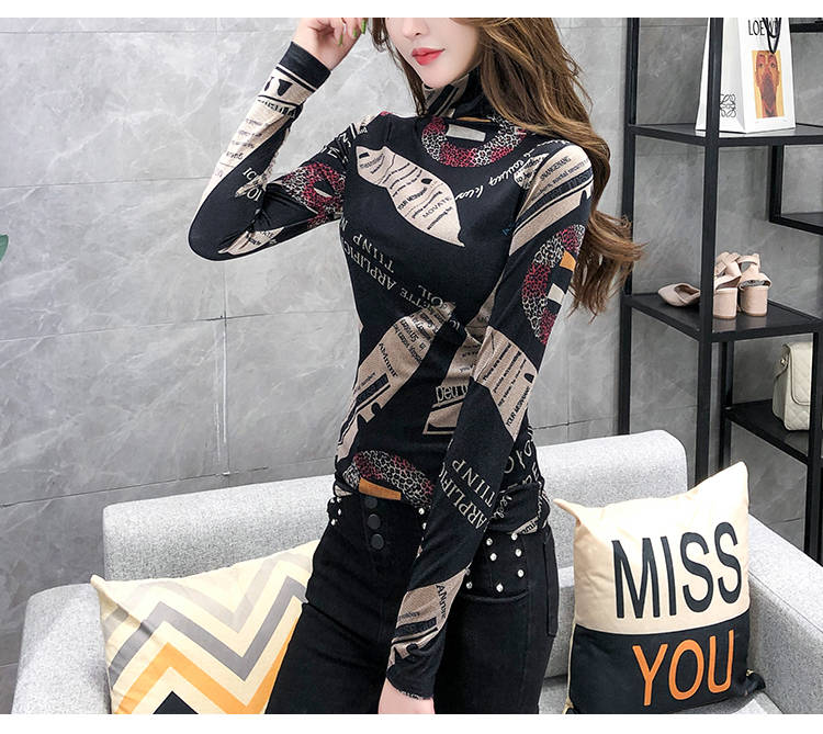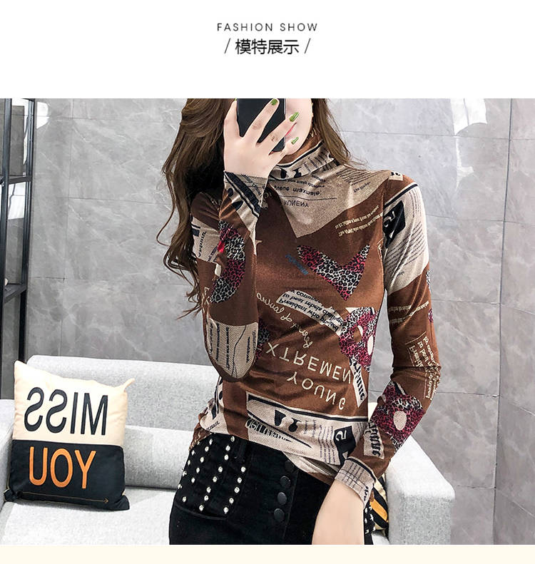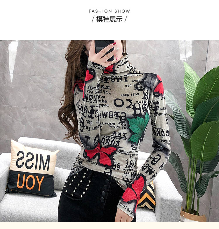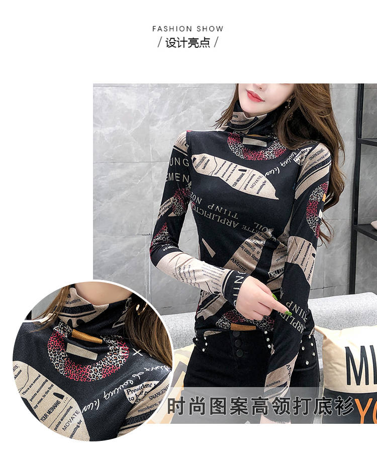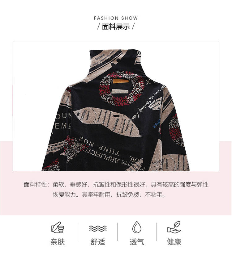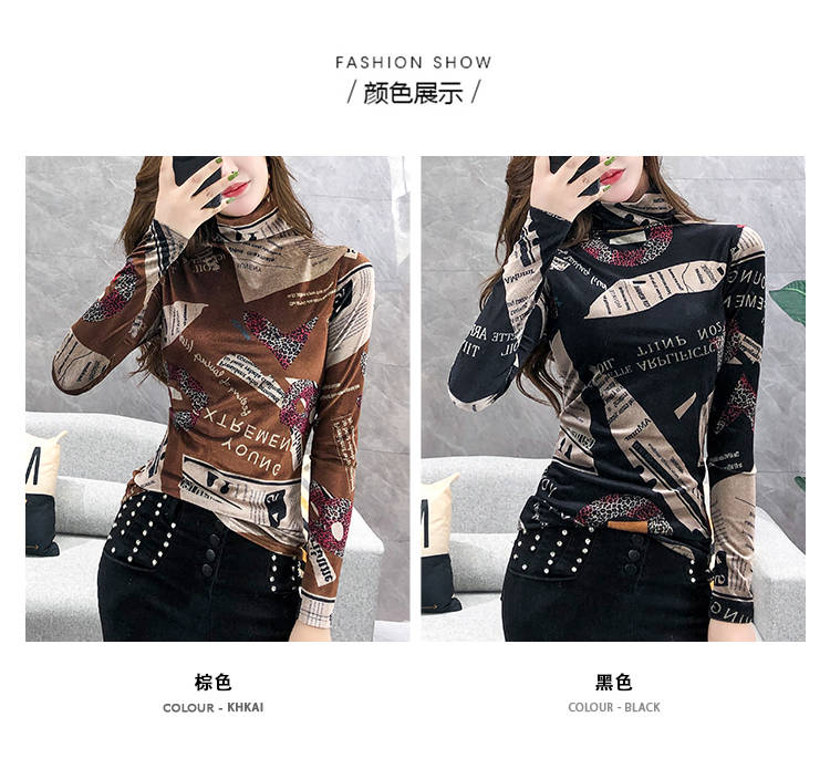 商品名稱:加絨保暖T恤打底衫女2019小衫女花色秋冬氣質(zhì)高領(lǐng)長袖時尚百搭潮