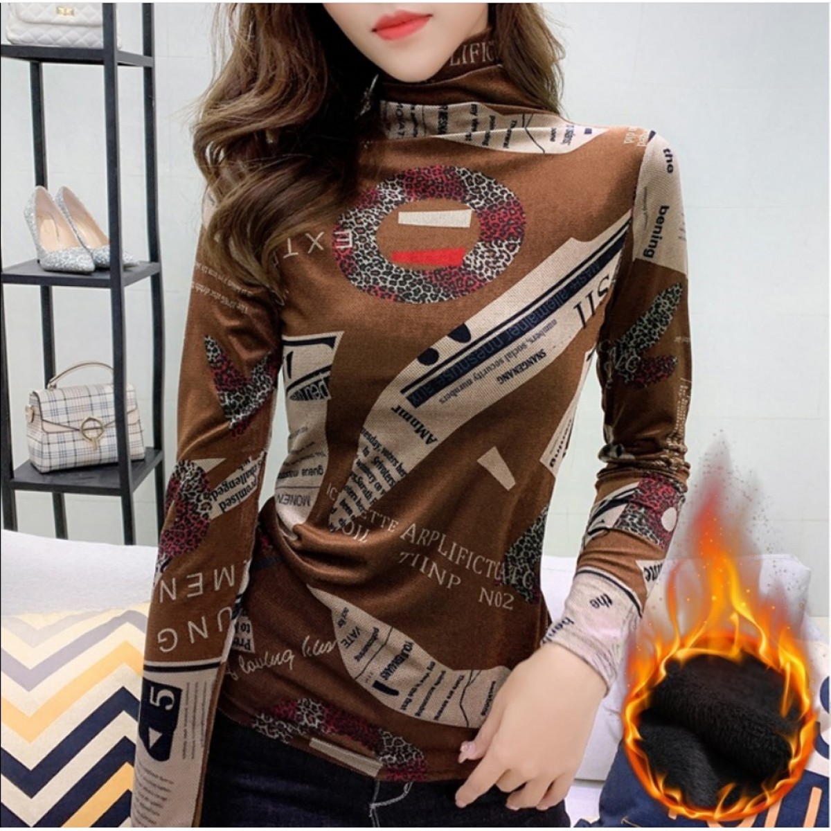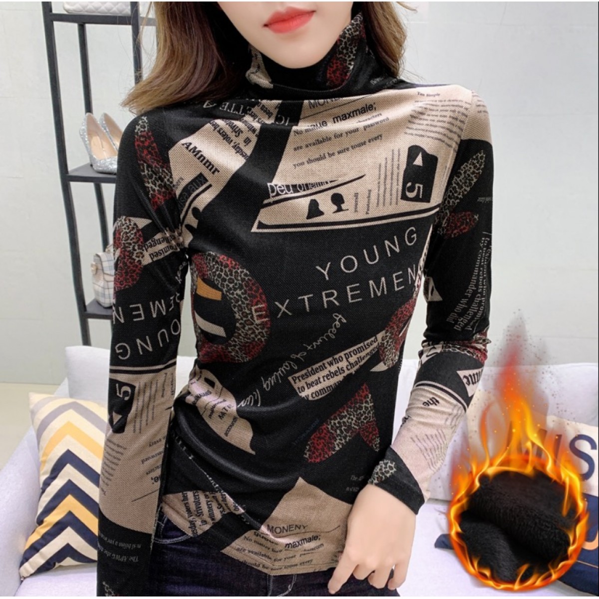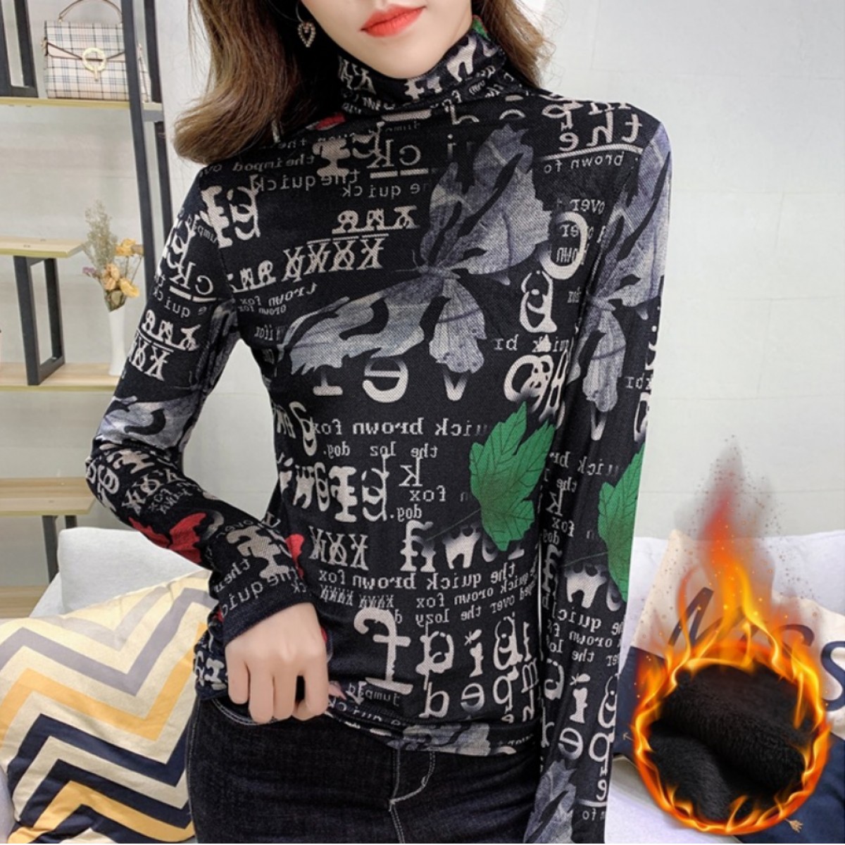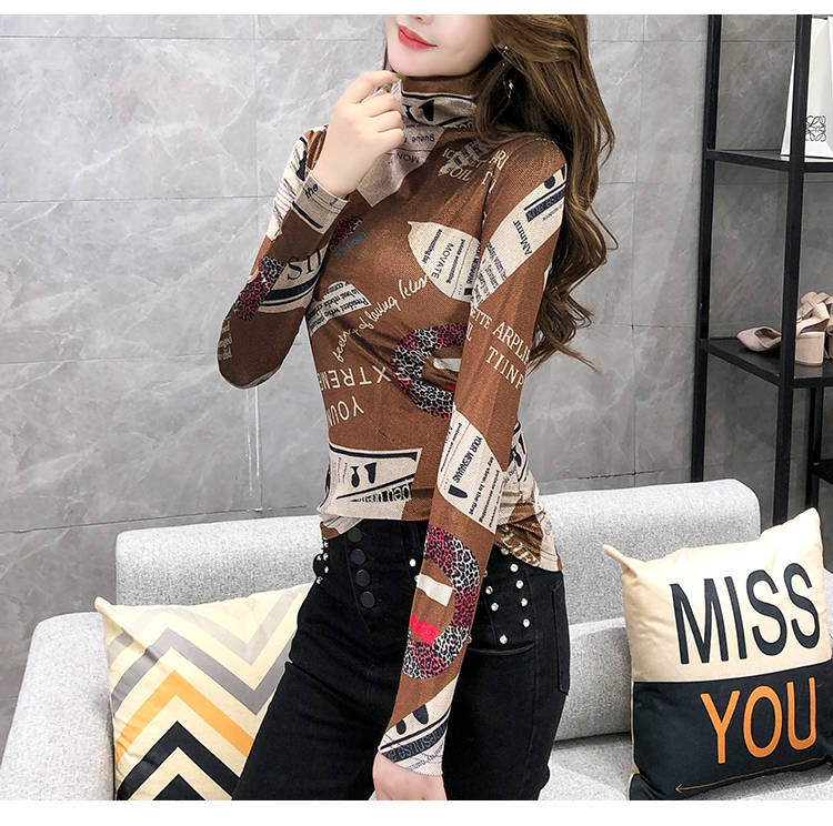 商品名稱:加絨保暖T恤打底衫女2019小衫女花色秋冬氣質(zhì)高領(lǐng)長袖時尚百搭潮