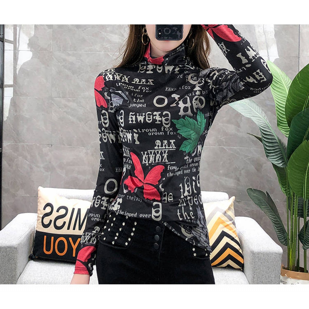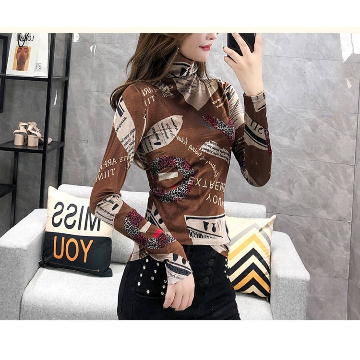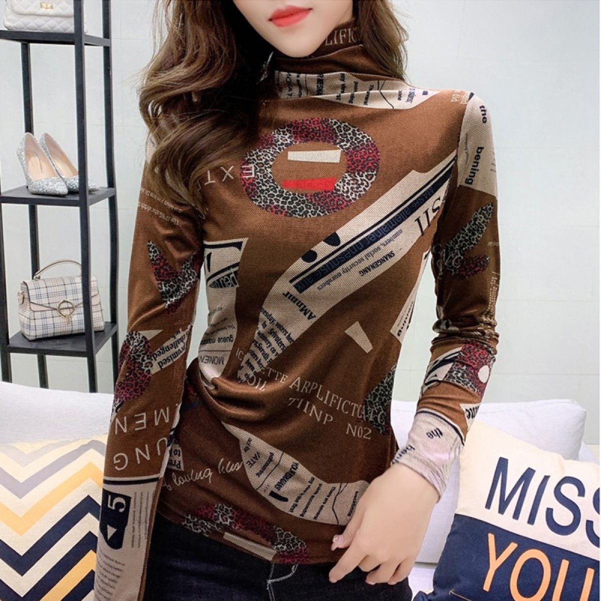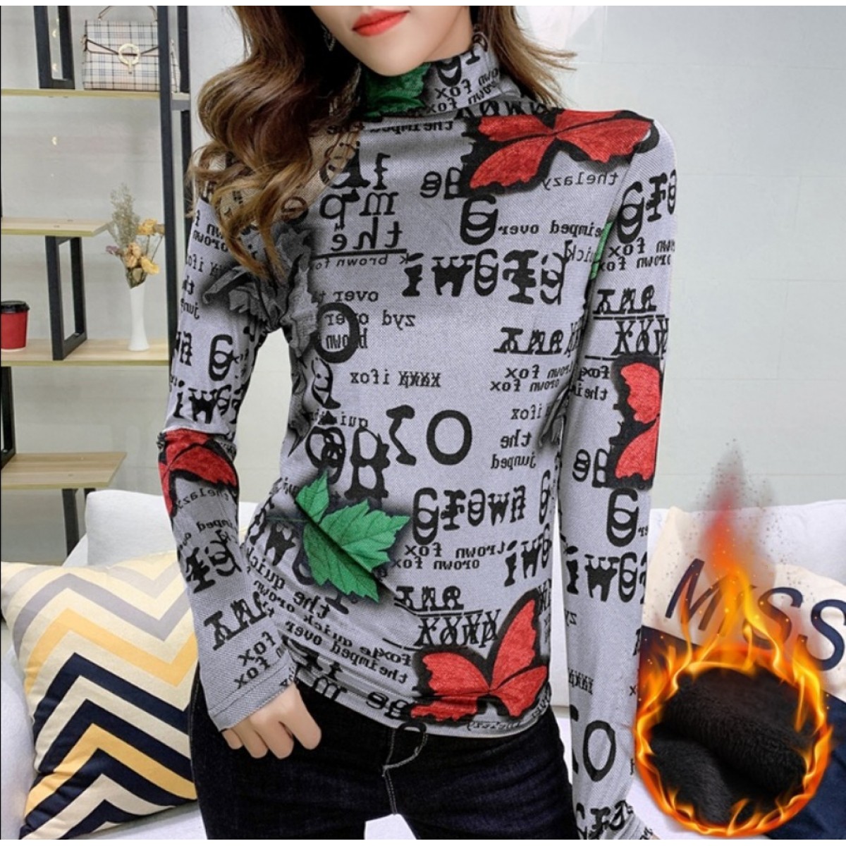 商品名稱:加絨保暖T恤打底衫女2019小衫女花色秋冬氣質(zhì)高領(lǐng)長袖時尚百搭潮