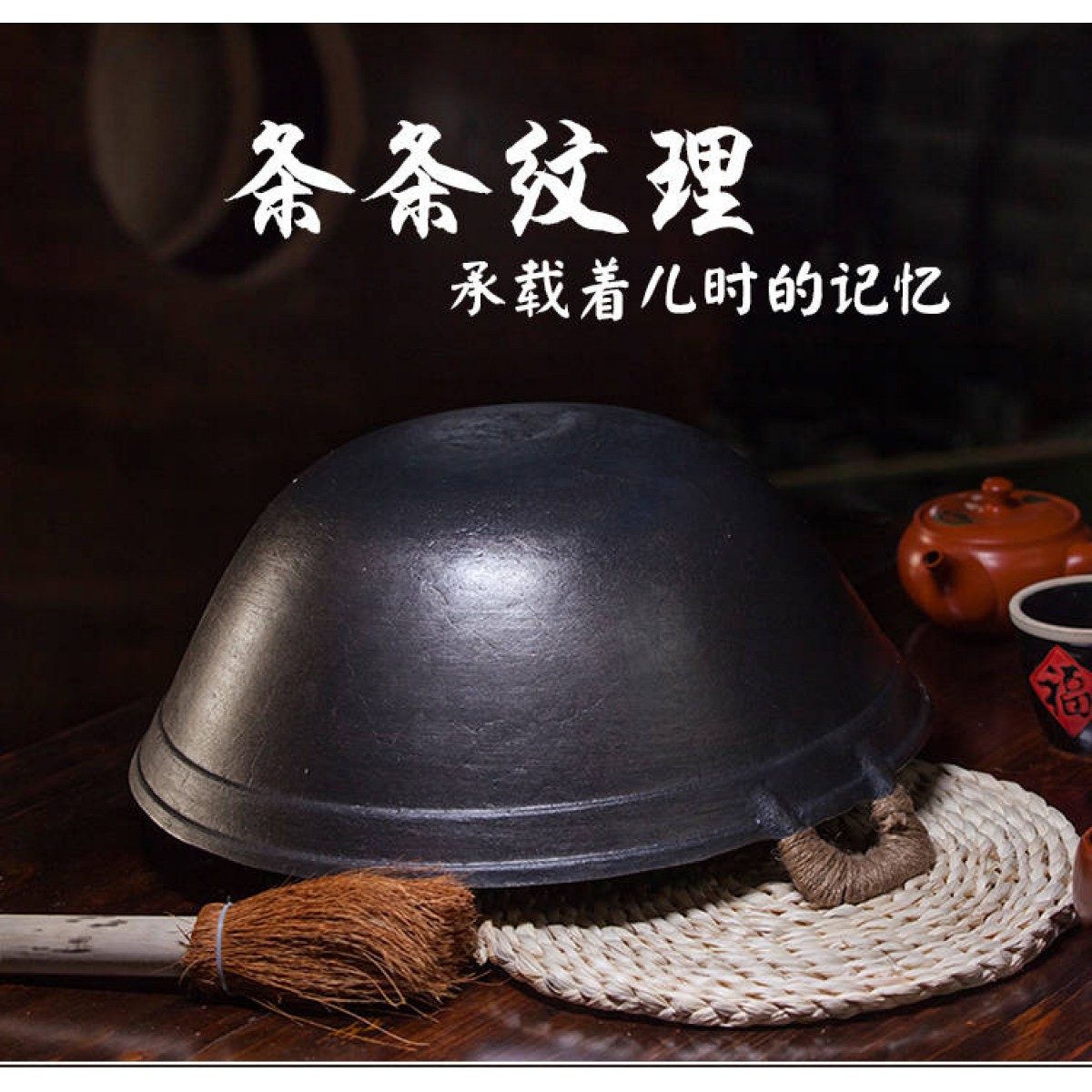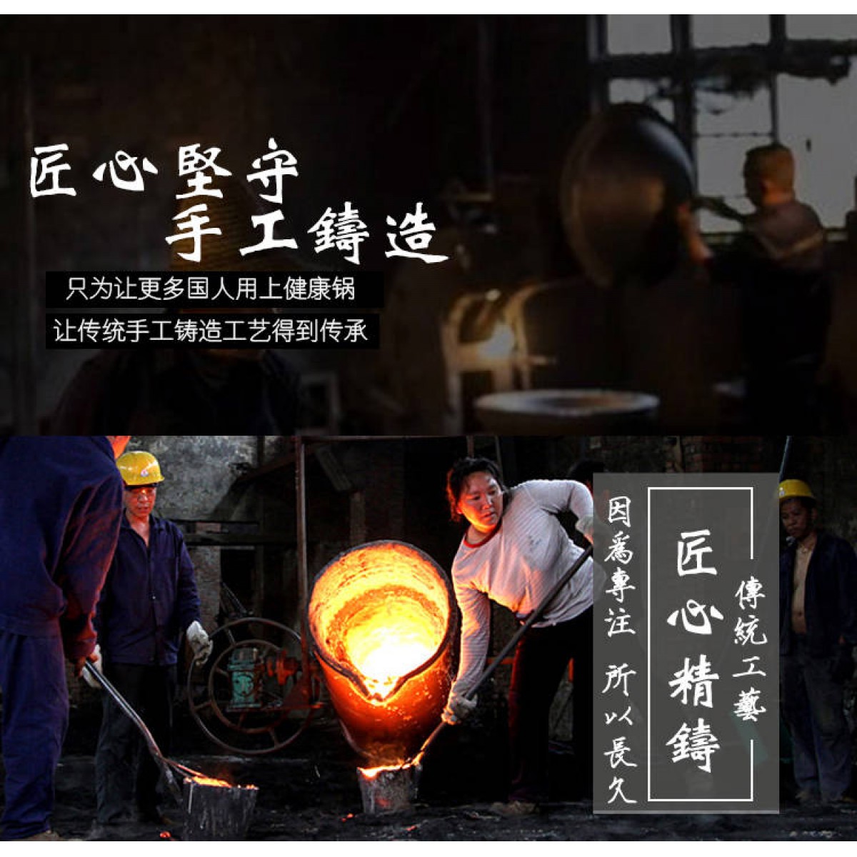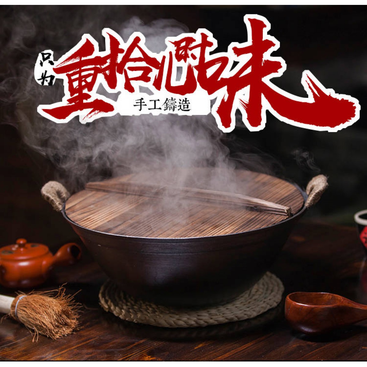 傳統(tǒng)雙耳鑄鐵鍋炒菜鍋老式鐵鍋圓底家用無涂層不粘鍋燃氣灶生鐵鍋