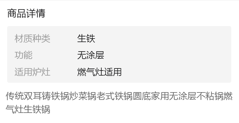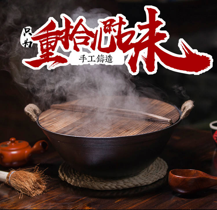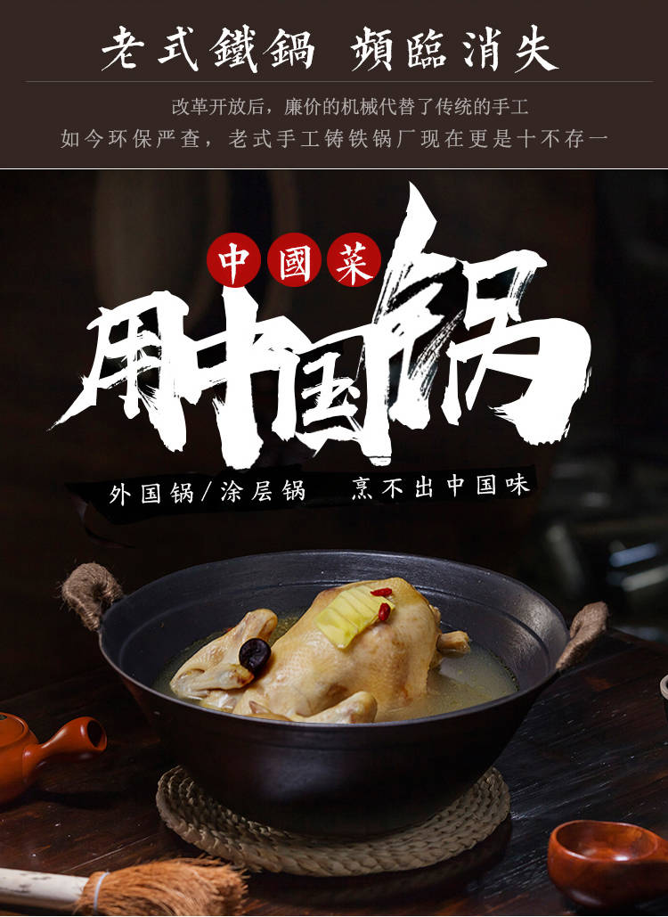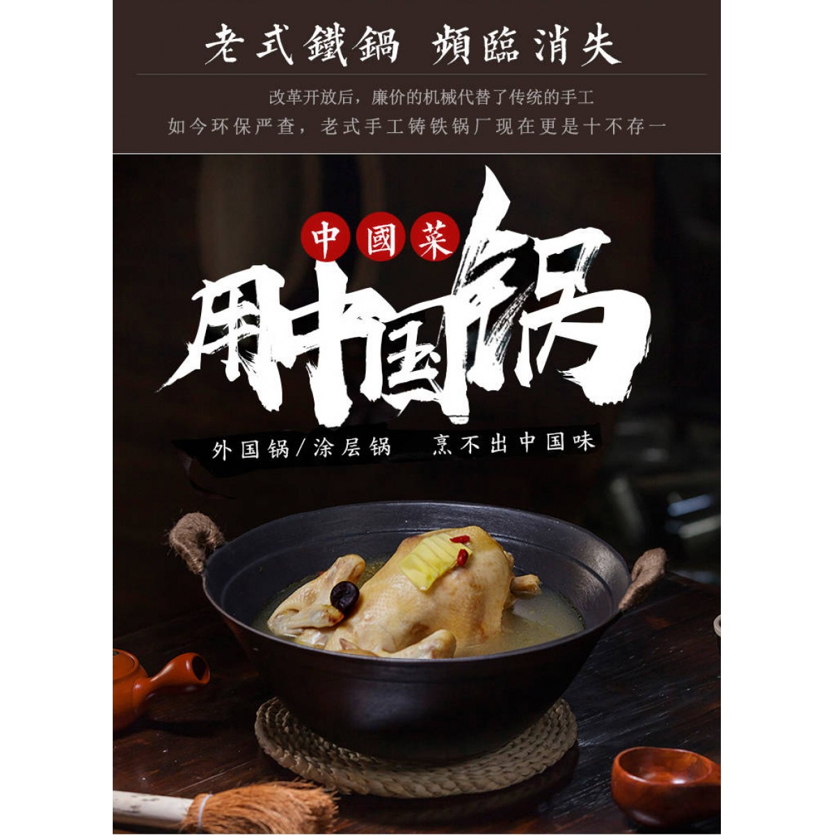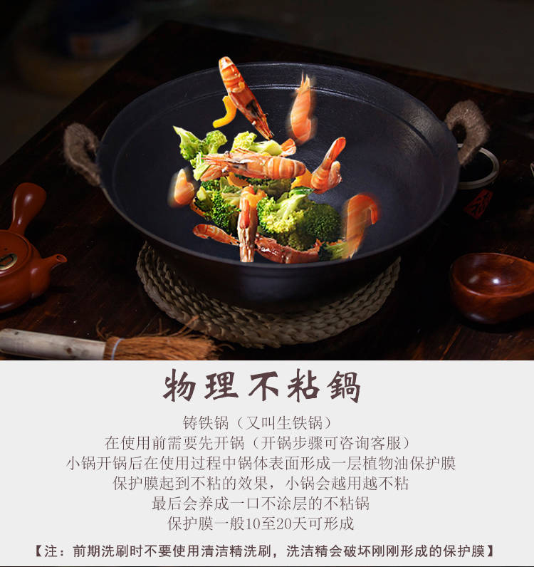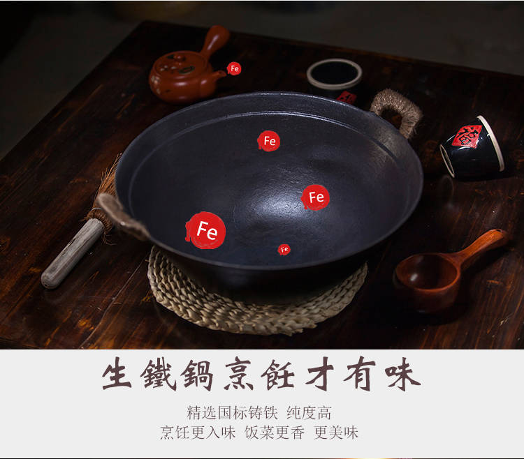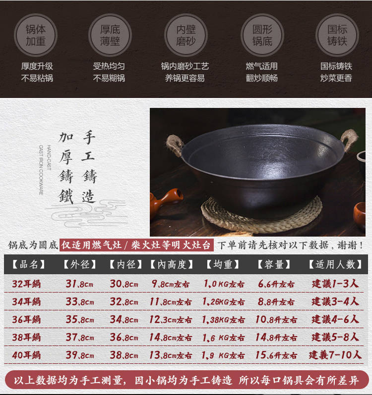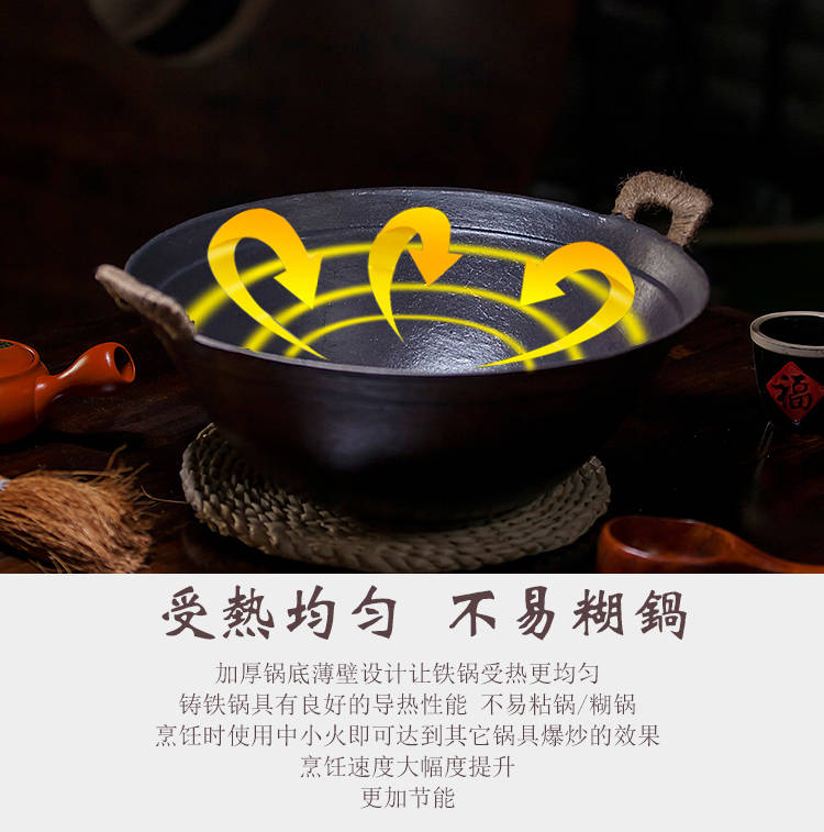 商品名稱:傳統(tǒng)雙耳鑄鐵鍋炒菜鍋老式鐵鍋圓底家用無涂層不粘鍋燃氣灶生鐵鍋