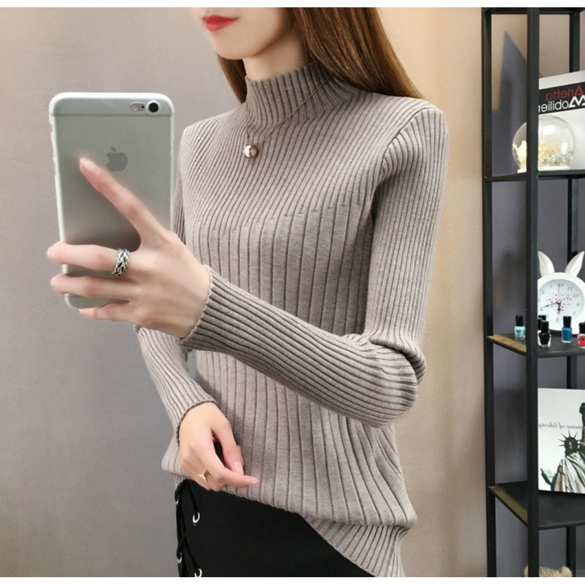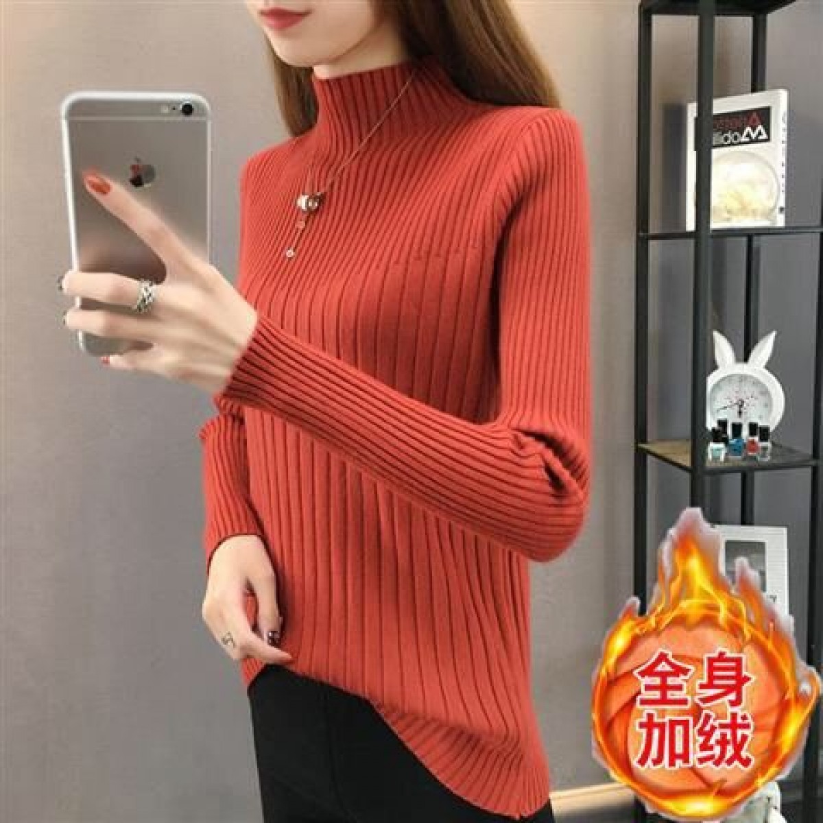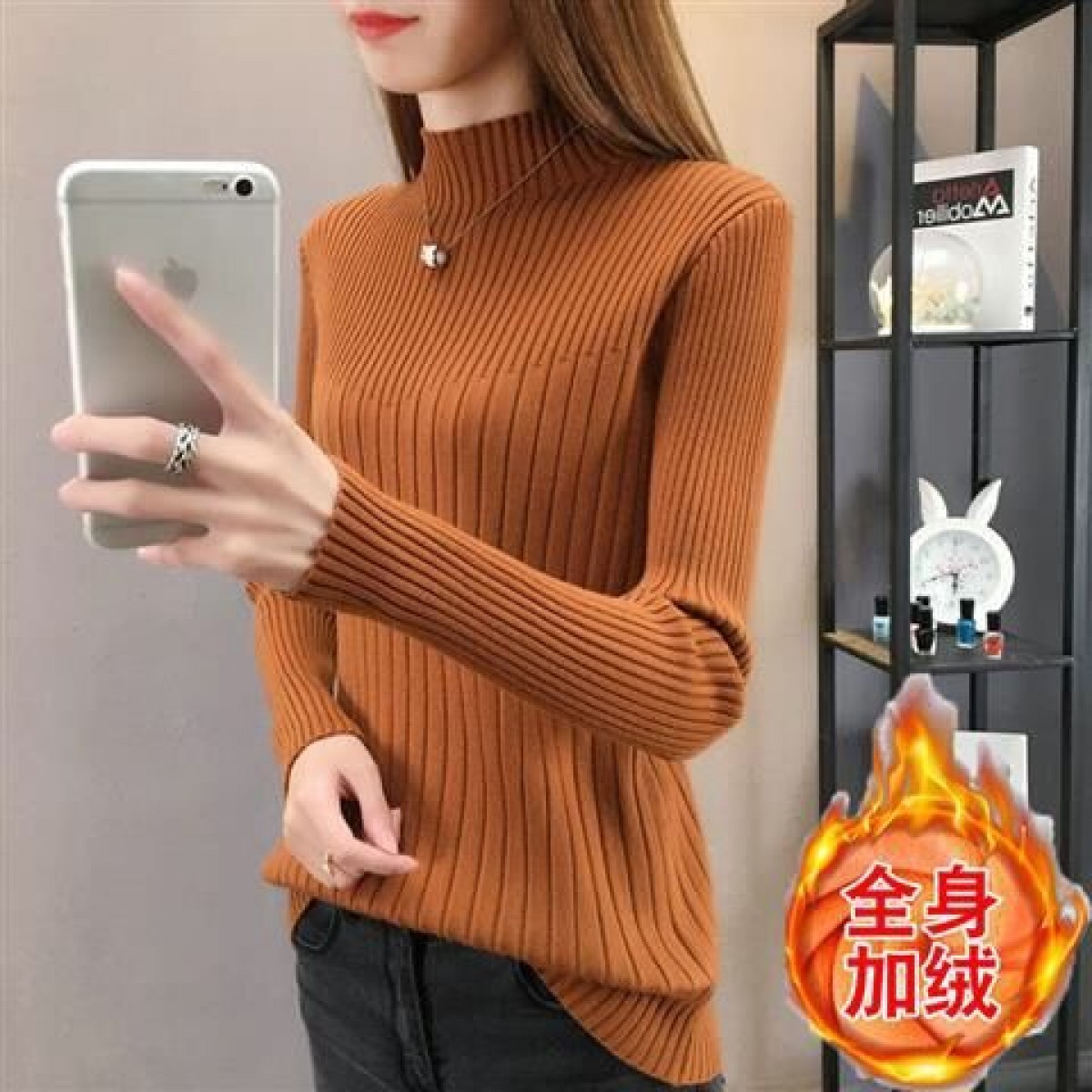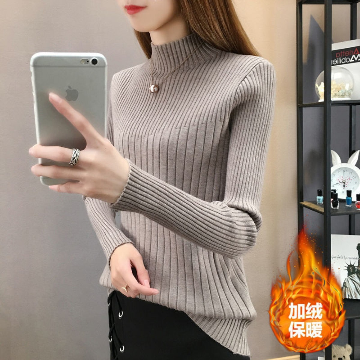 加絨/不加絨秋冬裝半高領(lǐng)針織衫女韓版大碼修身長(zhǎng)袖毛衣內(nèi)搭上衣