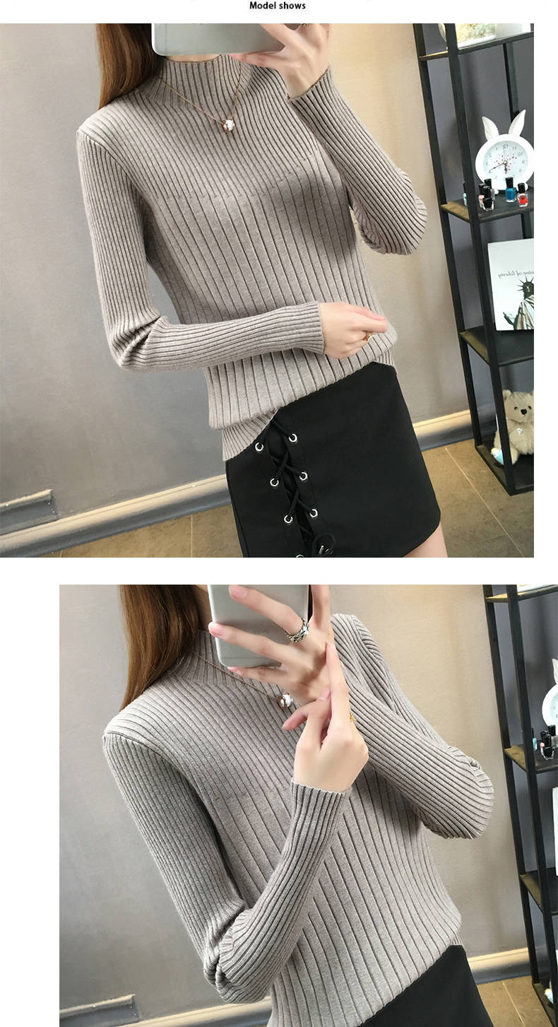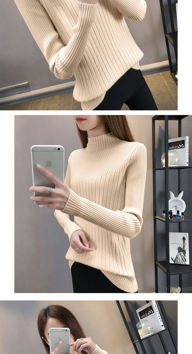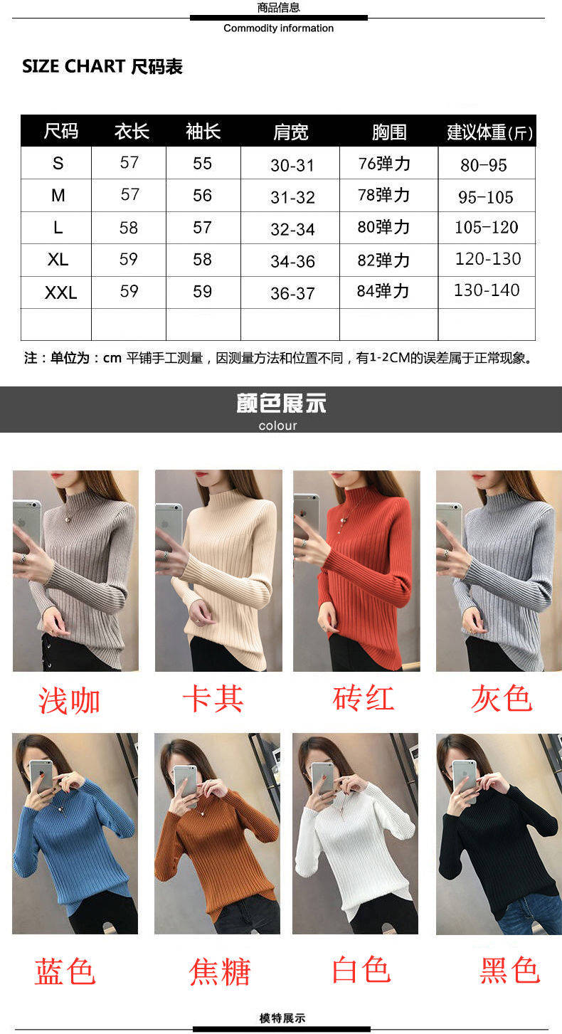 商品名稱:加絨/不加絨秋冬裝半高領(lǐng)針織衫女韓版大碼修身長(zhǎng)袖毛衣內(nèi)搭上衣