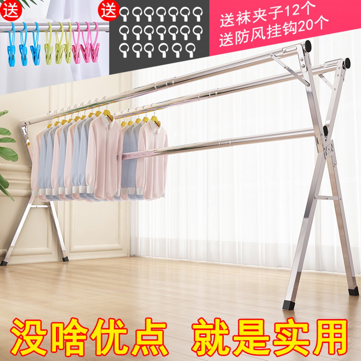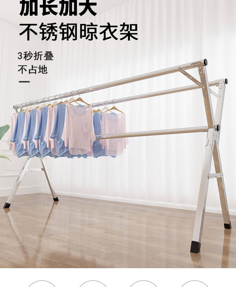 折疊曬衣架落地室內(nèi)家用陽臺簡易臥室涼衣架曬架晾衣桿不銹鋼伸縮