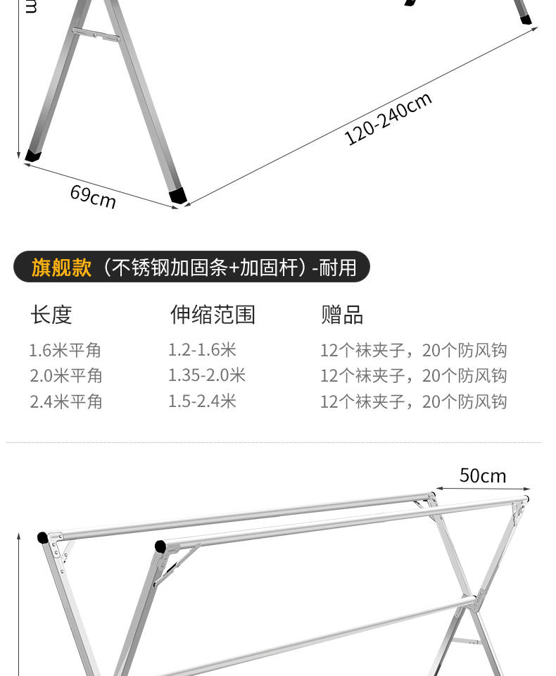 商品名稱:折疊曬衣架落地室內(nèi)家用陽臺簡易臥室涼衣架曬架晾衣桿不銹鋼伸縮