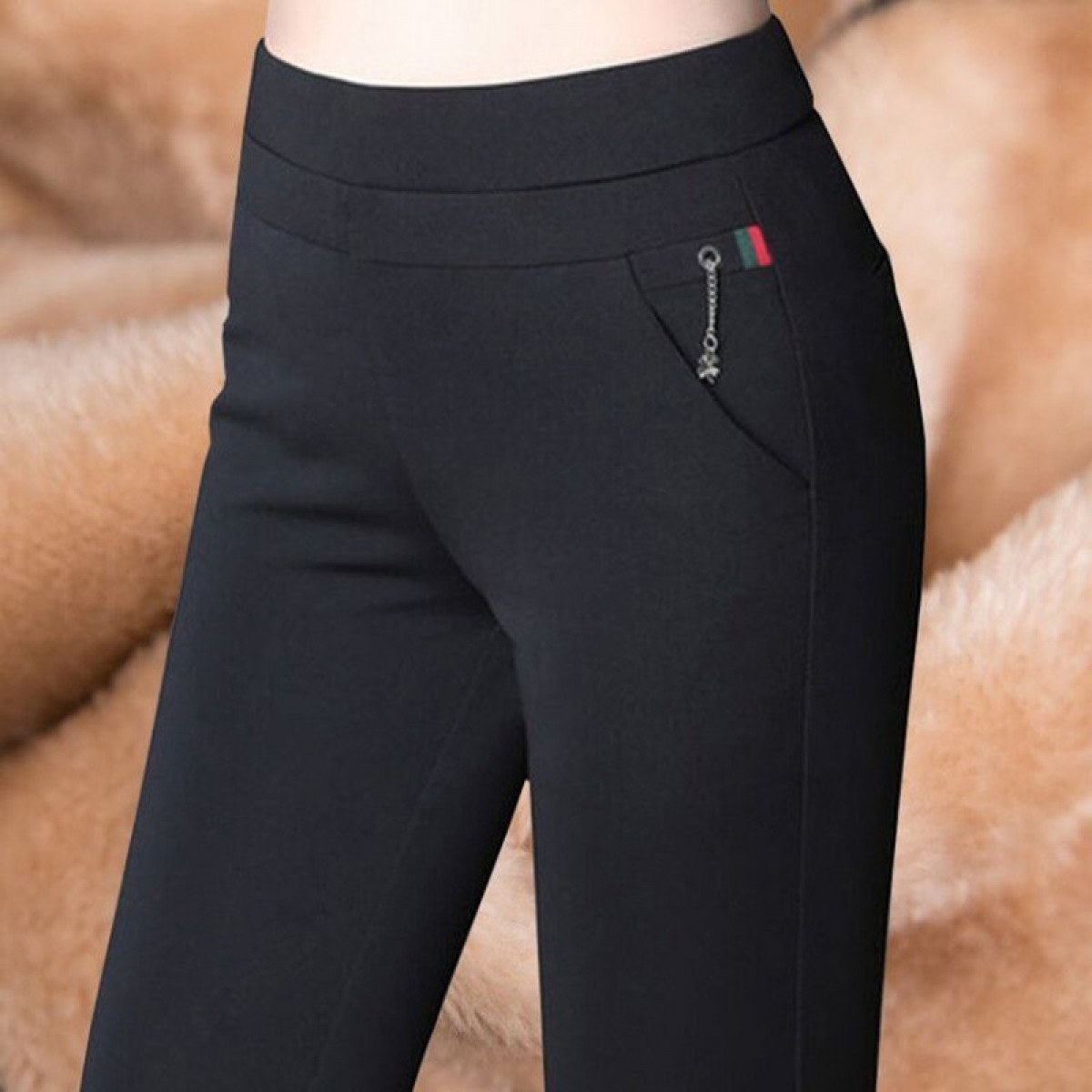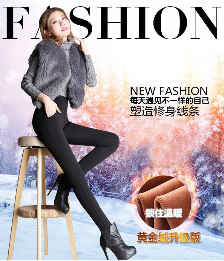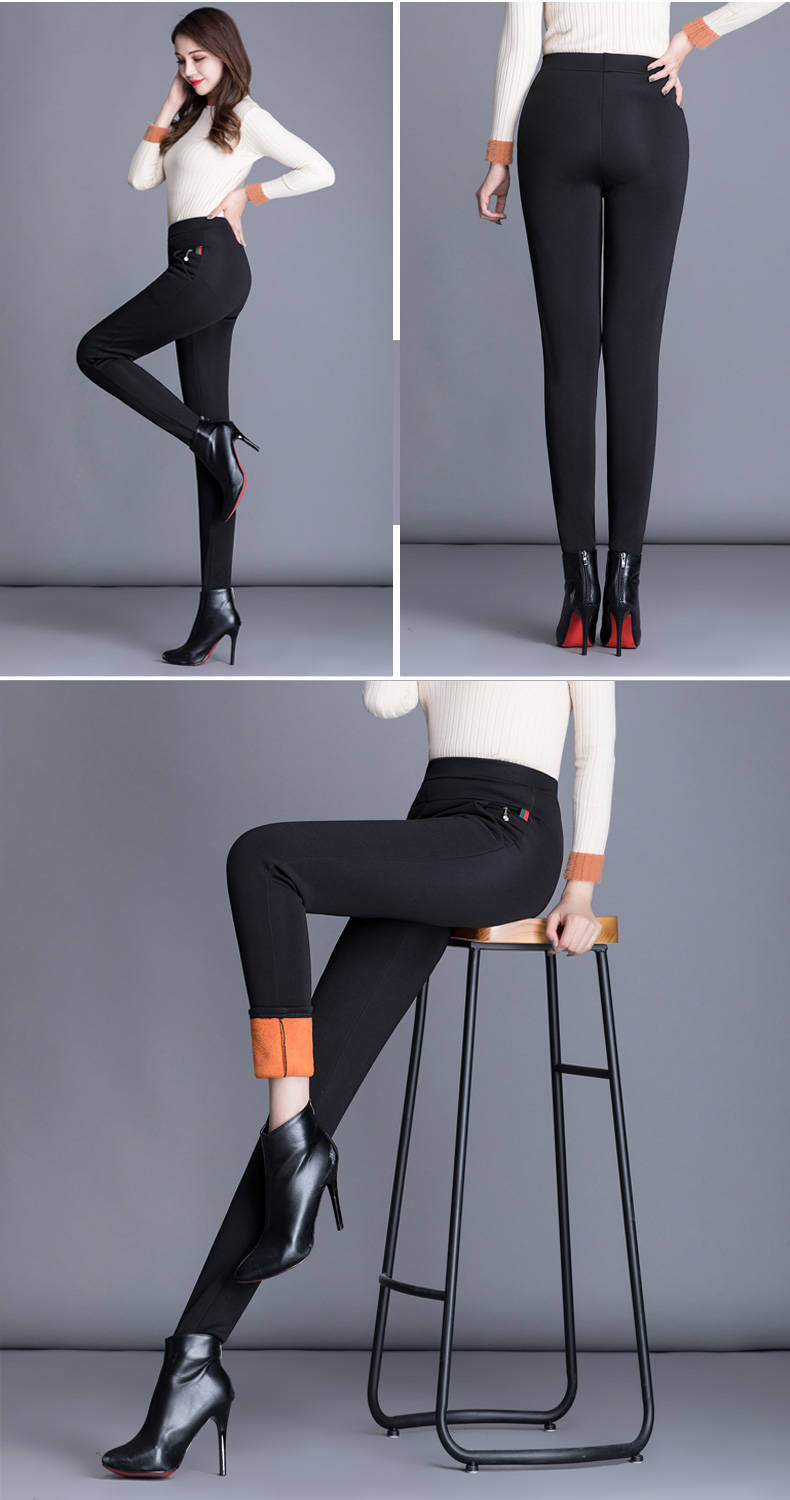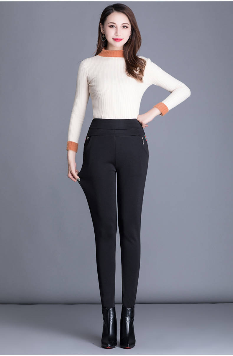 商品名稱:秋冬加絨加厚女褲子高腰大碼外穿打底褲女黑色鉛筆褲媽媽休閑褲