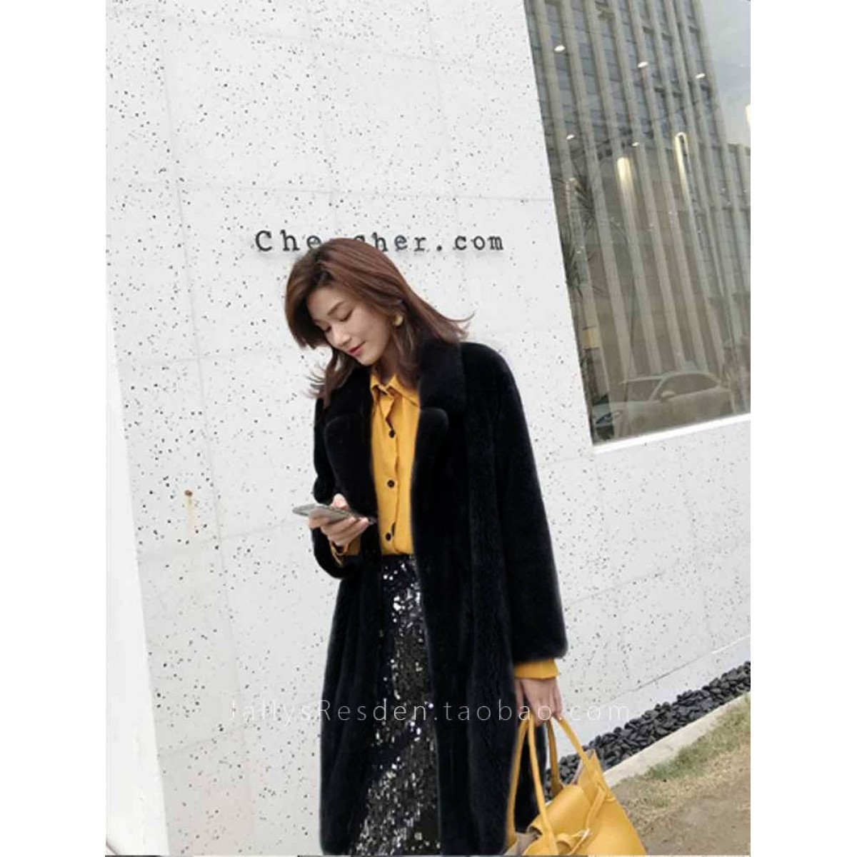 商品名稱:水貂仿皮草外套女中長(zhǎng)款2019新款冬季毛毛西裝領(lǐng)加厚顯瘦貂皮大衣